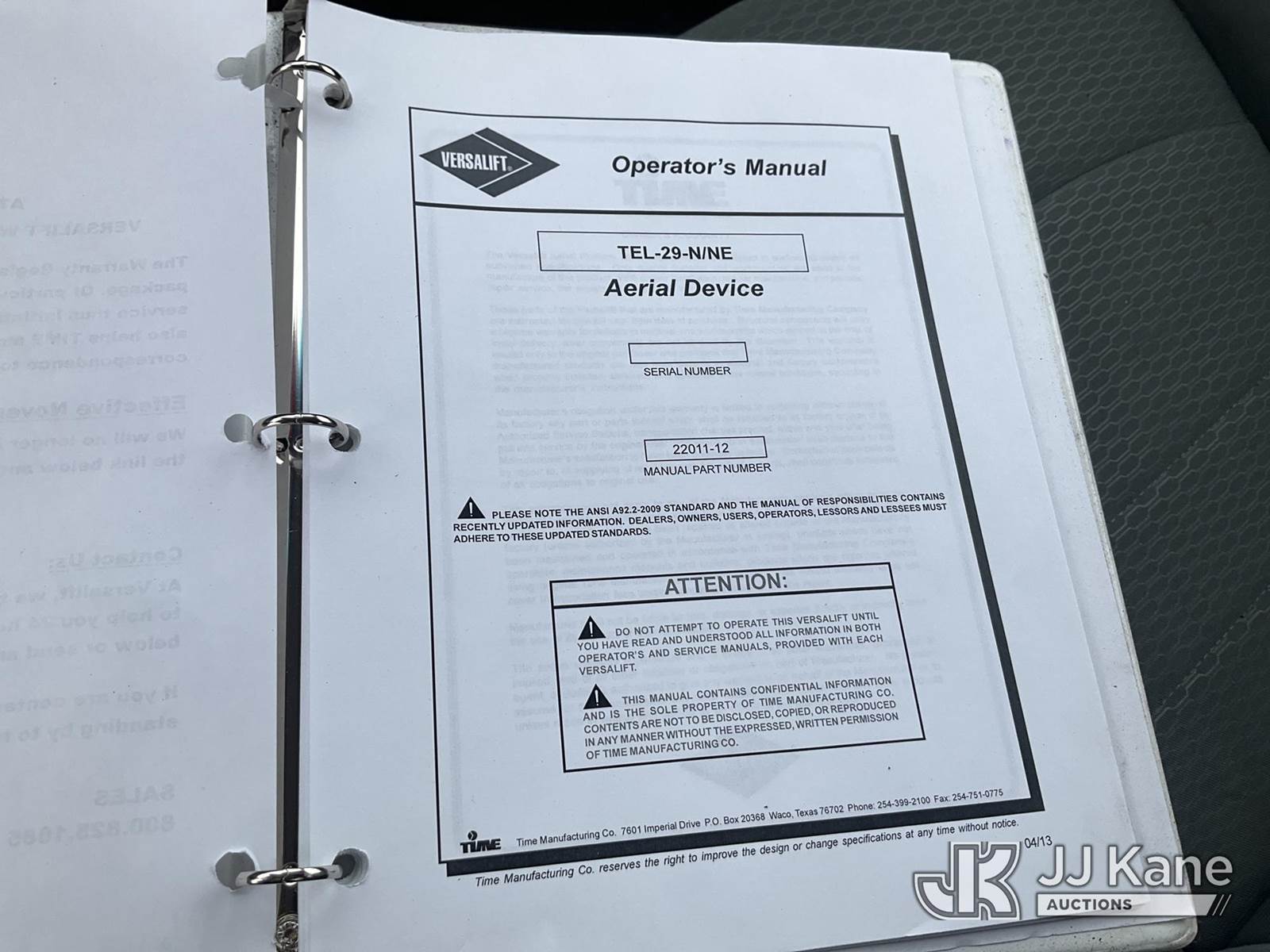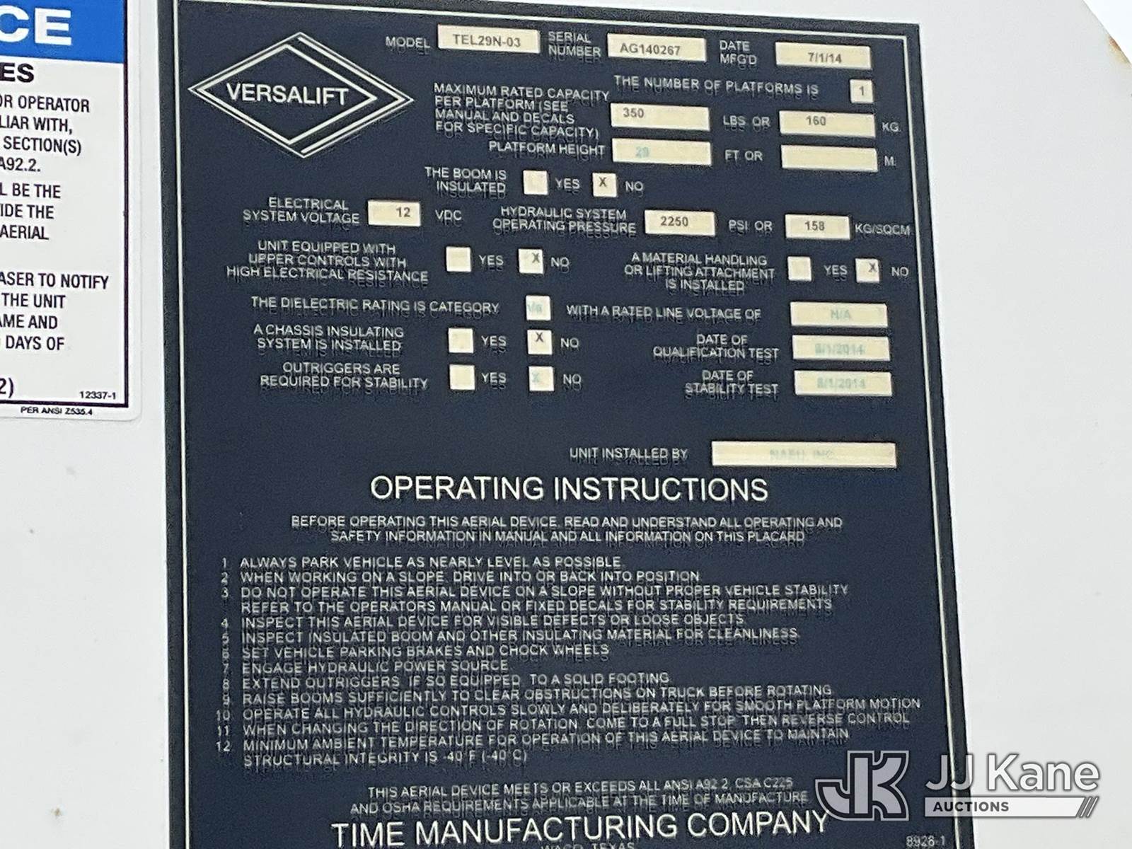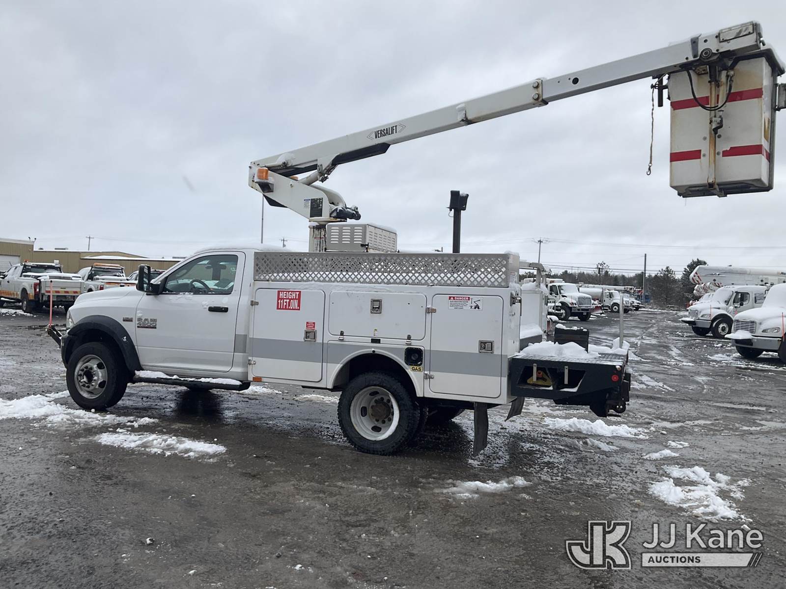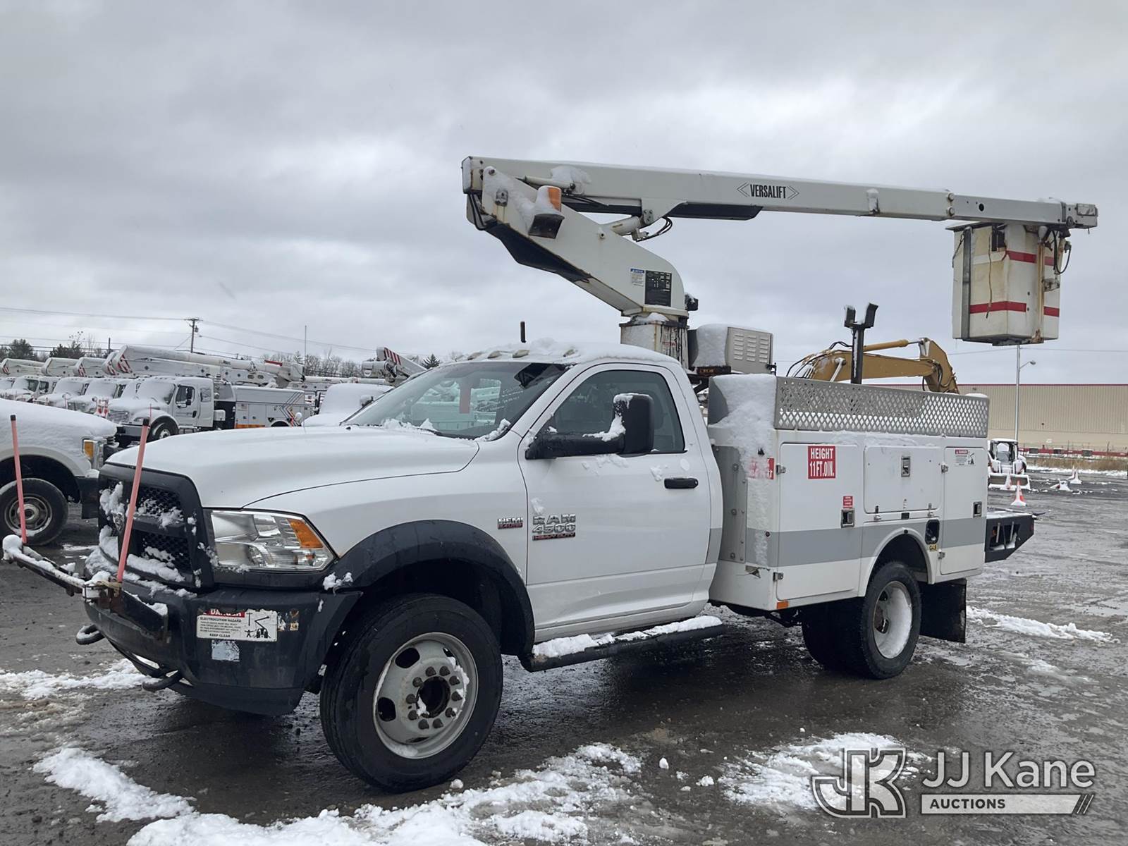 Versalift TEL29N-3, 34 ft, Telescopic Non-Insulated Bucket Truck s/n AG140267, with Single Man Bucket, mounted behind cab on 2014 RAM 4500 2WD Service Truck, 8-cyl gas, Auto, A/C, (131,634 miles) (Runs, Moves & Upper Operates, Seller States-FRAME ROTTED, Body & Rust Damage) This is a Titled Item NOTE: This unit is being sold AS IS/WHERE IS via Timed Auction and is located in Rome, NY. Inspection & preview days for this unit are the 2 business days prior to the first day of items closing for this auction, item is located at 5835 Success Dr Rome, NY 13440 and hours of operations are 8a-4p. For pre-sale questions, please contact Ryan Jackson @ (315) 749-3790 or Ryan.Jackson@jjkane.com. (Manuals provided in cab) (Buyer is responsible for removal. Assistance by consignor or JJ Kane Auctioneers is not assured.)