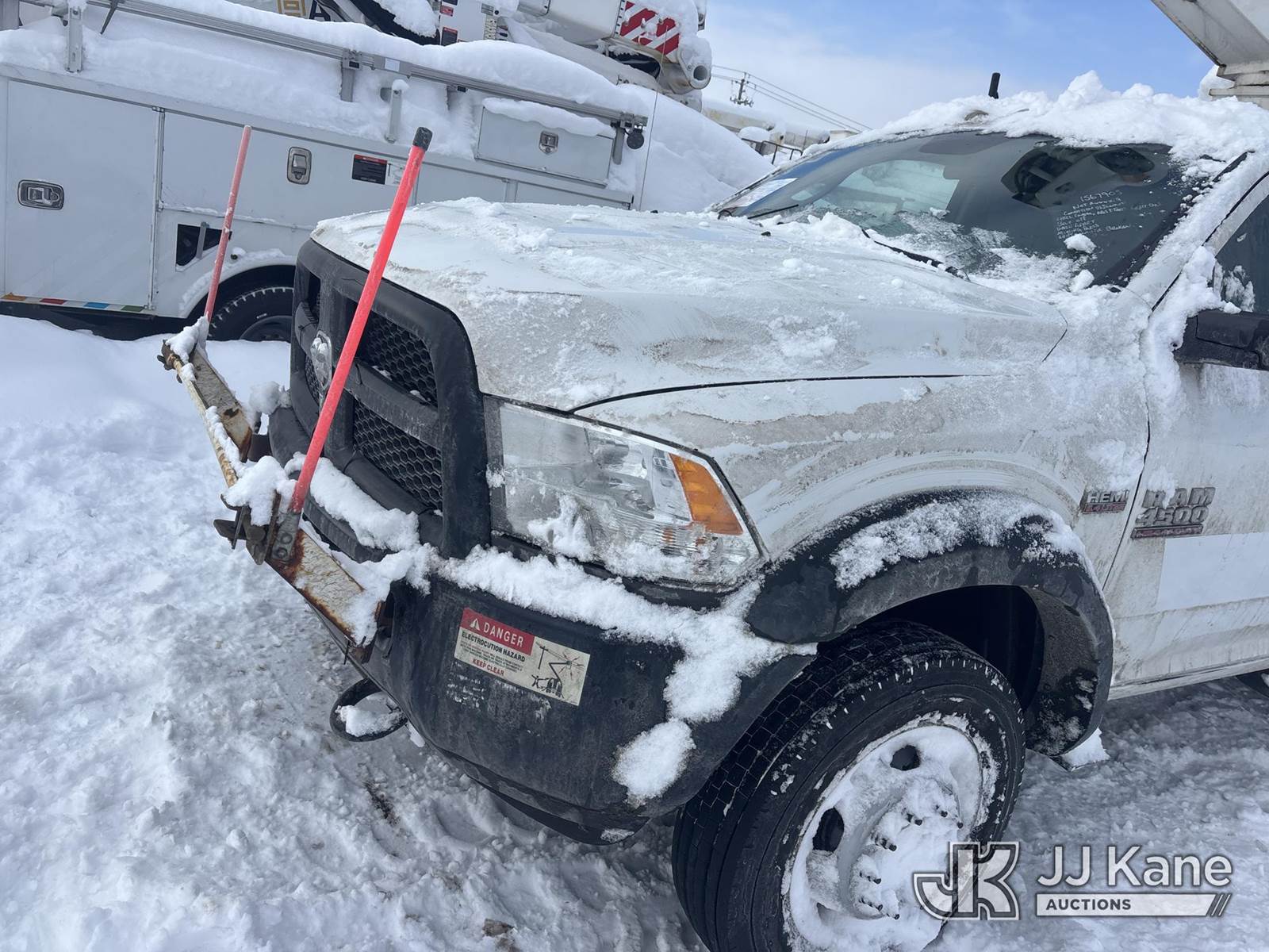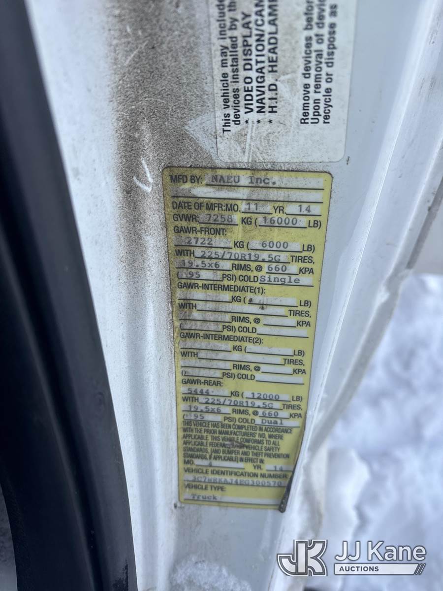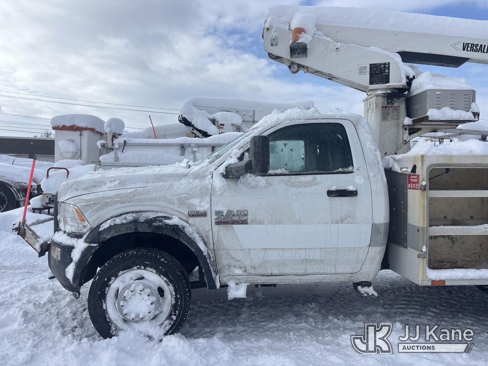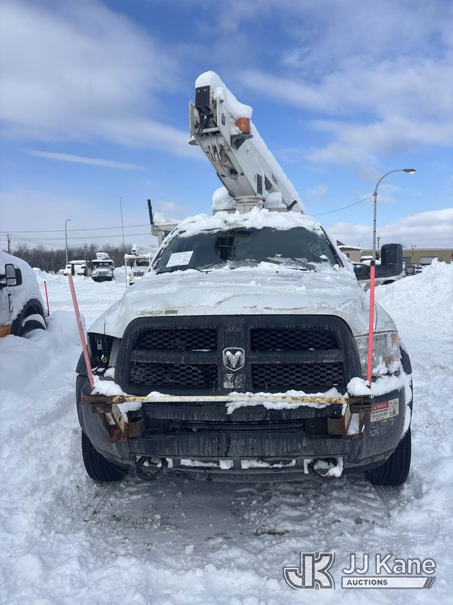 Versalift TEL29N-3, 34 ft, Telescopic Non-Insulated Bucket Truck s/n AG140558, with Single-Man Bucket, mounted behind cab on 2014 RAM 4500 2WD Service Truck, 8-cyl gas, Auto, A/C, (128,928 miles) (Not Running, Condition Unknown, Check Engine, ABS & Traction Light On, Belt Off, Shift Linkage Broken, Dash Apart, Missing Parts, Must Tow ) This is a Titled Item NOTE: This unit is being sold AS IS/WHERE IS via Timed Auction and is located in Rome, NY. Inspection & preview days for this unit are the 2 business days prior to the first day of items closing for this auction, item is located at 5835 Success Dr Rome, NY 13440 and hours of operations are 8a-4p. For pre-sale questions, please contact Ryan Jackson @ (315) 749-3790 or Ryan.Jackson@jjkane.com. (Missing manuals, See Auction Company for Manufacturers Information to obtain manuals) (Buyer is responsible for removal. Assistance by consignor or JJ Kane Auctions is not assured.)