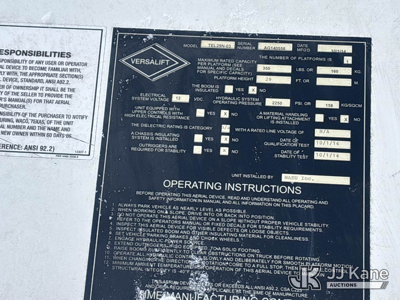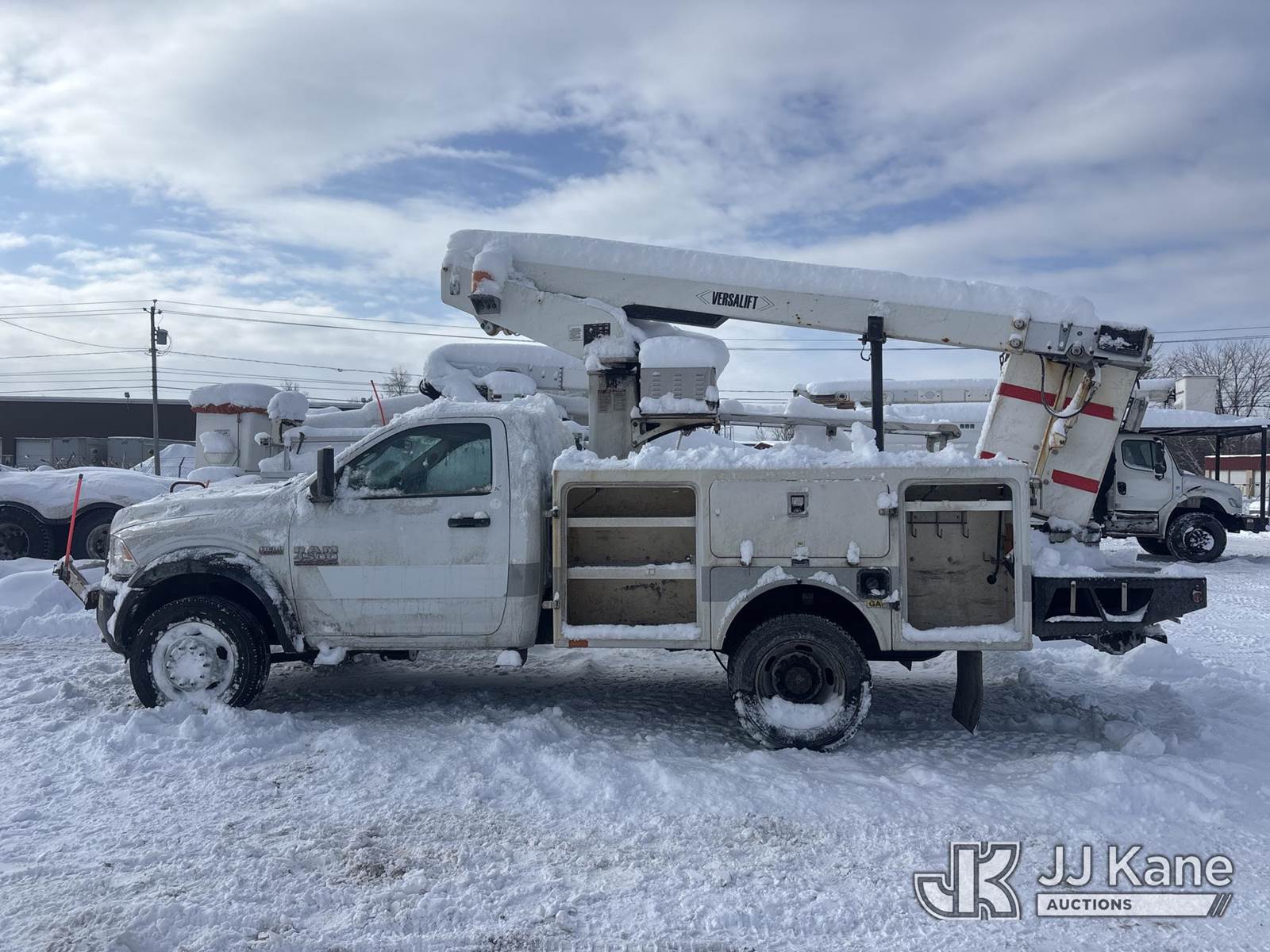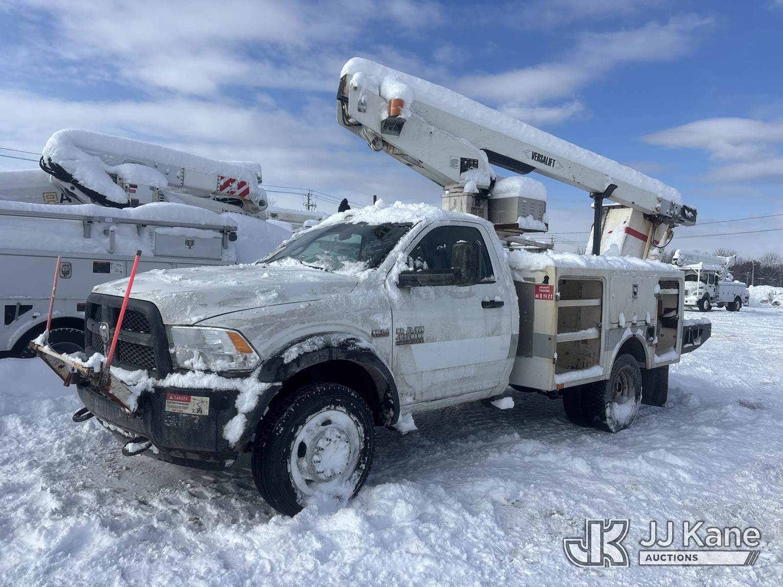 Versalift TEL29N-3, 34 ft, Telescopic Non-Insulated Bucket Truck s/n AG140558, with Single-Man Bucket, mounted behind cab on 2014 RAM 4500 2WD Service Truck, 8-cyl gas, Auto, A/C, (128,928 miles) (Not Running, Condition Unknown, Check Engine, ABS & Traction Light On, Belt Off, Shift Linkage Broken, Dash Apart, Missing Parts, Must Tow ) This is a Titled Item NOTE: This unit is being sold AS IS/WHERE IS via Timed Auction and is located in Rome, NY. Inspection & preview days for this unit are the 2 business days prior to the first day of items closing for this auction, item is located at 5835 Success Dr Rome, NY 13440 and hours of operations are 8a-4p. For pre-sale questions, please contact Ryan Jackson @ (315) 749-3790 or Ryan.Jackson@jjkane.com. (Missing manuals, See Auction Company for Manufacturers Information to obtain manuals) (Buyer is responsible for removal. Assistance by consignor or JJ Kane Auctions is not assured.)