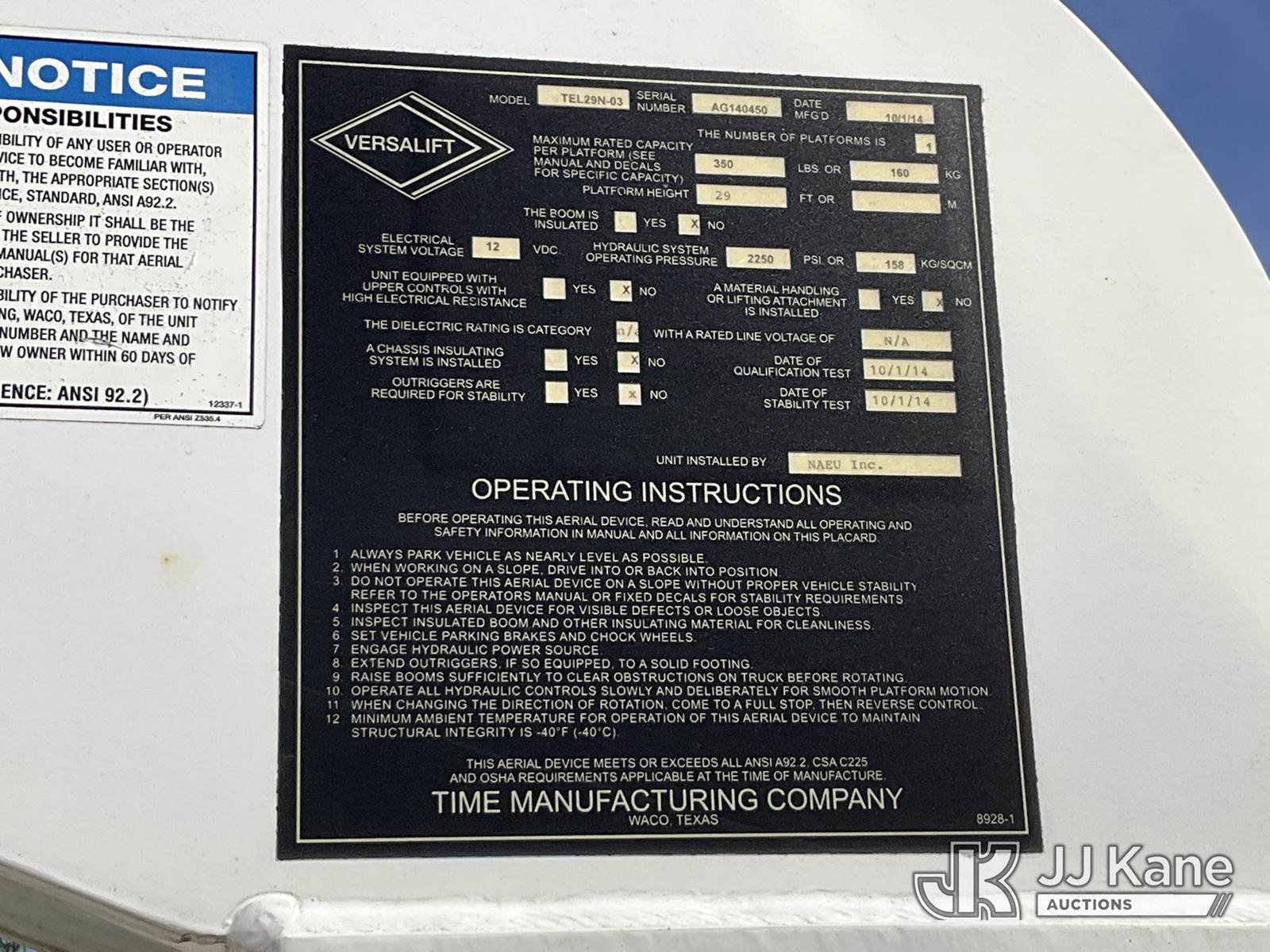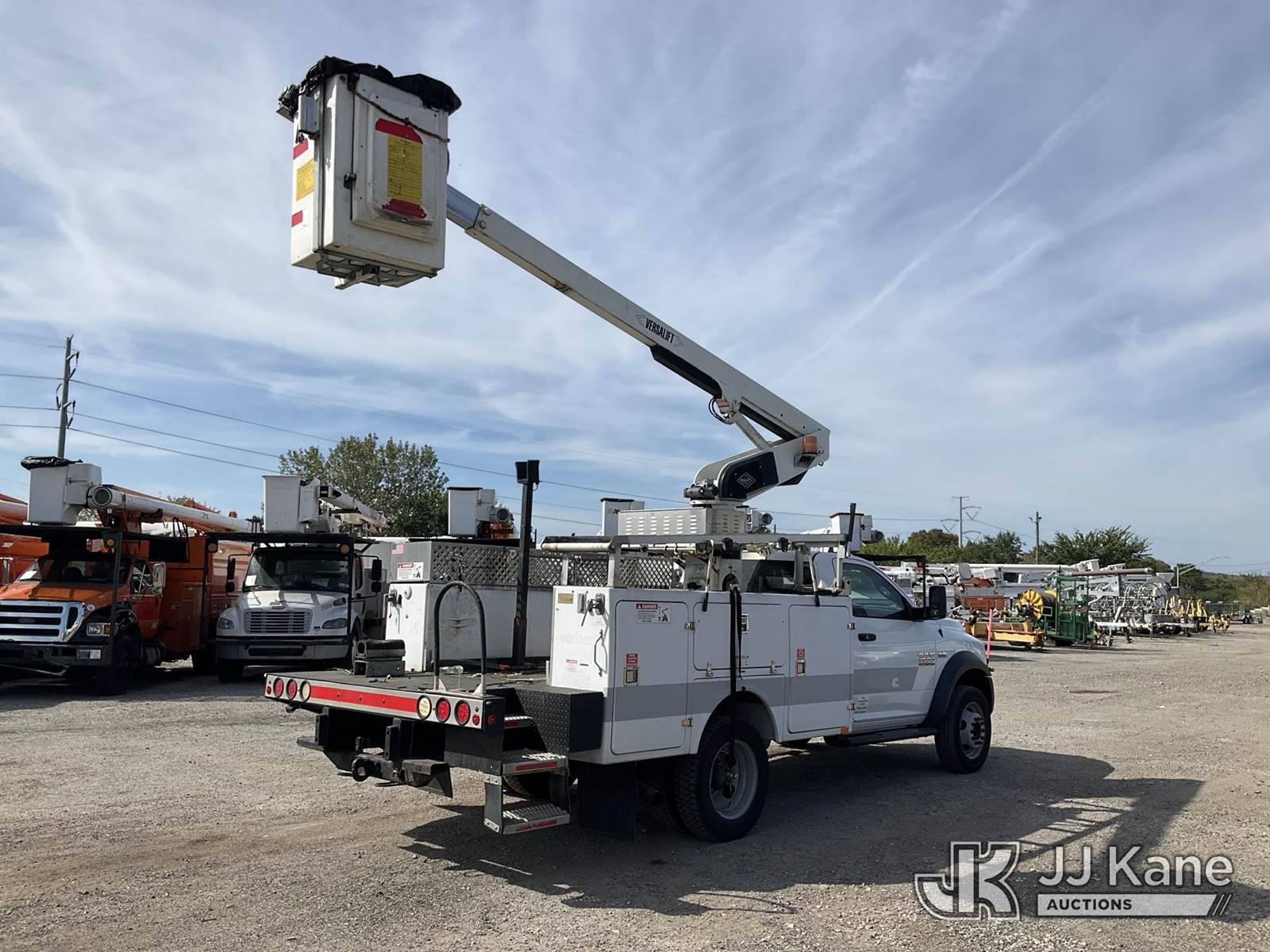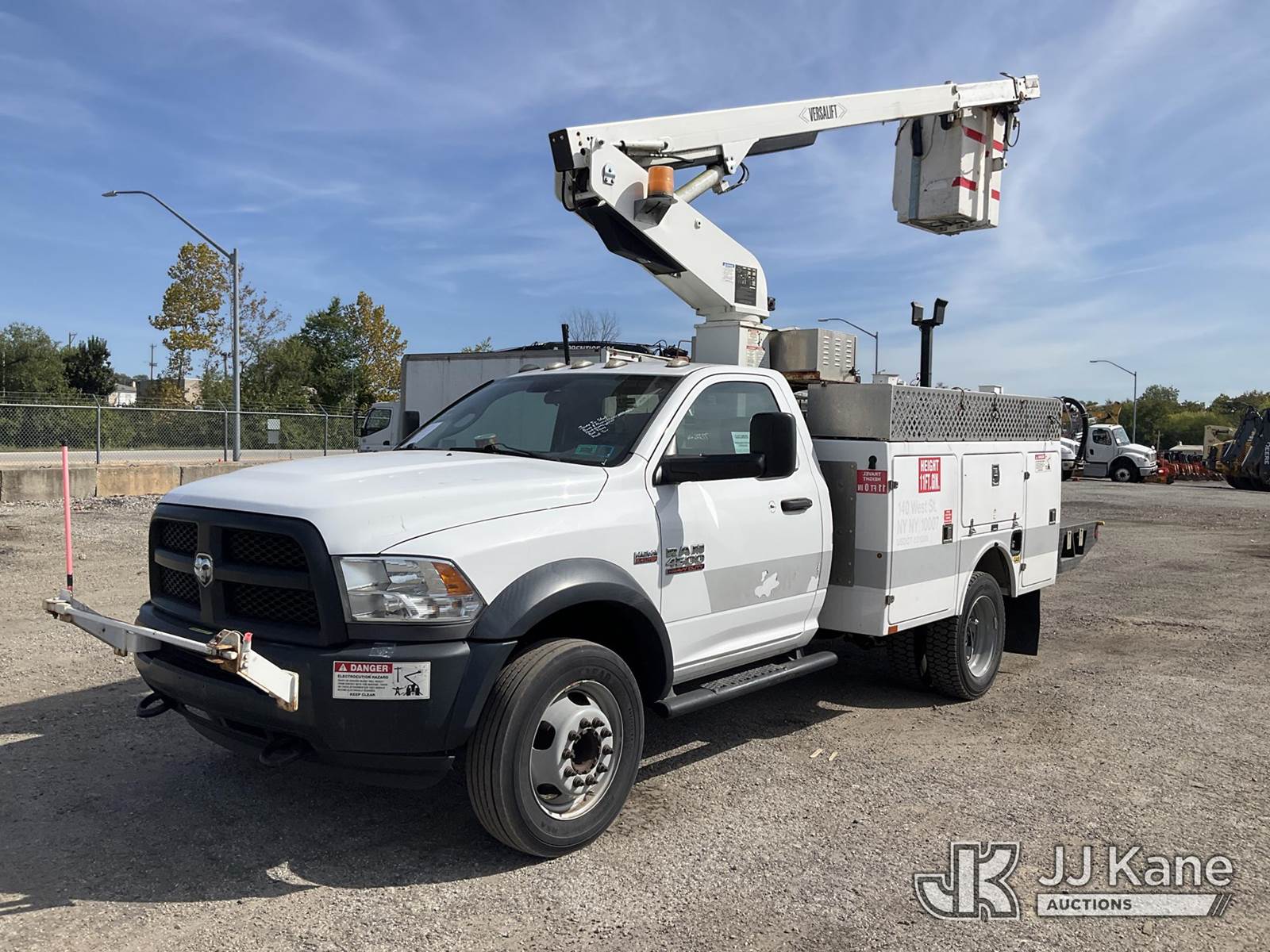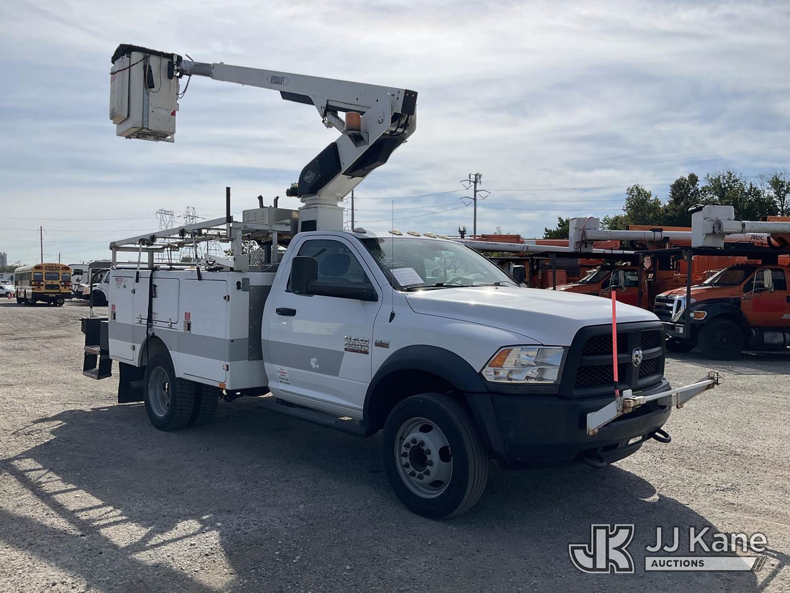 Versalift TEL29N, 34 ft, Telescopic Non-Insulated Bucket Truck s/n AG140450, with Single-Man Bucket, mounted behind cab on 2014 Ram 4500 Service Truck, 8-cyl gas, Auto, A/C, (77,226 miles) (Bad Trans. Jump To Start, Runs Moves & Upper Operates, Check Engine Light On, Missing Operators Manual, Must Tow) This is a Titled Item NOTE: This unit is being sold AS IS/WHERE IS via Timed Auction and is located in Plymouth Meeting, PA. Inspection & preview days for this unit are the 2 business days prior to the first day of items closing for this auction, item is located at 1402 Conshohocken Rd Plymouth Meeting, PA 19462 and hours of operations are 8a-4p. For pre-sale questions, please contact Bruce Thomas @ (267) 887-0392 or bruce.thomas.jr@jjkane.com. (Missing manuals, See Auction Company for Manufacturers Information to obtain manuals) (Buyer is responsible for removal. Assistance by consignor or JJ Kane Auctioneers is not assured.)