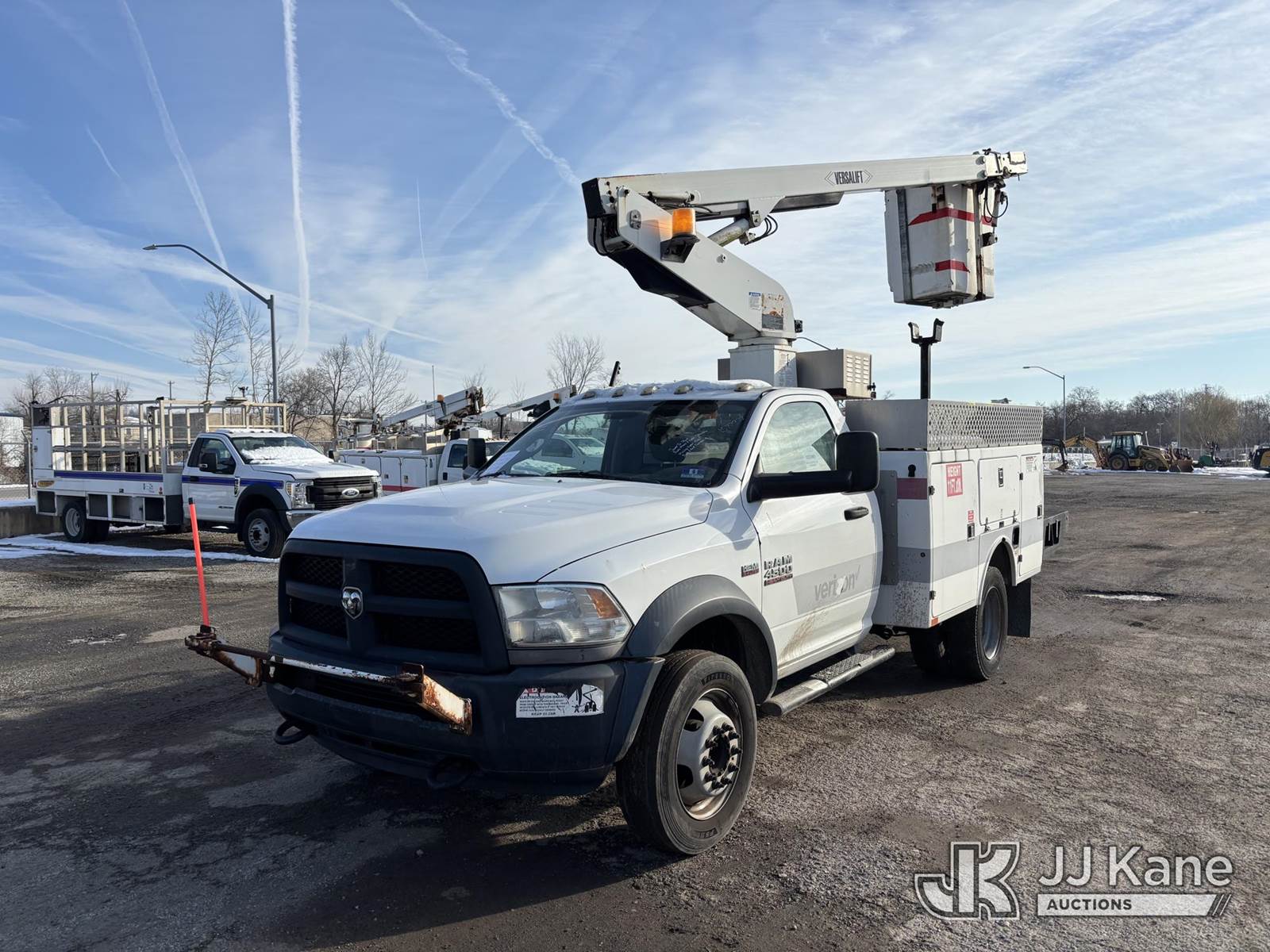Versalift TEL29N03, 34 ft, Telescopic Non-Insulated Bucket Truck s/n AG140069, with single-man bucket, mounted behind cab on 2014 Ram 4500 Service Truck, 8-cyl gas, Auto, A/C, (156,996 miles) (Jump To Start, Runs Moves & Upper Operates, Body & Rust Damage, Missing Upper Plate) This is a Titled Item NOTE: This unit is being sold AS IS/WHERE IS via Timed Auction and is located in Plymouth Meeting, PA. Inspection & preview days for this unit are the 2 business days prior to the first day of items closing for this auction, item is located at 1402 Conshohocken Rd Plymouth Meeting, PA 19462 and hours of operations are 8a-4p. For pre-sale questions, please contact Bruce Thomas @ (267) 887-0392 or bruce.thomas.jr@jjkane.com. (Missing manuals, See Auction Company for Manufacturers Information to obtain manuals) (Buyer is responsible for removal. Assistance by consignor or JJ Kane Auctions is not assured.)