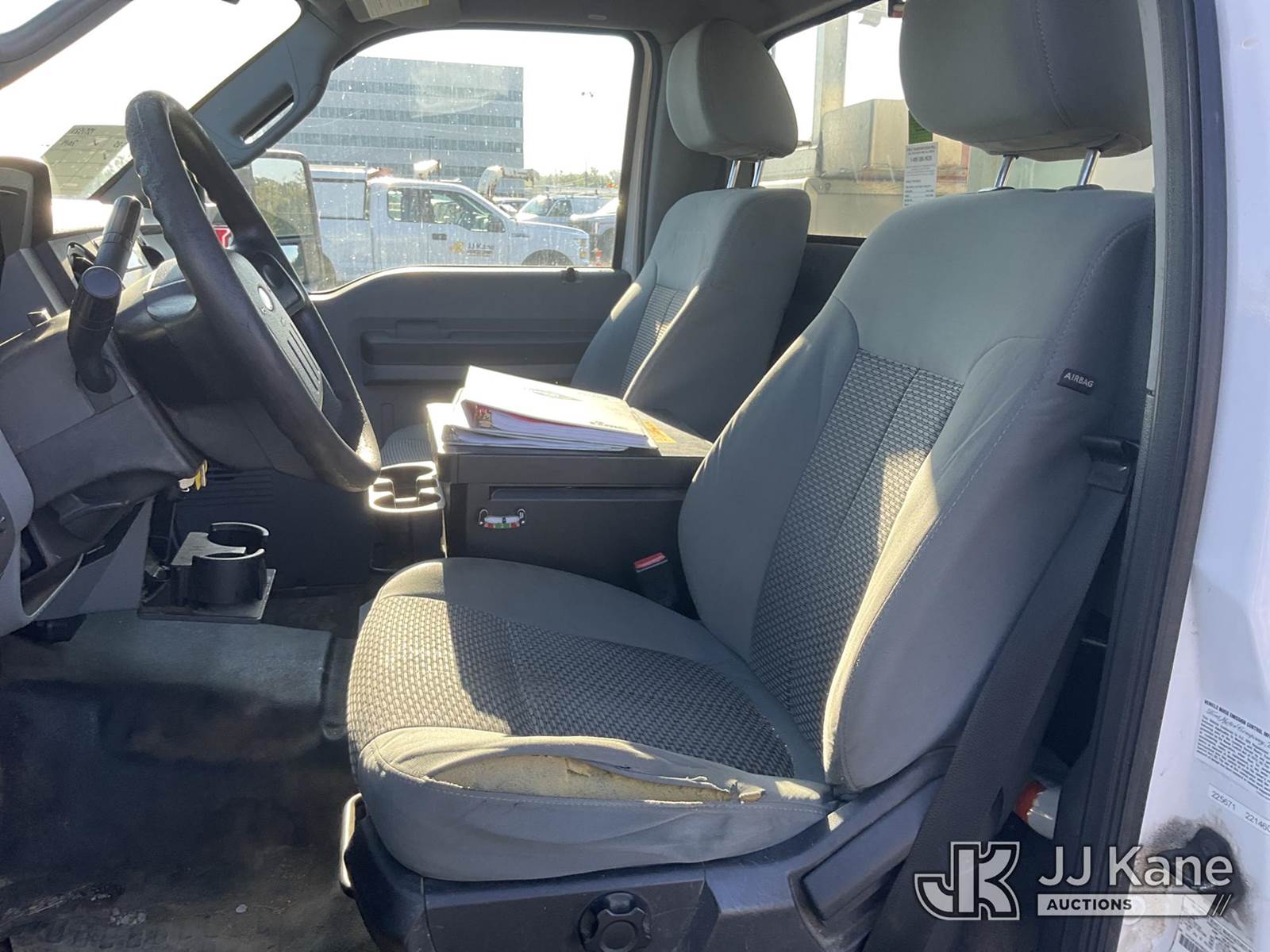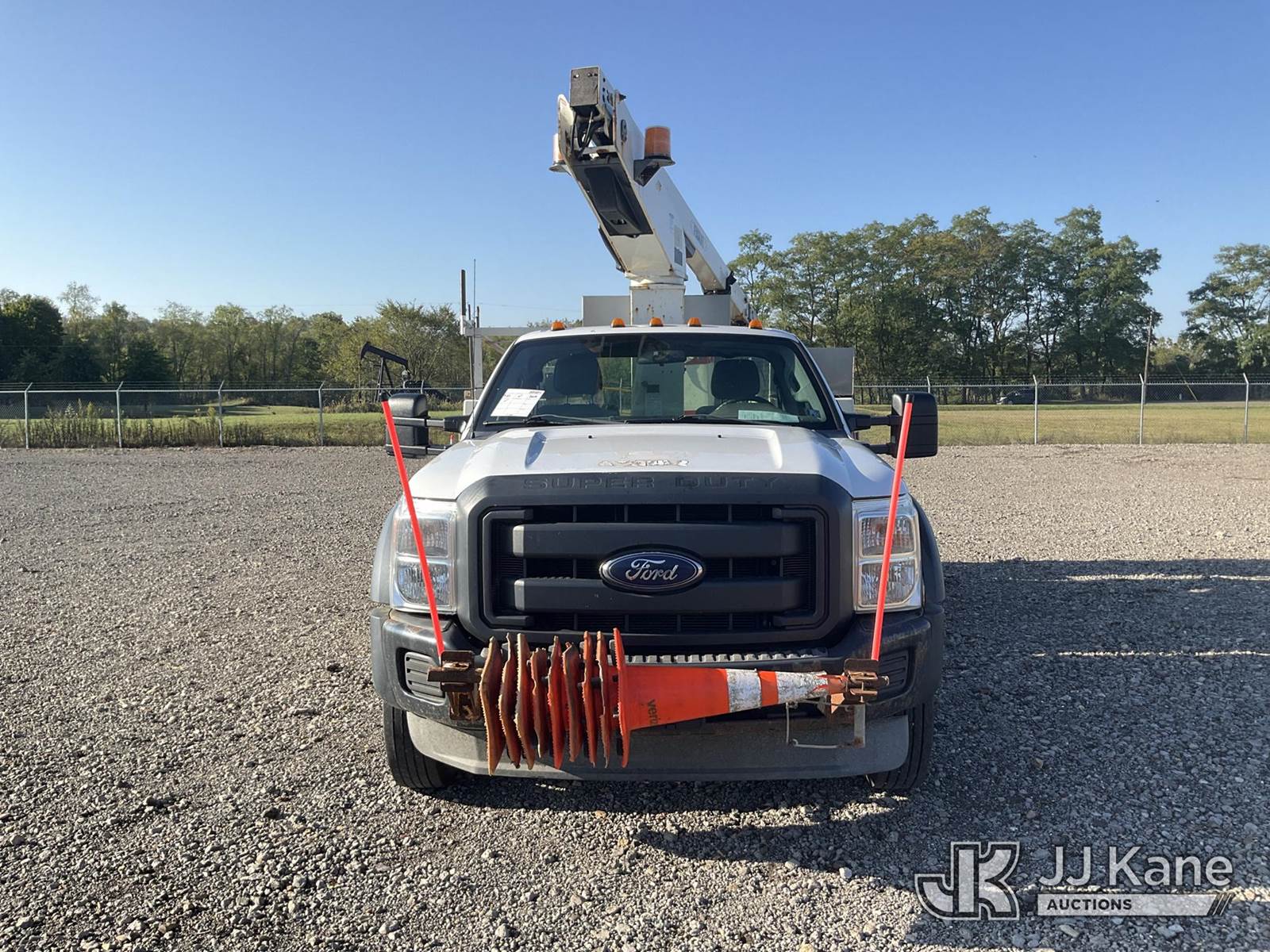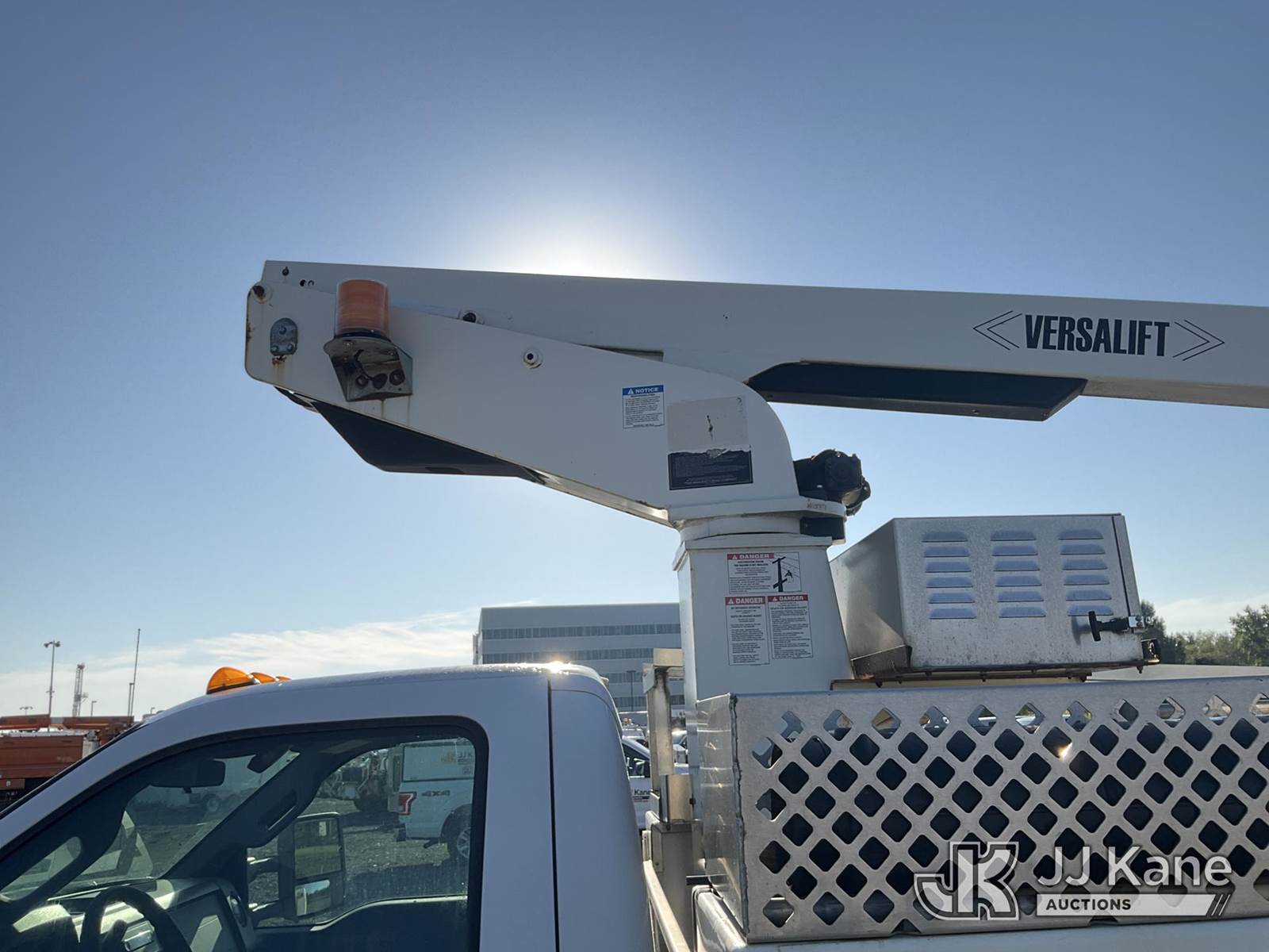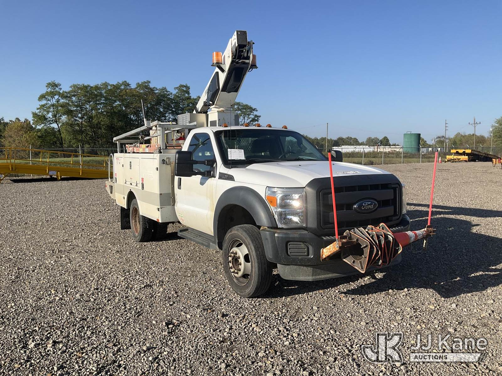 Versalift TEL29NE, 34 ft, Telescopic Non-Insulated Bucket Truck s/n AG130872, with single-man bucket, mounted behind cab on 2014 Ford F-450 SD Service Truck, 6.8L V10 SOHC 30V Auto, RWD, Gas, with generator, (186,379 miles) (Runs & Moves, Generator Issue, Upper Operation Unknown, Interior Damage, Rust Damage. Seller Stats REMOVED FROM SERVICE DUE TO CORROSION, CAB CORNER, ROCKER PANELS, RAD SUPPORT AND REAR FRAME.) This is a Titled Item NOTE: This unit is being sold AS IS/WHERE IS via Timed Auction and is located in Louisville, OH. Inspection & preview days for this unit are the 2 business days prior to the first day of items closing for this auction, item is located at 3648 Beck Ave Louisville, OH 44641 and hours of operations are 8a-4p. For pre-sale questions, please contact Aaron Coleman @ (330) 495-4041 or aaron.coleman@jjkane.com. (Manuals provided in cab) (Buyer is responsible for removal. Assistance by consignor or JJ Kane Auctioneers is not assured.)