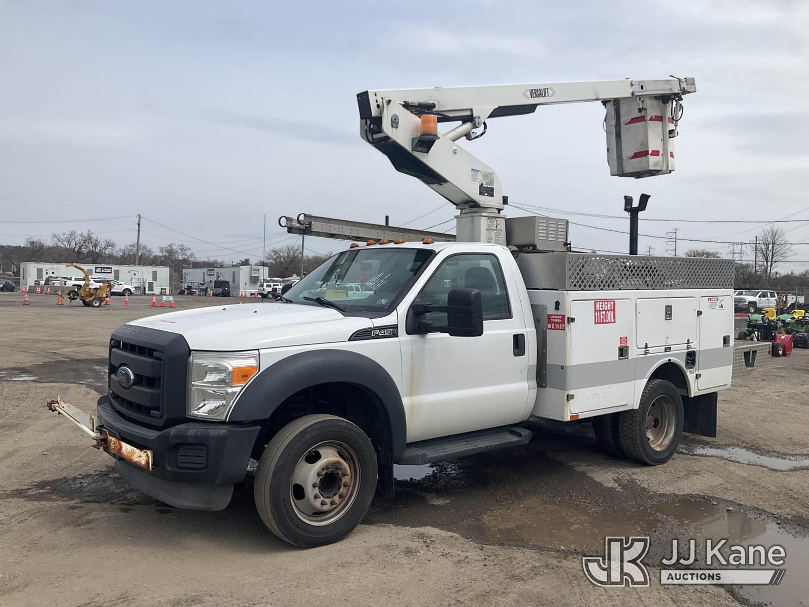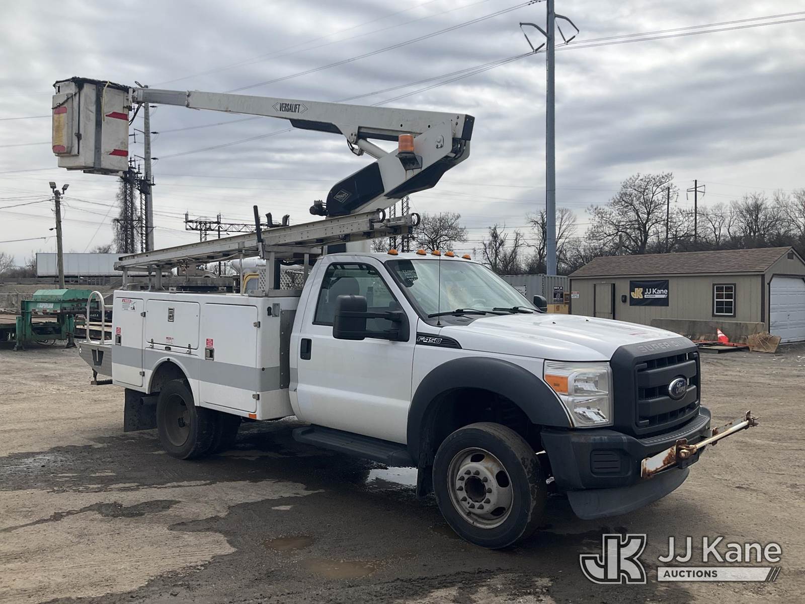 Versalift TEL29NE03, 34 ft, Telescopic Non-Insulated Bucket Truck s/n AG130874, with Single-Man Bucket, mounted behind cab on 2014 Ford F450 Service Truck, 10-cyl gas, Auto, A/C, (99,578 miles) (Seller States; CORE SUPPORT ROTTED, OTHER CORROSION ISSUES) (Runs Moves & Upper Operates, Jump To Start, Rust On Cab Corner, Missing Upper Plate) This is a Titled Item NOTE: This unit is being sold AS IS/WHERE IS via Timed Auction and is located in Plymouth Meeting, PA. Inspection & preview days for this unit are the 2 business days prior to the first day of items closing for this auction, item is located at 1402 Conshohocken Rd Plymouth Meeting, PA 19462 and hours of operations are 8a-4p. For pre-sale questions, please contact Bruce Thomas @ (267) 887-0392 or bruce.thomas.jr@jjkane.com. (Manuals provided in cab) (Buyer is responsible for removal. Assistance by consignor or JJ Kane Auctions is not assured.)