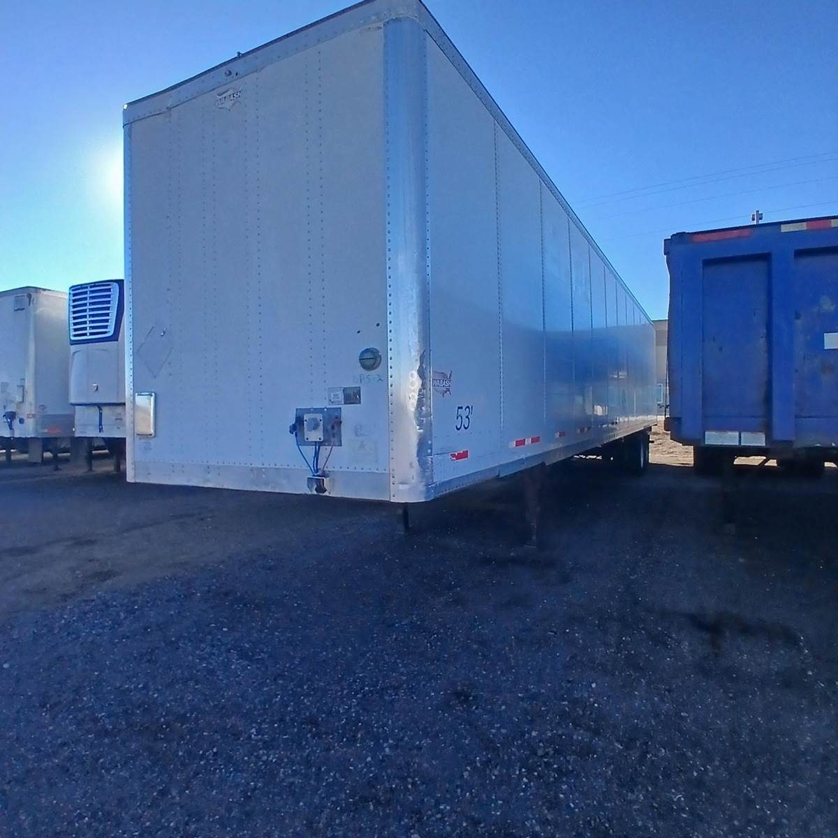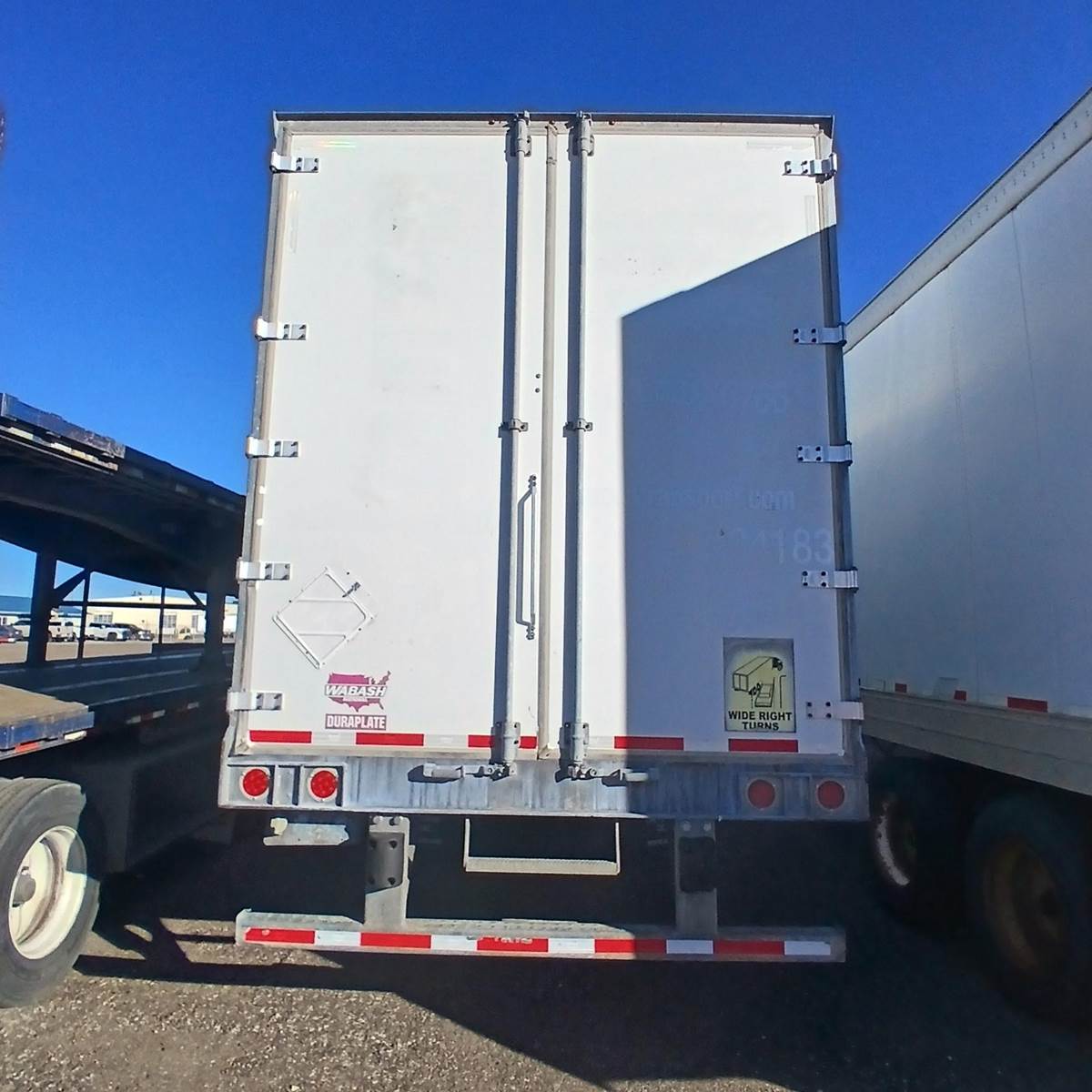 2014 Wabash Dura Plate Dry Van, 53' x 102", Aluminum Front Corners, Smooth Panels, Closed Tandem, Air Ride w Slider, Steel Wheels, 22.5LP tires, Rear Swing Doors, Threshold Plate, Wood Floor, Wearband, Logistic Post, Plate Walls, Aluminum Roof.