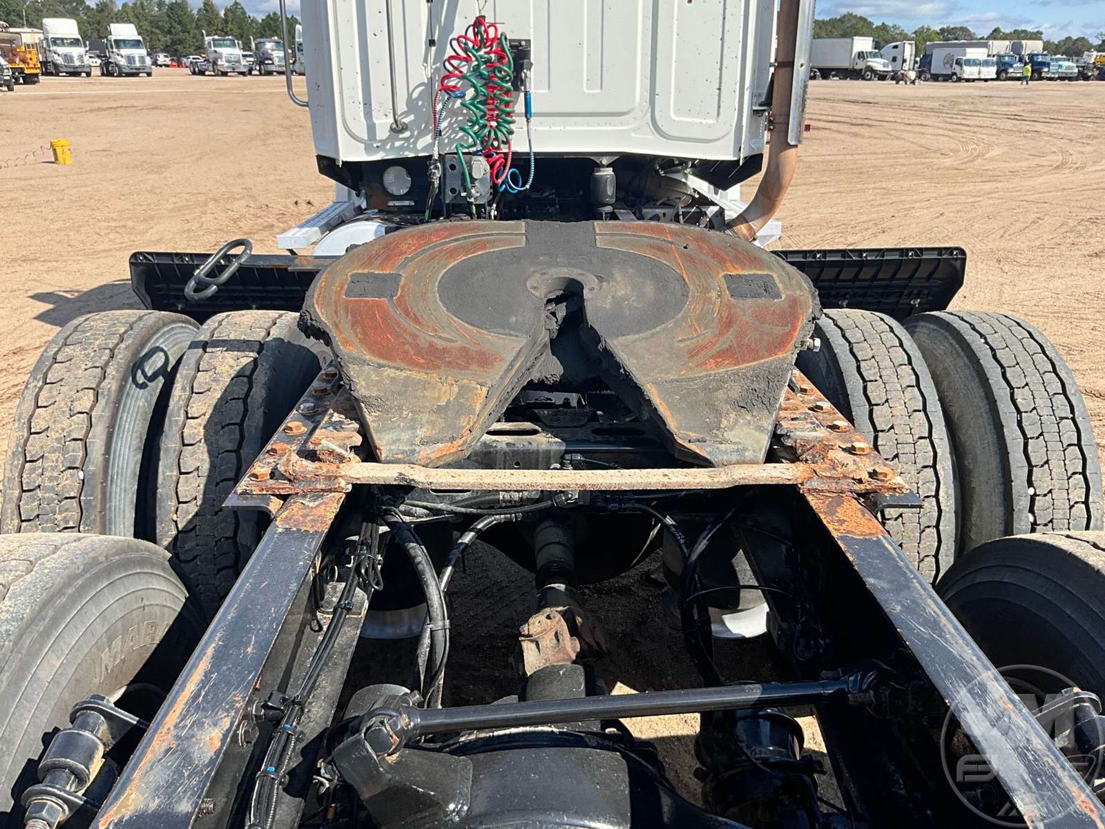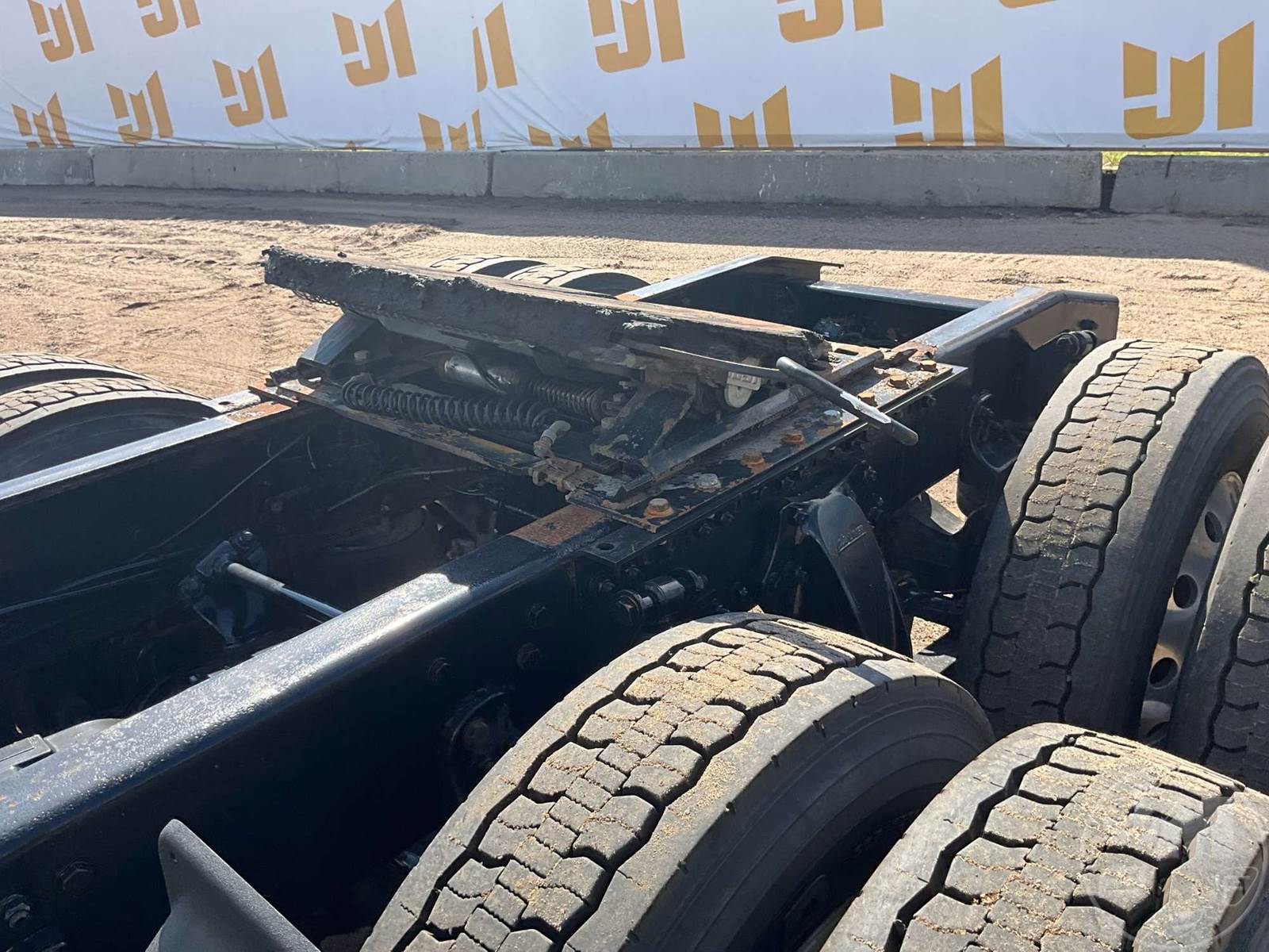 TANDEM AXLE DAY CAB TRUCK TRACTOR, DETROIT, DD13, 450 HP, EATON FULLER, AUTOMATIC, AIR RIDE SUSPENSION, DRUM, 188 " WB, C/A: 102, 12K FRONTS, 40K REARS, 52000 GVWR, AIR SLIDE FIFTH WHEEL, A/C, AIR DRIVERS SEAT, CRUISE CONTROL, ENGINE BRAKE, DIFF LOCK, AIR RIDE CAB, ALUM DISC WHEELS, 295/75R22.5 TIRES, ODOMETER READS: 645124
