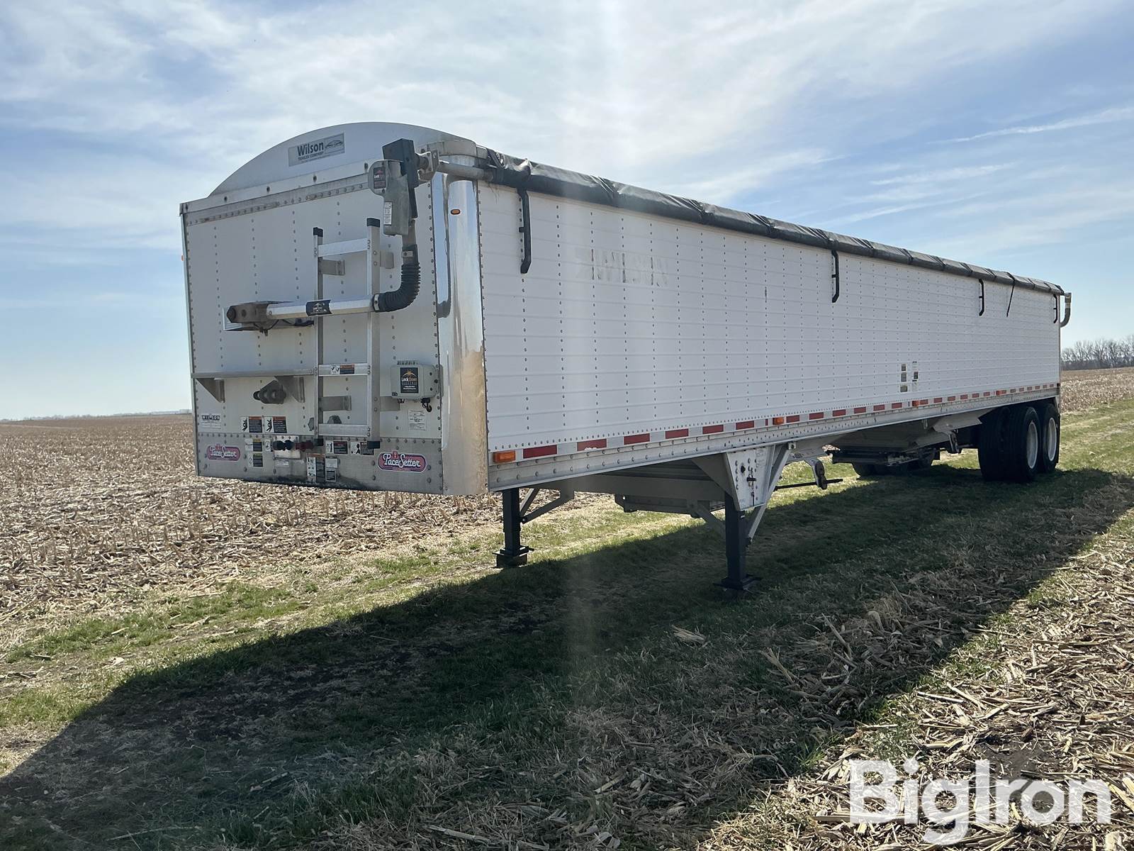 2014 Wilson Pace Setter DWH-500 T/A Hopper Bottom, 65,000 Gross Vehicle Wt. Rating (GVWR), 19,040 Lb. Rear Axles, 19,040 Lb. Front Axles, Air Suspension, 4 Air Bags, Fixed Axle, Air Brakes, 11R24.5 Front Tires, 11R24.5 Rear Tires, Duals, Aluminum Wheels, 43' Length, 96” Width, 66" height, 9,500 lbs Weight, Ag Hopper Doors, Single Tarp, Power Tarp, aluminum Liner, aluminum Floor, steel Frame, Kingpin, 2 Hoppers, Aluminum double-wall hopper trailer, two-piece lower hoppers, 2-speed rack & pinion trap system, Sioux City electric tarp system, VIN: 4WW4432A4E7706835