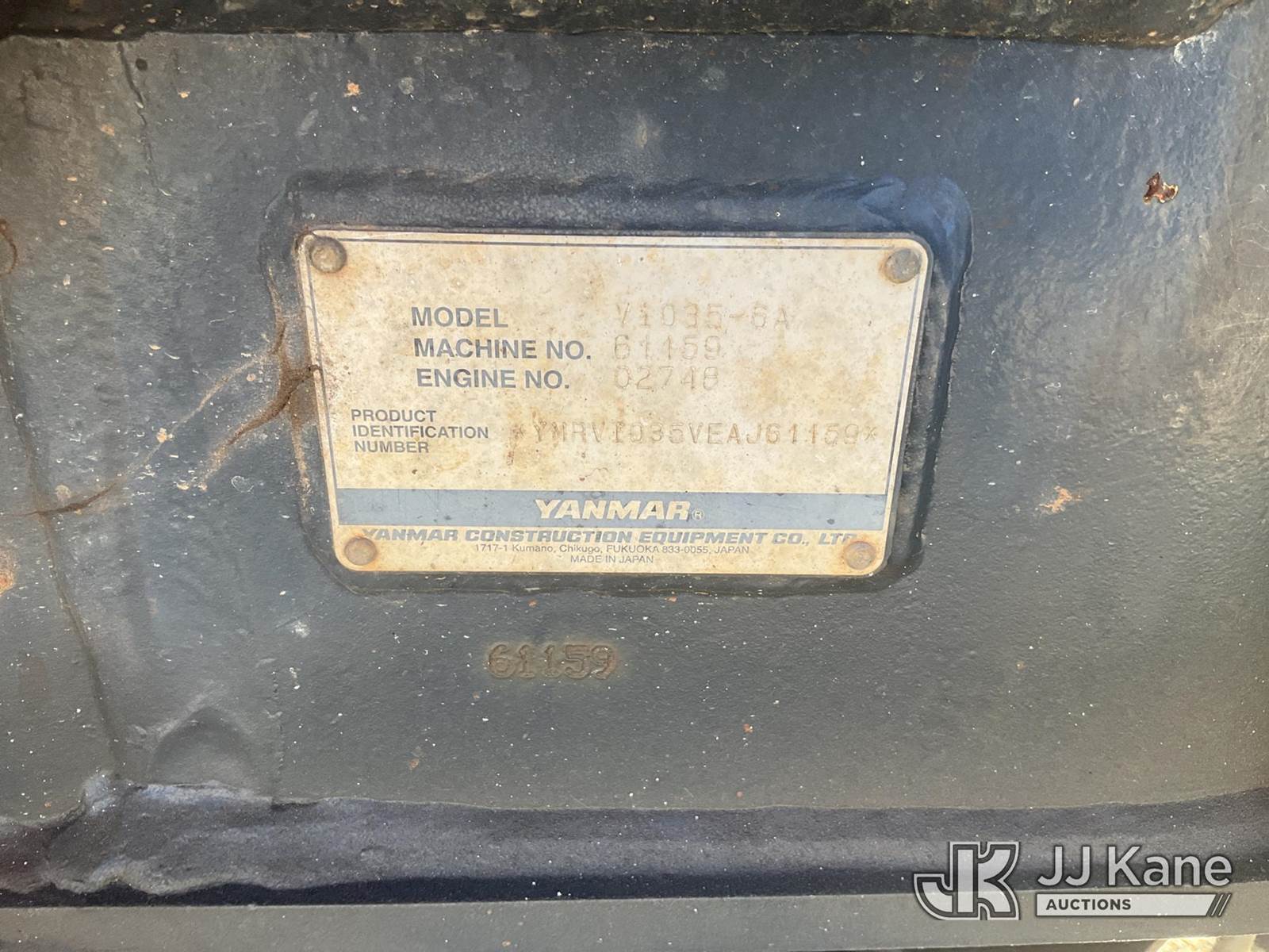2014 YANMAR VIO35-6 Mini Hydraulic Excavator, s/n YMRVI035VEAJ61159, Yanmar Hydraulic Drive, diesel, with ROPS, 50 in boom, 11 in digging bucket, backfill blade, (Runs, Moves & Operates) (Reads 1,964 hours) NOTE: This unit is being sold AS IS/WHERE IS via Timed Auction and is located in Villa Rica, GA. Inspection & preview days for this unit are the 2 business days prior to the first day of items closing for this auction, item is located at 100 Liberty Rd Villa Rica, GA 30180 and hours of operations are 8a-4p. For more information & removal arrangements please contact Office Staff @ 470-590-8453. (Buyer is responsible for removal. Assistance by consignor or JJ Kane Auctioneers is not assured.)