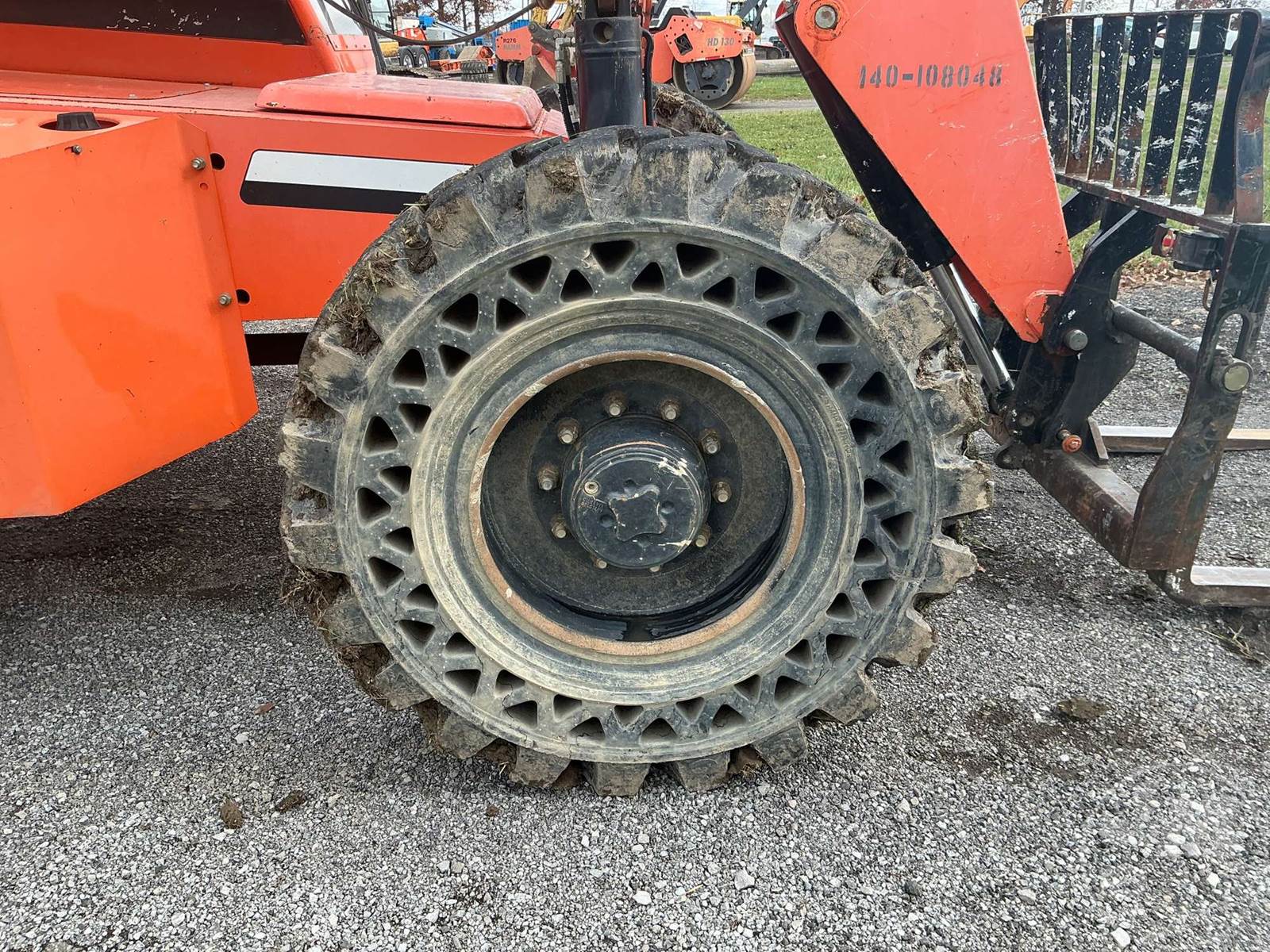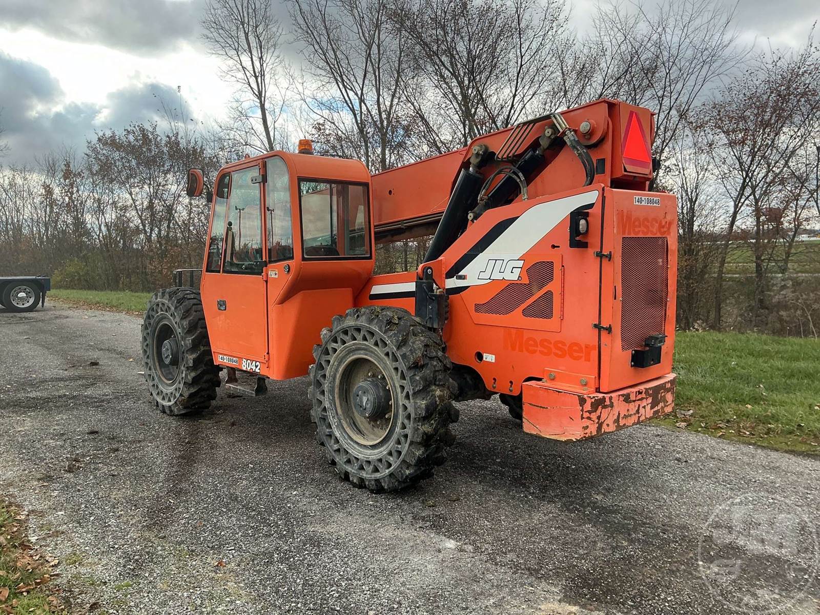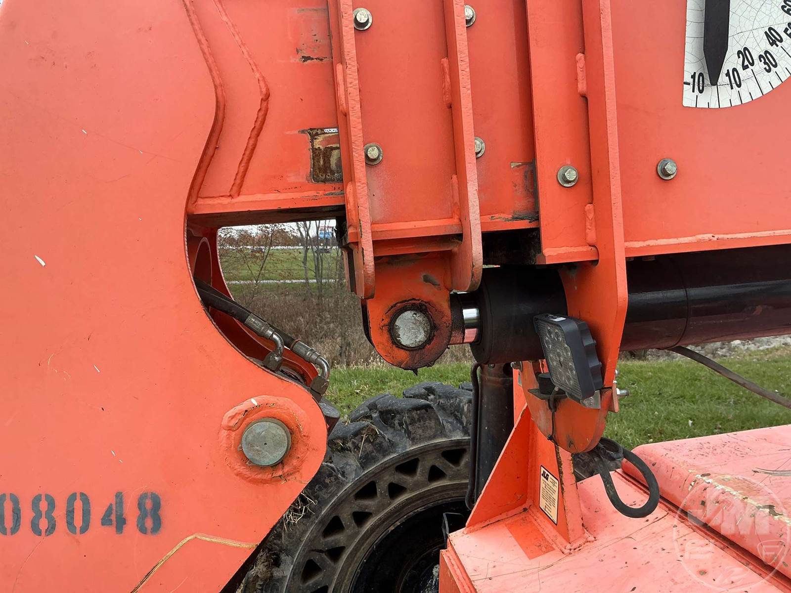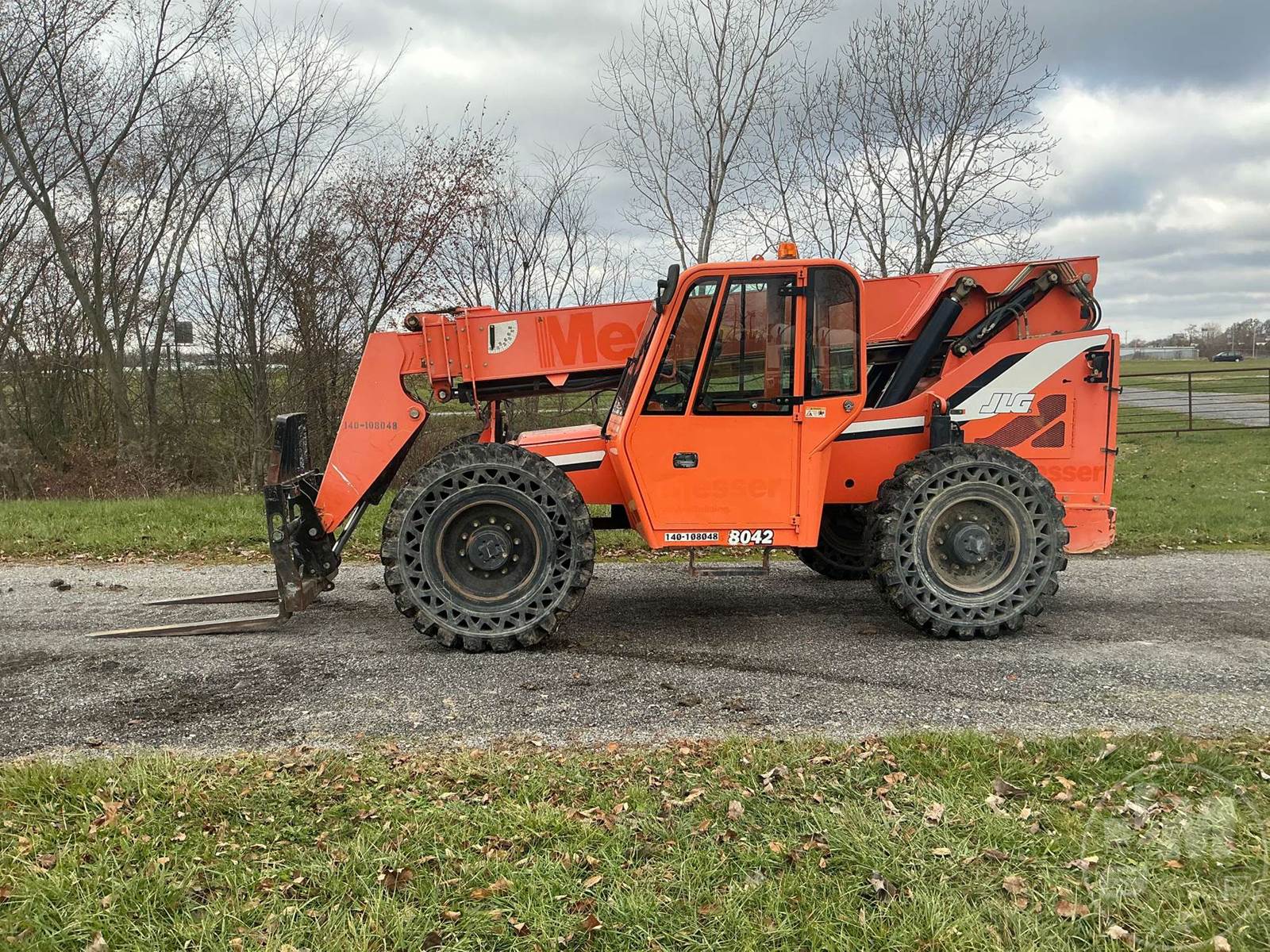 JLG 8000 LB TELESCOPIC FORKLIFT, FORKLIFT 8000# 42 FT. MAX HT,CAB, AC, CUMMINS, DIESEL, 42 LIFT HEIGHT, 4X4, FRAME LEVELING, 60" FORKS, BACKUP CAMERA,SOLID TIRES, HOUR METER READS: 5060