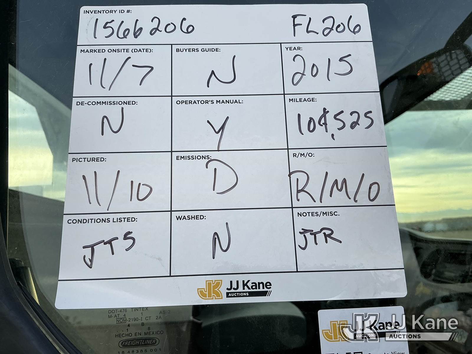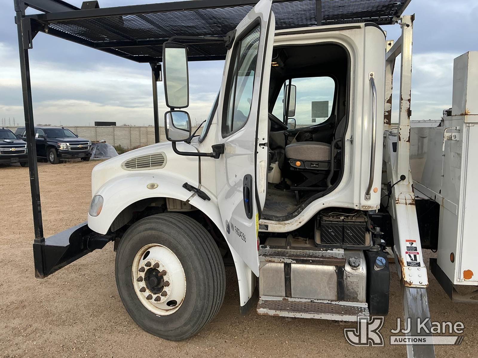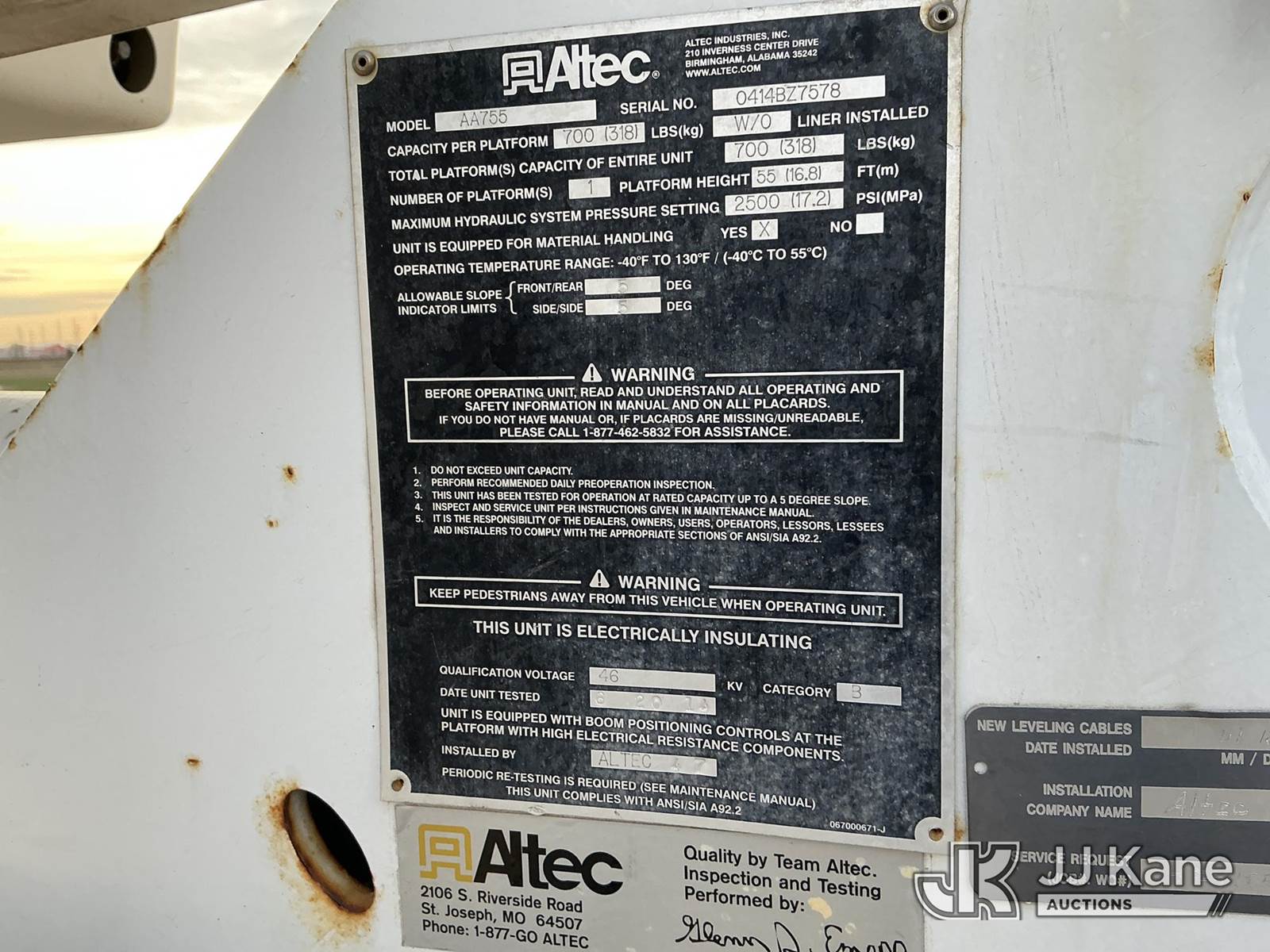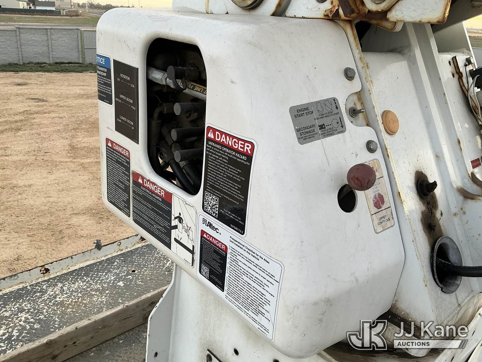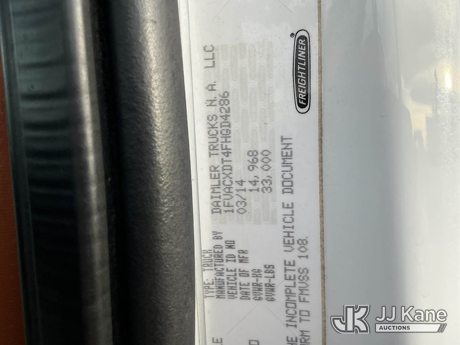 Altec AA755-MH, 60 ft, Material Handling Bucket s/n 0414BZ7578, with Two Man Bucket, 4 Hydraulic Outriggers, rear mounted on 2015 FREIGHTLINER M2-106 Utility Truck, 6.7L diesel 6-spd, A/C, (104,525 miles) (Runs, Move & Upper Operates) (Jump To Start) (NO EMISSIONS TEST PROVIDED SEE BIDDER AGREEMENT) (Reads 5,761 hours) This is a Titled Item NOTE: This unit is being sold AS IS/WHERE IS via Timed Auction and is located in Fort Lupton, CO. Inspection & preview days for this unit are the 2 business days prior to the first day of items closing for this auction, item is located at 2105 Northland Dr Fort Lupton, CO 80621 and hours of operations are 8a-4p. For pre-sale questions, please contact Dakota Hoffman @ (720) 621-0786. Dealer License Number 47109. (Manuals provided in cab) (Buyer is responsible for removal. Assistance by consignor or JJ Kane Auctioneers is not assured.)