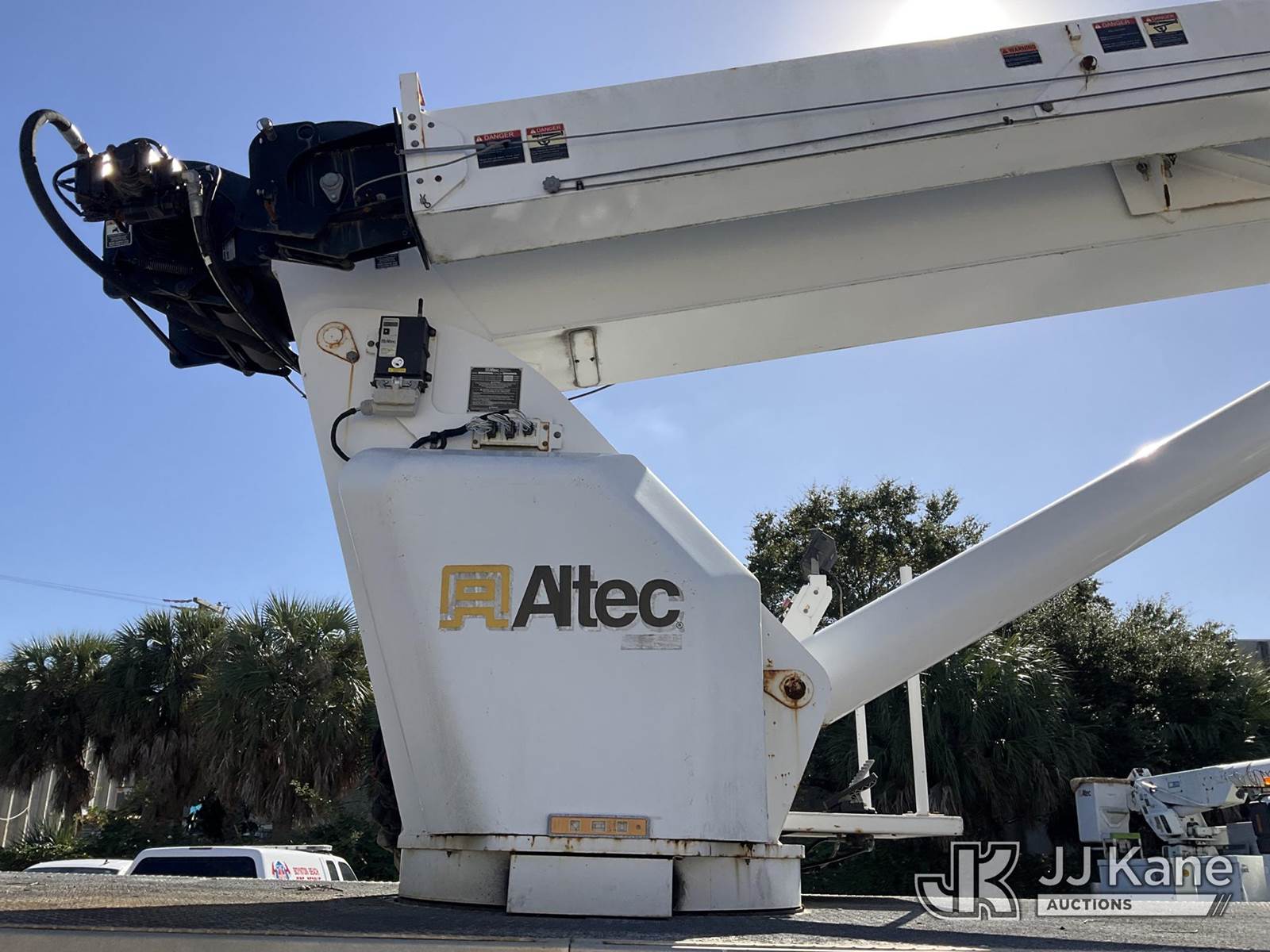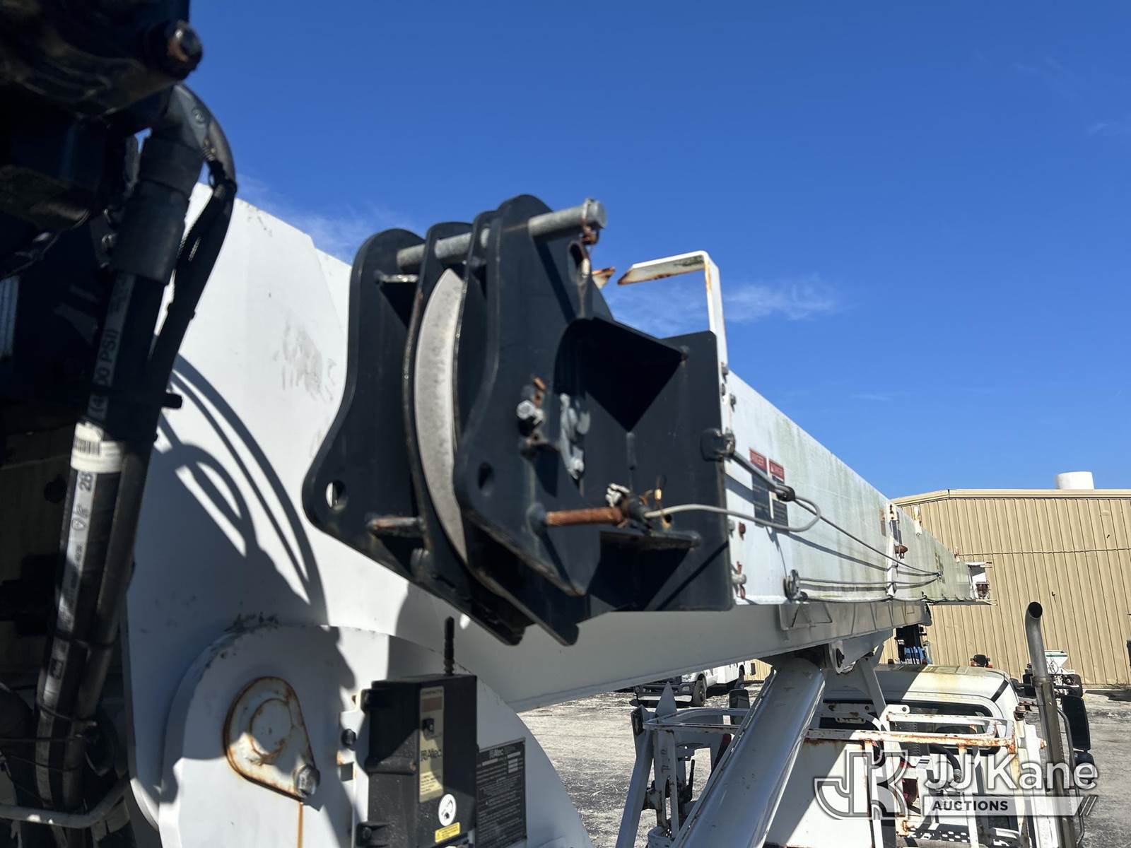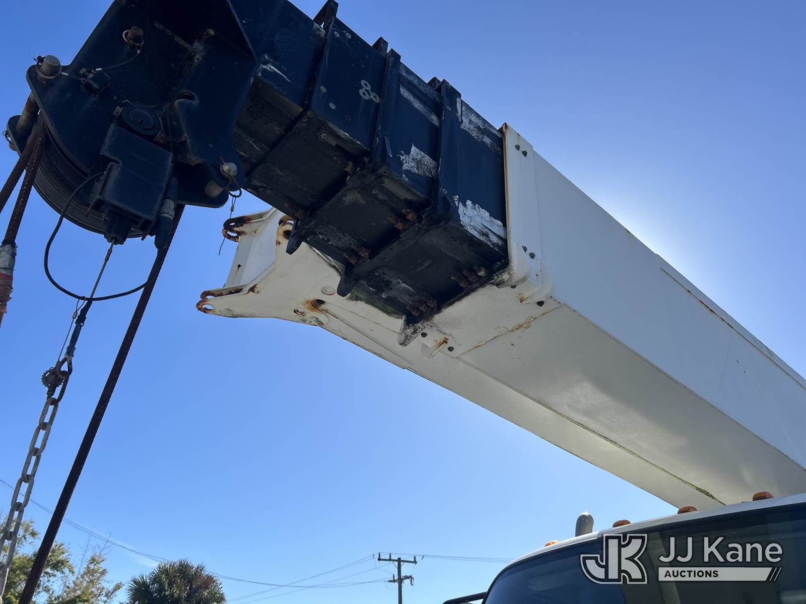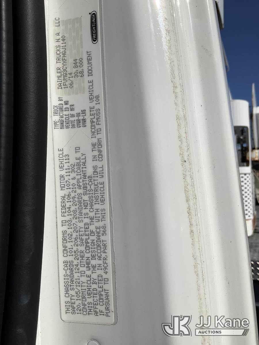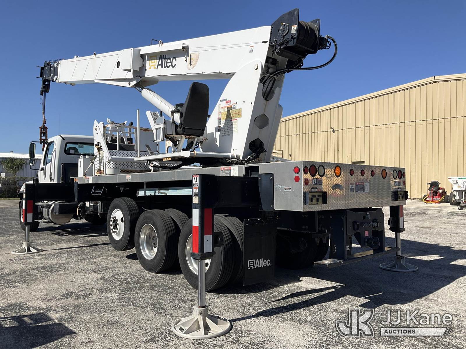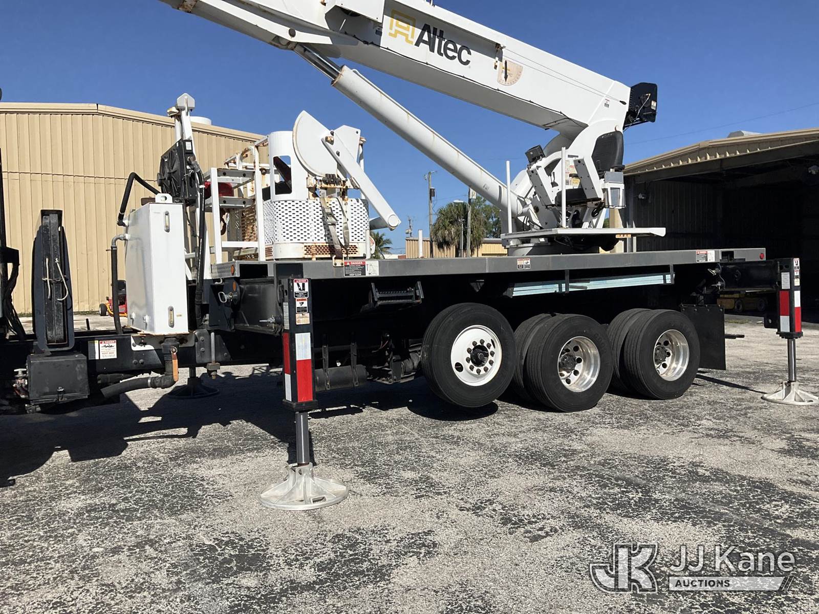 Altec AC38-127S, 38-Ton, Hydraulic Crane s/n 1014EG1253, with 192 ft. sheave height, 31 ft. to 127 ft. of 5 section hyd boom, 31 ft. to 55 ft. 2 section telescopic swing away jib, McKissick 7 ton overhaul ball, McKissick 20 ton double sheave hook block, anti-two-block, Altec LMAP, remote, man basket, riding console & 5 hyd outriggers, rear mounted on 2015 Freightliner 114SD 8X4 Tri-Drive Flatbed Truck, Cummins ISL 8.9L diesel, Auto, A/C, with air lift 3rd axle, A/R suspension & aluminum wheels, (2,840 miles) (Runs, Moves & Crane Operates)( Remote Inside Cab, Rust Areas On The Boom)((FL Residents Purchasing Titled Items - tax, title & registration fees will be collected at the maximum rate of $400.00 under 25,999 and $800.00 for Over 26,000 and $250.00 trailers - Proof of insurance is mandatory; Out of State Residents Purchasing Title Items - tax will be collected based upon your state rate.) (Reads 666 hours) This is a Titled Item NOTE: This unit is being sold AS IS/WHERE IS via Timed Auction and is located in West Palm Beach, FL. For Pick Up & Removal information, please contact: Andy Garcia @ 561-215-0085. Removals require 24-hr Notice by Appointment Only, Buyer/Hauler must present copy of Paid-in-Full JJ Kane Release Form upon arrival. Purchaser acknowledges ALL lots must be removed within 10 business days of Auction, or a towing & storage fee may be incurred. (Manuals provided in cab) (Buyer is responsible for removal. Assistance by consignor or JJ Kane Auctions is not assured.)