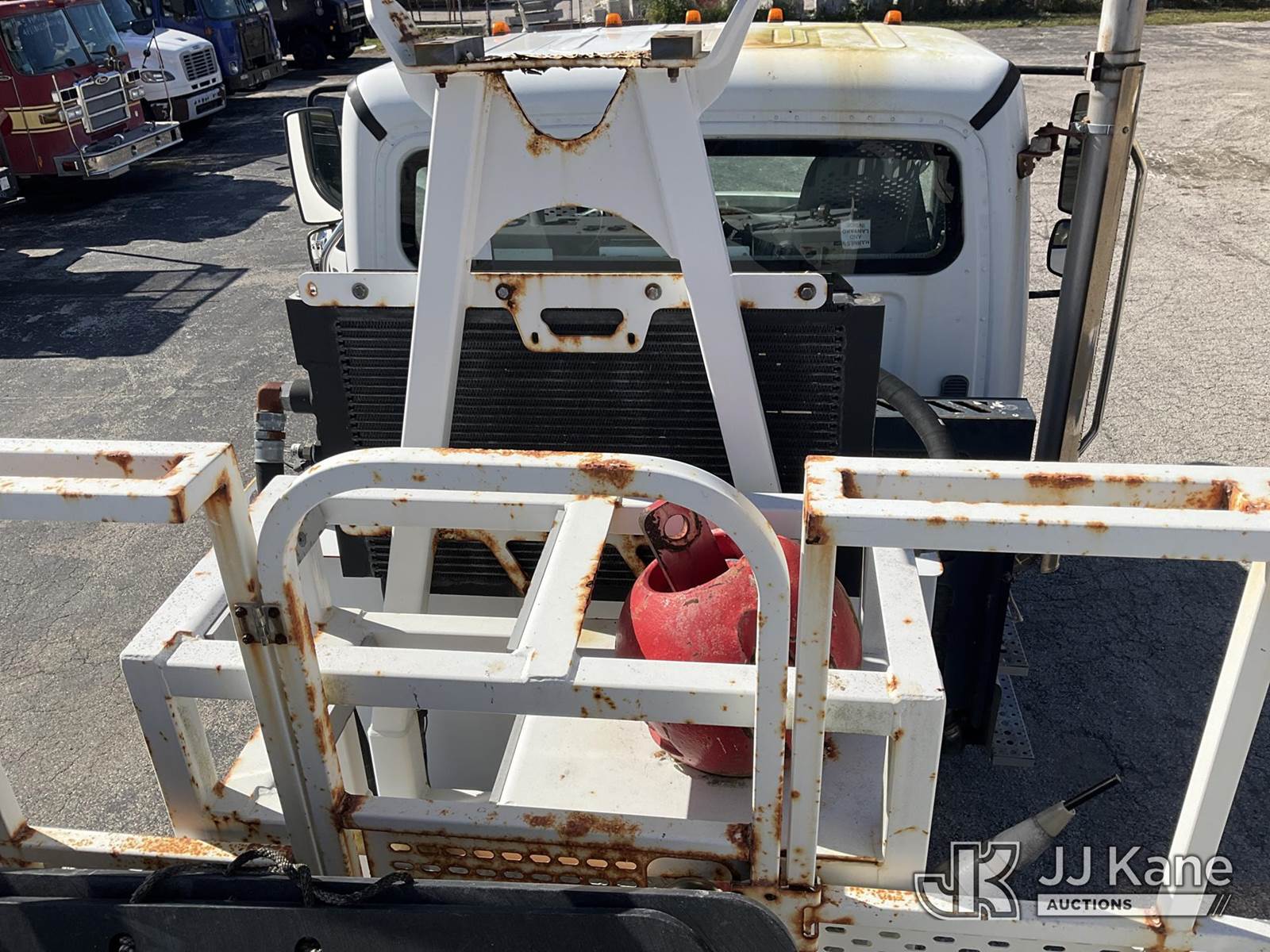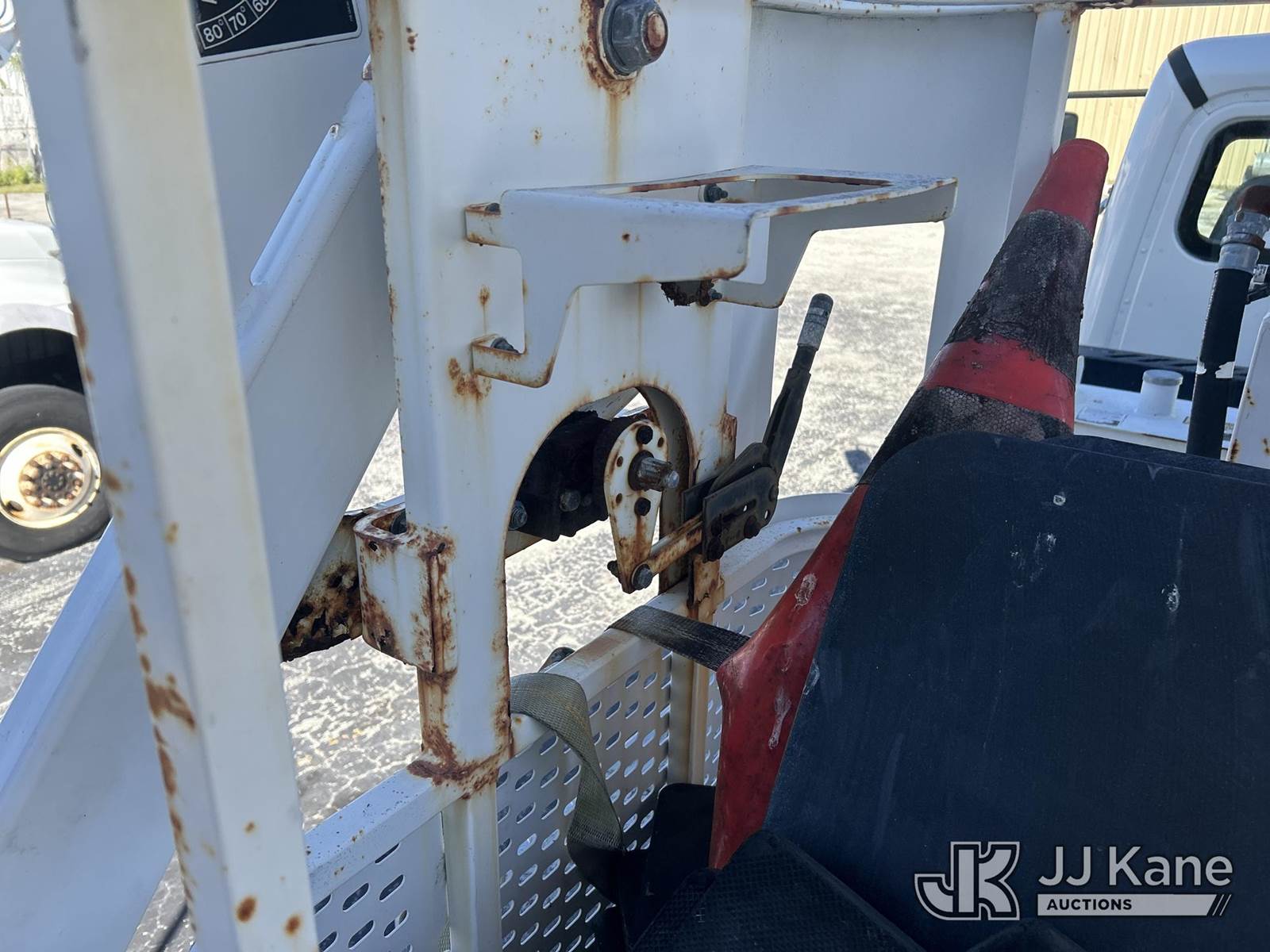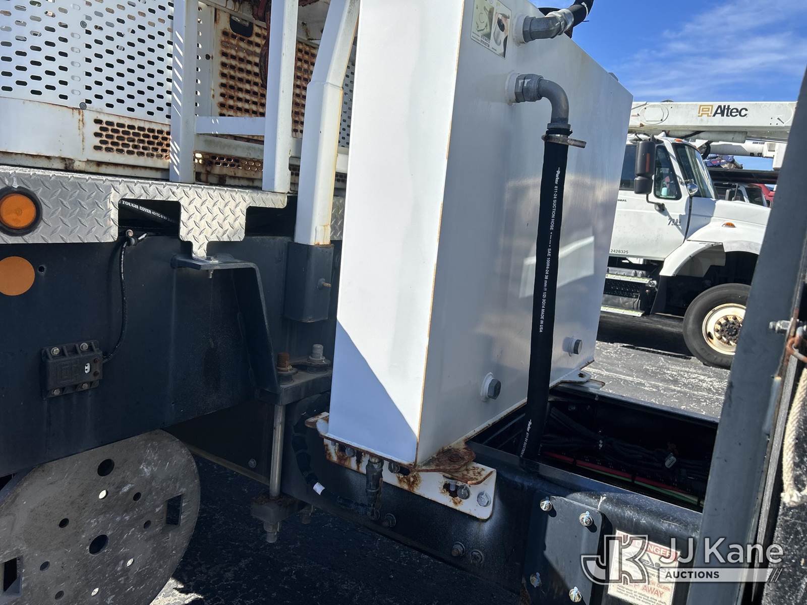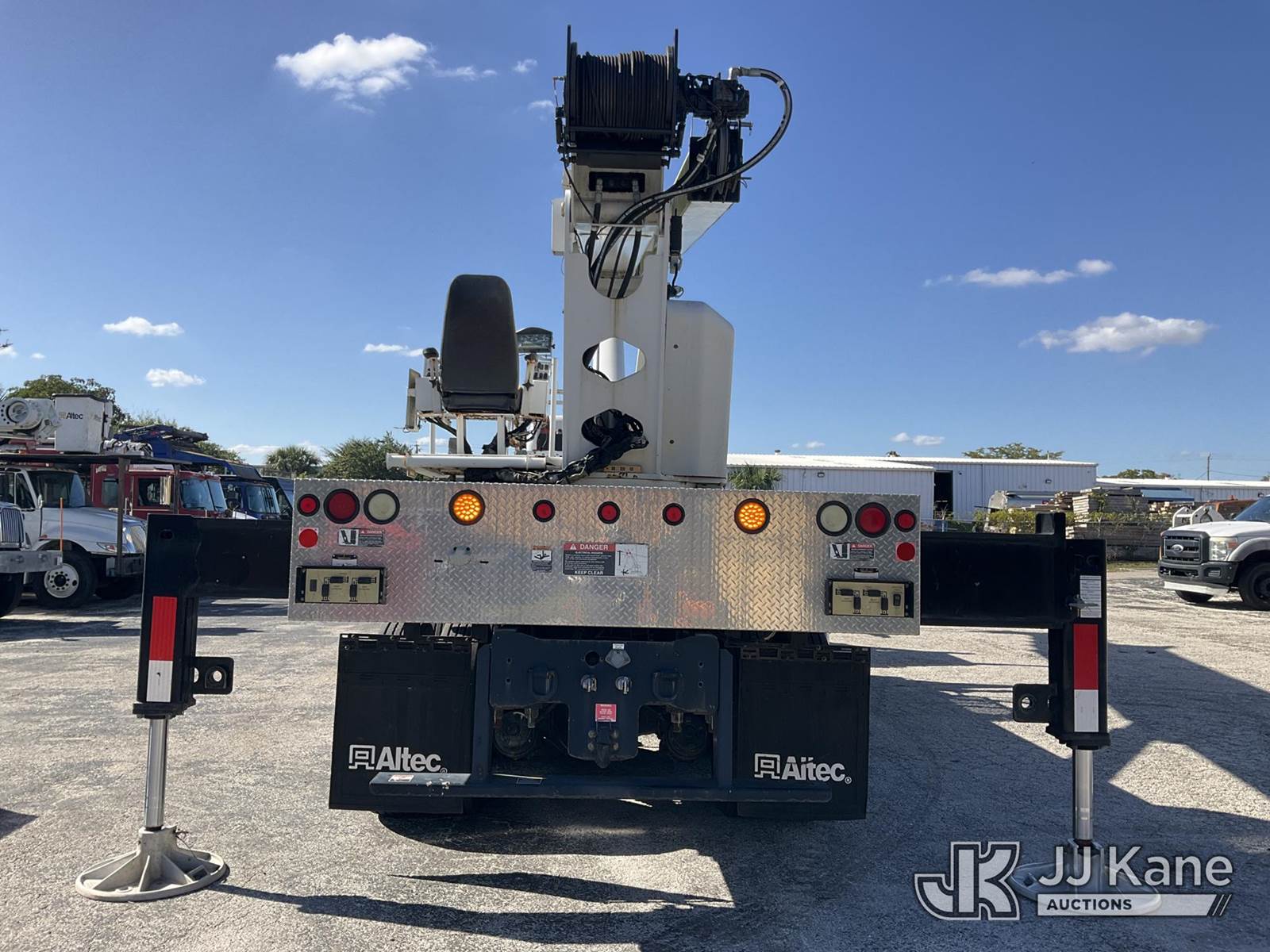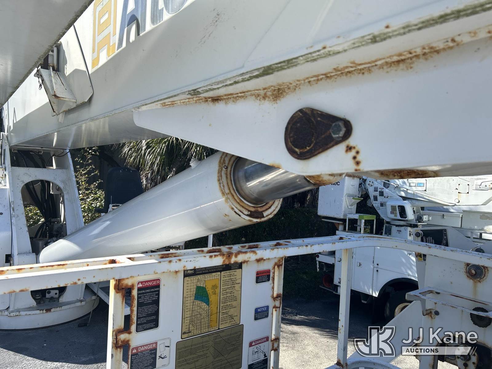 Altec AC38-127S, 38-Ton, Hydraulic Crane s/n 1014EG1253, with 192 ft. sheave height, 31 ft. to 127 ft. of 5 section hyd boom, 31 ft. to 55 ft. 2 section telescopic swing away jib, McKissick 7 ton overhaul ball, McKissick 20 ton double sheave hook block, anti-two-block, Altec LMAP, remote, man basket, riding console & 5 hyd outriggers, rear mounted on 2015 Freightliner 114SD 8X4 Tri-Drive Flatbed Truck, Cummins ISL 8.9L diesel, Auto, A/C, with air lift 3rd axle, A/R suspension & aluminum wheels, (2,840 miles) (Runs, Moves & Crane Operates)( Remote Inside Cab, Rust Areas On The Boom)((FL Residents Purchasing Titled Items - tax, title & registration fees will be collected at the maximum rate of $400.00 under 25,999 and $800.00 for Over 26,000 and $250.00 trailers - Proof of insurance is mandatory; Out of State Residents Purchasing Title Items - tax will be collected based upon your state rate.) (Reads 666 hours) This is a Titled Item NOTE: This unit is being sold AS IS/WHERE IS via Timed Auction and is located in West Palm Beach, FL. For Pick Up & Removal information, please contact: Andy Garcia @ 561-215-0085. Removals require 24-hr Notice by Appointment Only, Buyer/Hauler must present copy of Paid-in-Full JJ Kane Release Form upon arrival. Purchaser acknowledges ALL lots must be removed within 10 business days of Auction, or a towing & storage fee may be incurred. (Manuals provided in cab) (Buyer is responsible for removal. Assistance by consignor or JJ Kane Auctions is not assured.)
