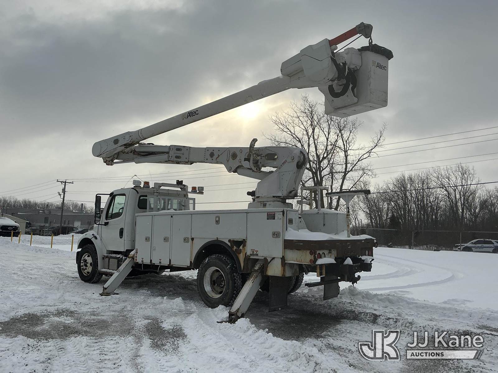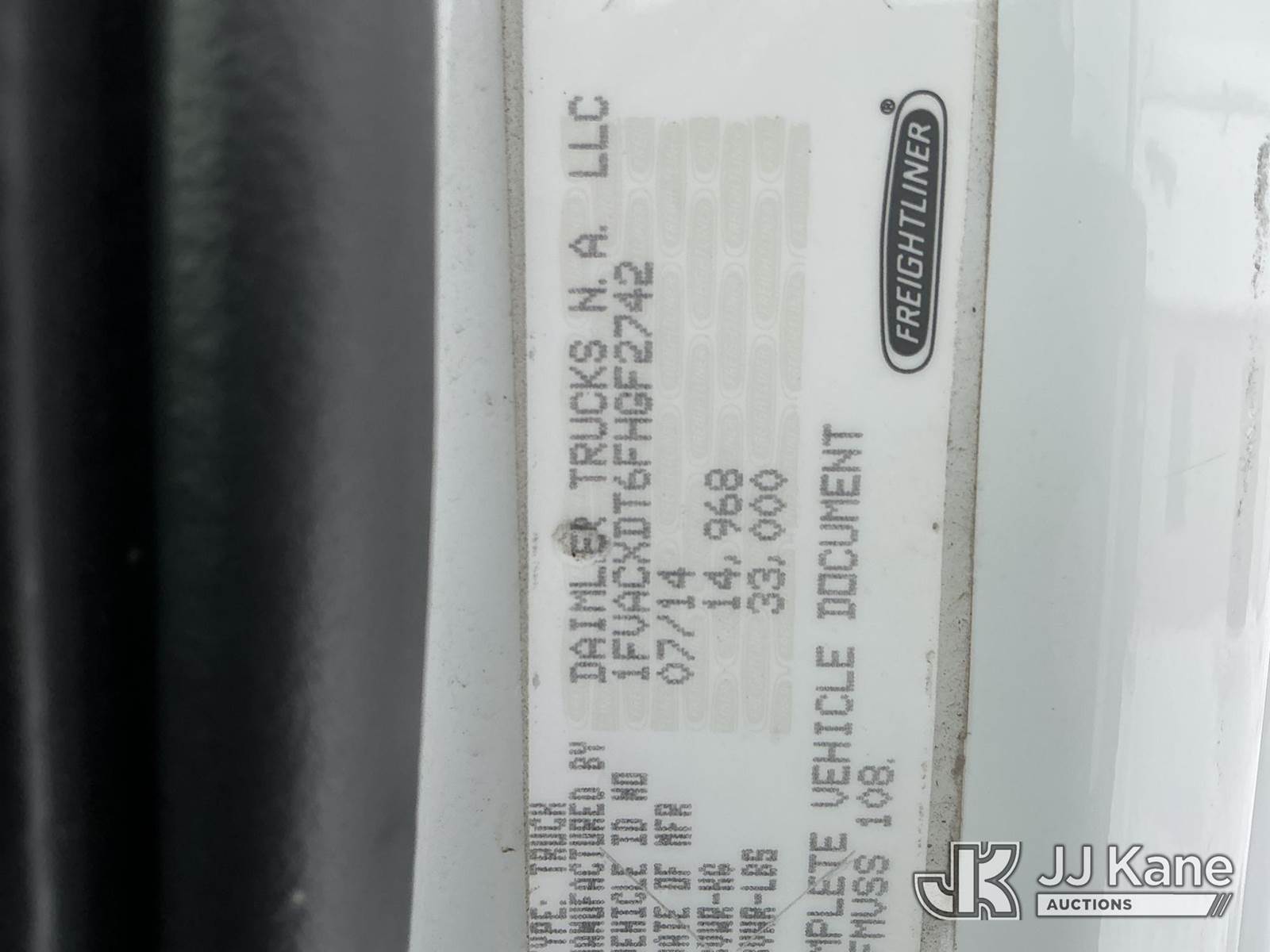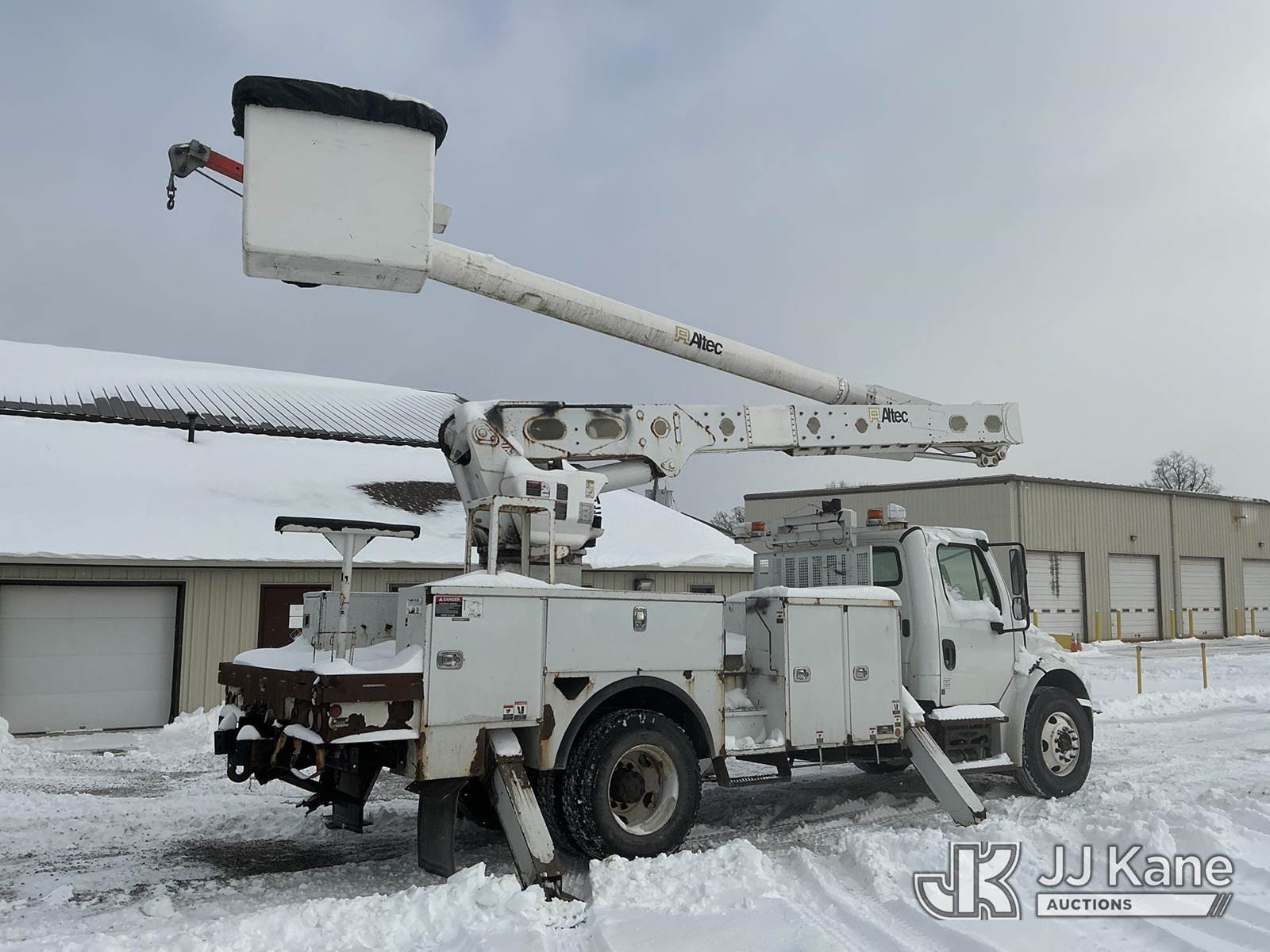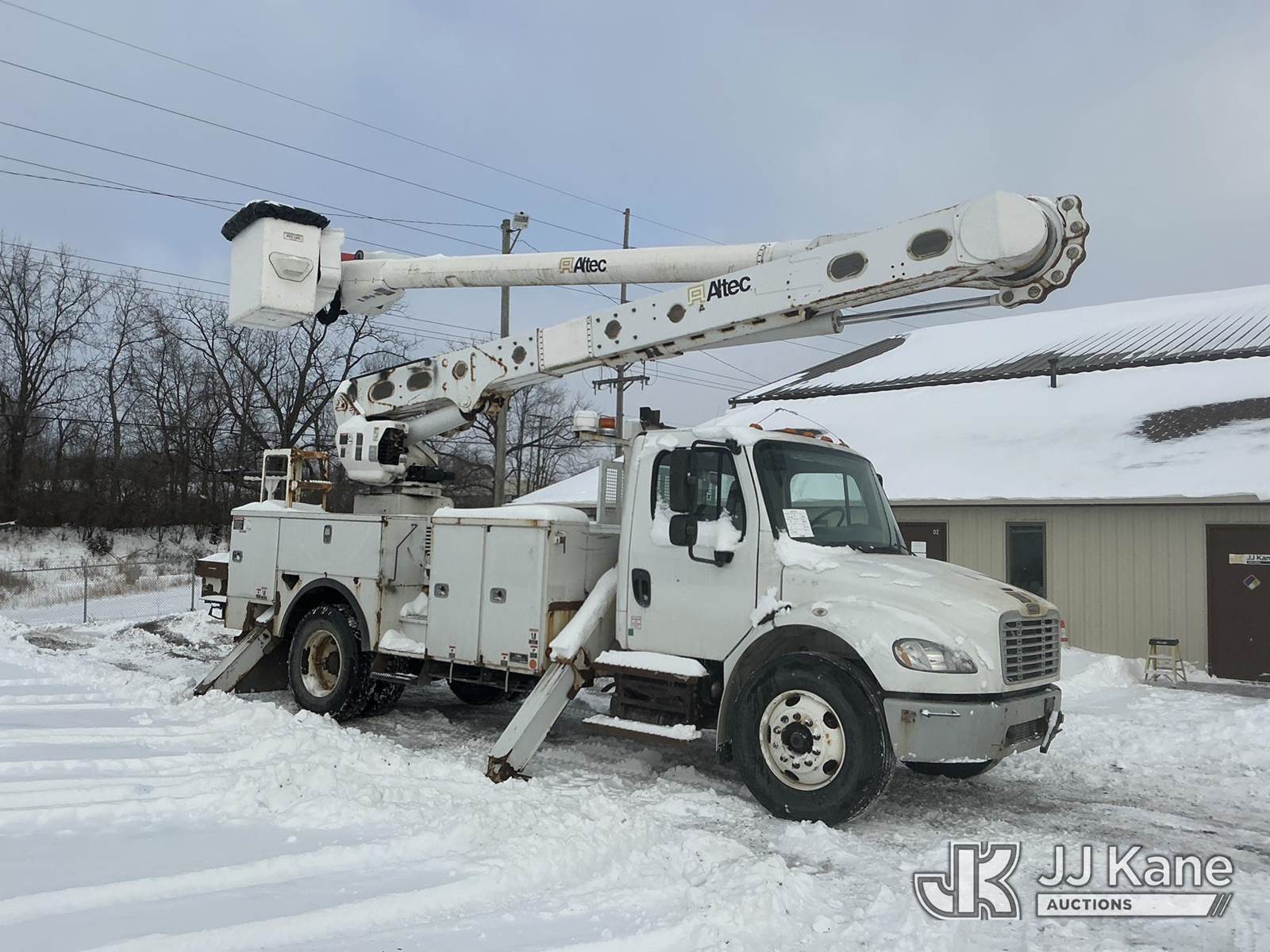Altec AM55, 60 ft, Over-Center Material Handling Bucket Truck s/n 0914DM5329, with two-man bucket & 4 hyd outriggers, rear mounted on 2015 Freightliner M2 106 Utility Truck, 6.7L L6 diesel, 4X2, Auto, A/C, (100,775 miles) (Runs, Moves & Upper Operates) (Check Engine Light On, Rust/Paint Damage) (Reads 10,404 hours) This is a Titled Item NOTE: This unit is being sold AS IS/WHERE IS via Timed Auction and is located in Fort Wayne, IN. Inspection & preview days for this unit are the 2 business days prior to the first day of items closing for this auction, item is located at 3020 Commercial Rd Fort Wayne, IN 46809 and hours of operations are 8a-4p. For pre-sale questions, please contact Eric Mcintosh @ (260) 205-2483 (Manuals provided in cab) (Buyer is responsible for removal. Assistance by consignor or JJ Kane Auctions is not assured.)