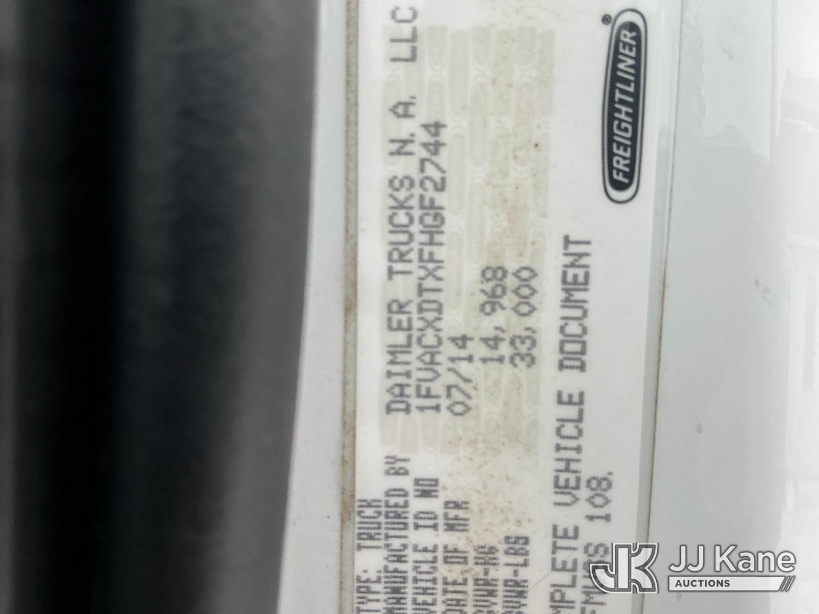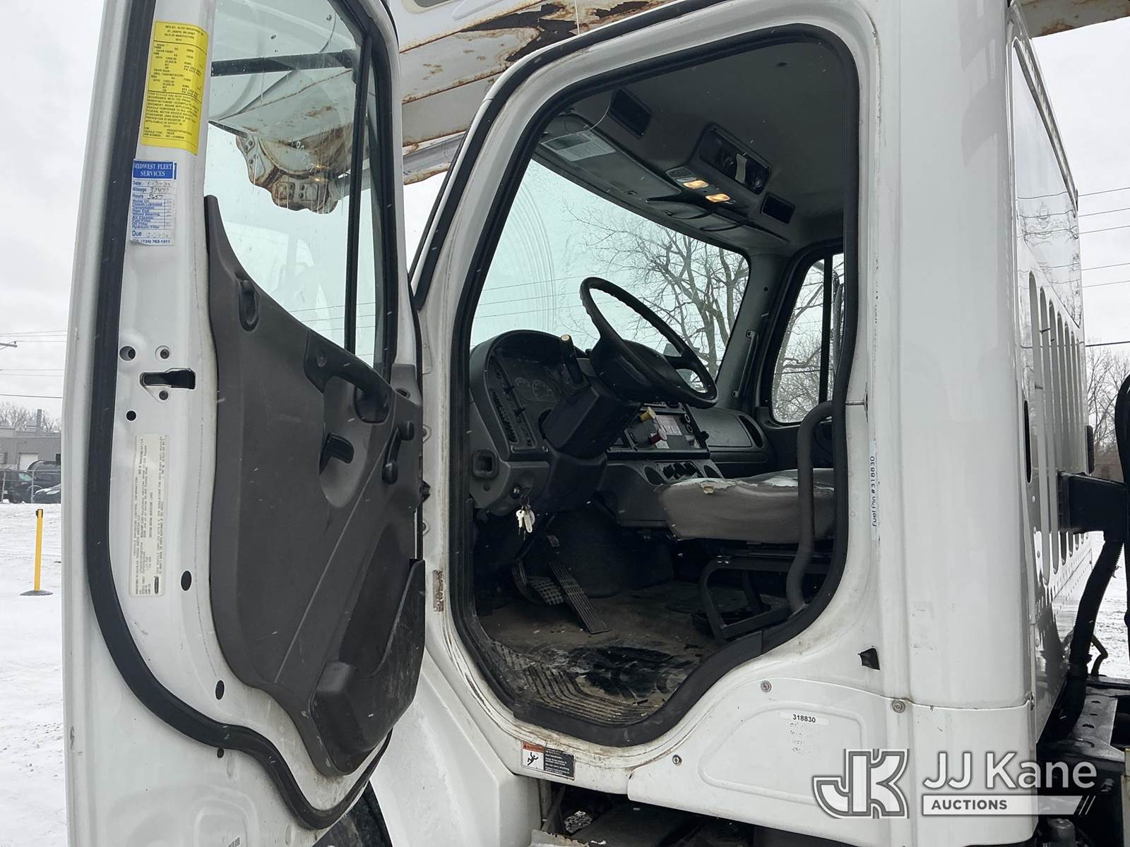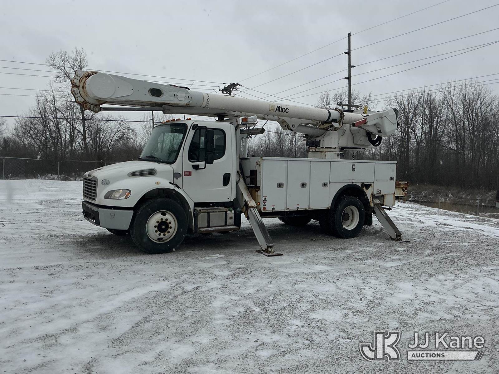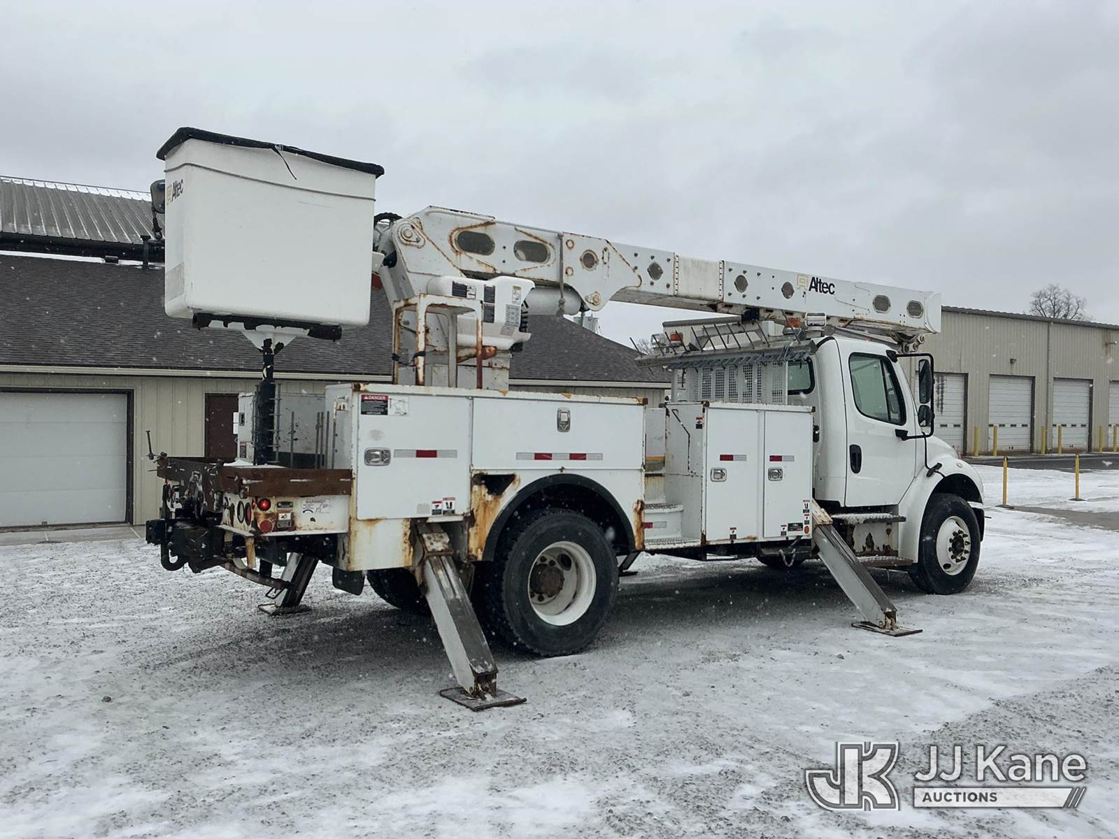 Altec AM55, 60 ft, Over-Center Material Handling Bucket Truck s/n 0914DM5331, with two-man bucket & 4 hyd outriggers, rear mounted on 2015 Freightliner M2 106 Utility Truck, 6.7L L6 diesel, 4X2, Auto, A/C, (90,527 miles) (Runs, Moves, Upper Condition Unknown)(Check Engine Light On, Rust/Paint Damage ) (Reads 9,693 hours) This is a Titled Item NOTE: This unit is being sold AS IS/WHERE IS via Timed Auction and is located in Fort Wayne, IN. Inspection & preview days for this unit are the 2 business days prior to the first day of items closing for this auction, item is located at 3020 Commercial Rd Fort Wayne, IN 46809 and hours of operations are 8a-4p. For pre-sale questions, please contact Eric Mcintosh @ (260) 205-2483 (Manuals provided in cab) (Buyer is responsible for removal. Assistance by consignor or JJ Kane Auctions is not assured.)