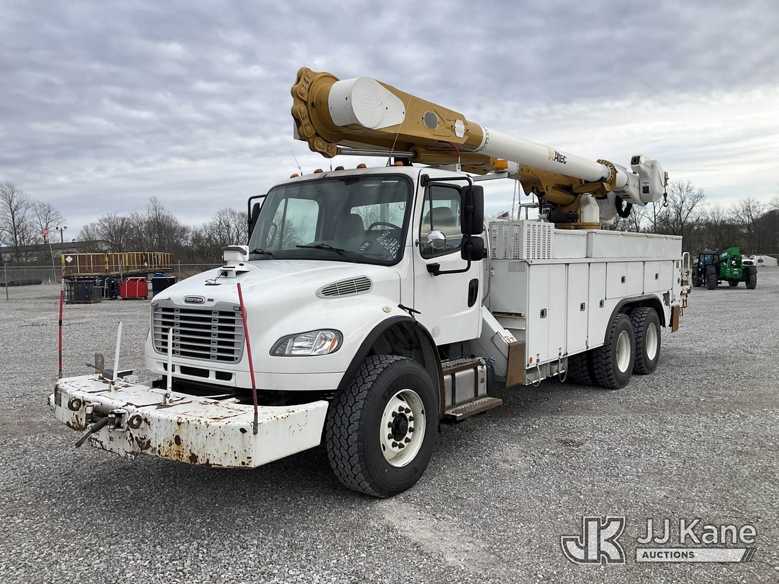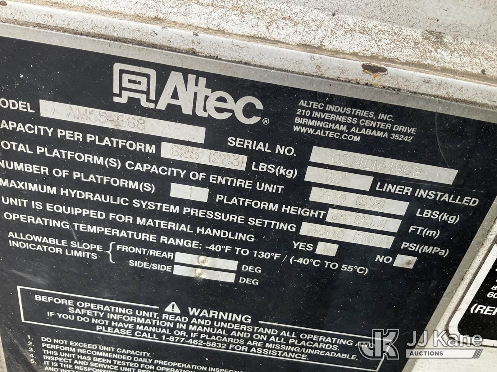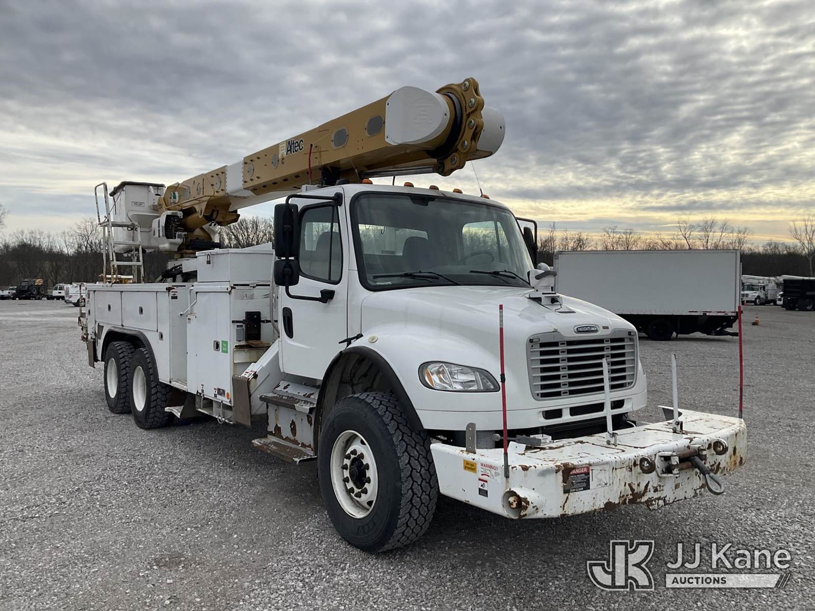 Altec AM55-E68, 73 ft, Over-Center Material Handling Elevator Bucket Truck s/n 0214DM4969, with two-man bucket & 4 hyd outriggers, mounted behind cab on 2015 Freightliner M2 106 Utility Truck, 8.9L L6 diesel, Auto, 6X4, A/C, with front winch, (87,369 miles) (Duke Unit) (Runs & Moves) (Upper Condition Unknown, Outriggers Will Not Operate, Check Engine Light On, Check Transmission Light On, Rust Damage ) This is a Titled Item NOTE: This unit is being sold AS IS/WHERE IS via Timed Auction and is located in Verona, KY. Inspection & preview days for this unit are the 2 business days prior to the first day of items closing for this auction, item is located at 2841 Verona-Mudlick Rd Ste B Verona, KY 41092 and hours of operations are 8a-4p. For pre-sale questions, please contact Office Staff @ (502) 612-5080. Auctioneer Michael Whitebread / License # 256617. (Manuals provided in cab) (Buyer is responsible for removal. Assistance by consignor or JJ Kane Auctions is not assured.)