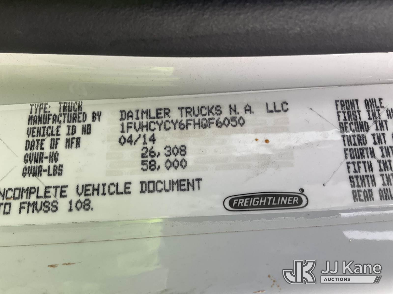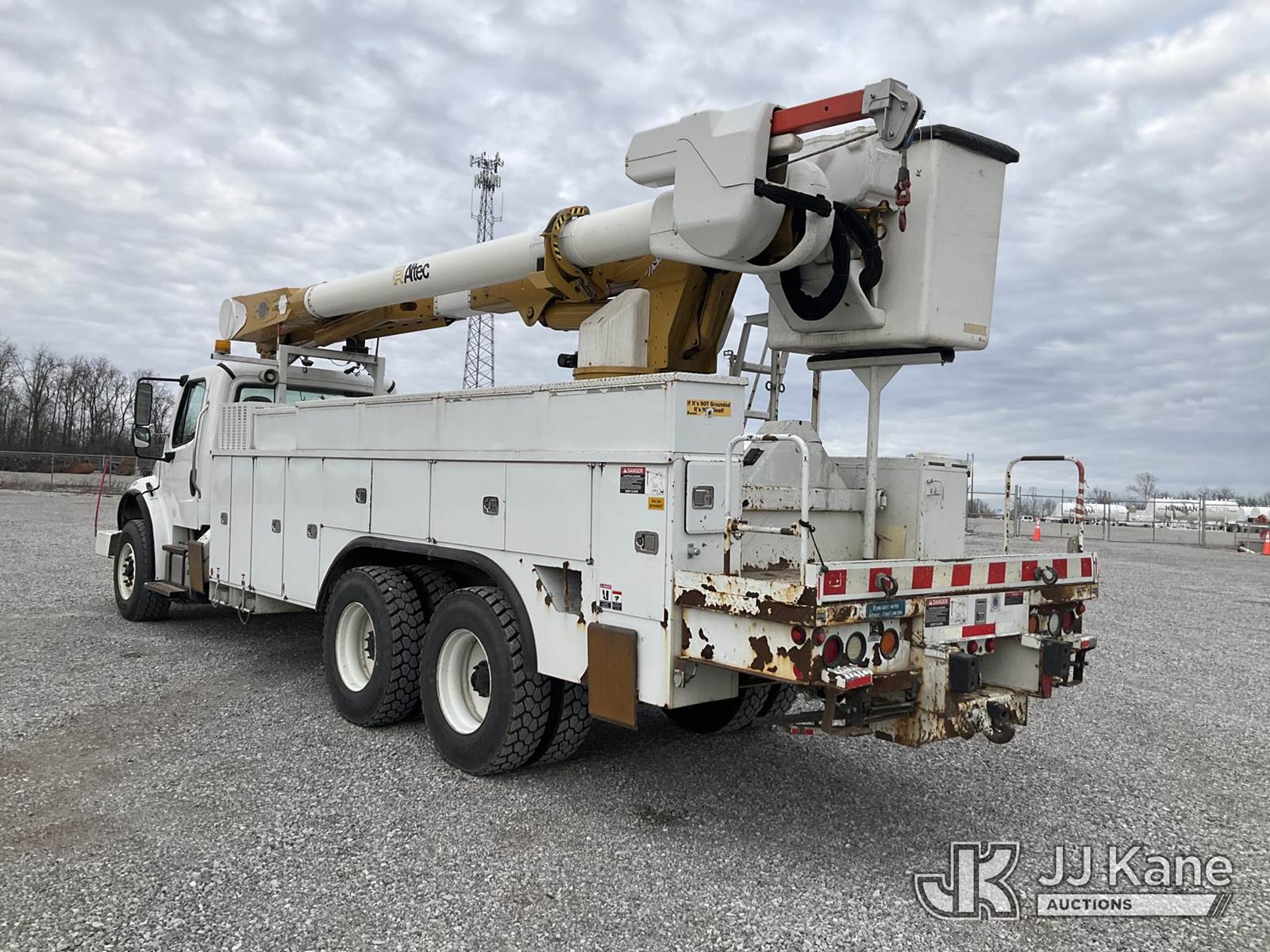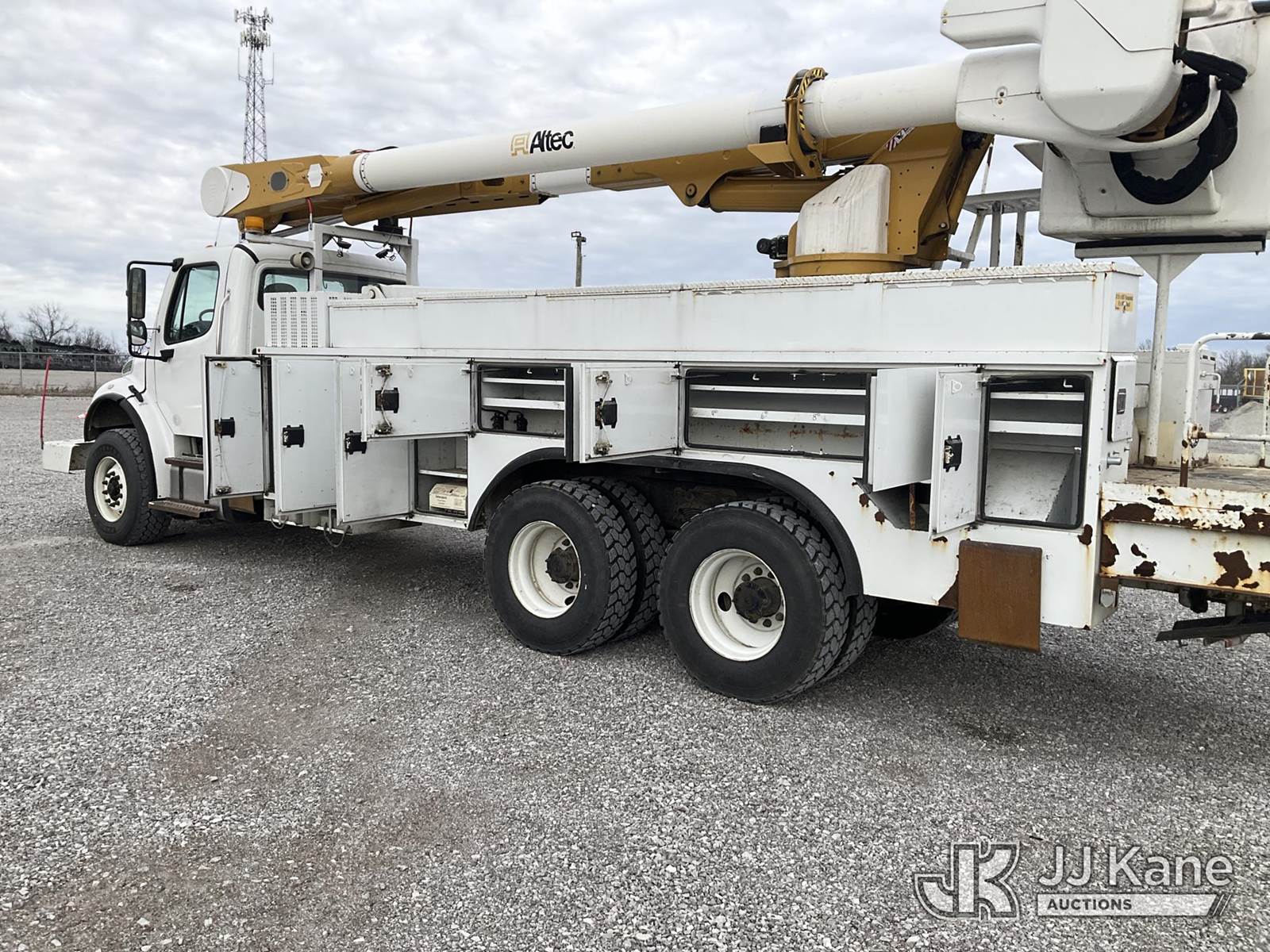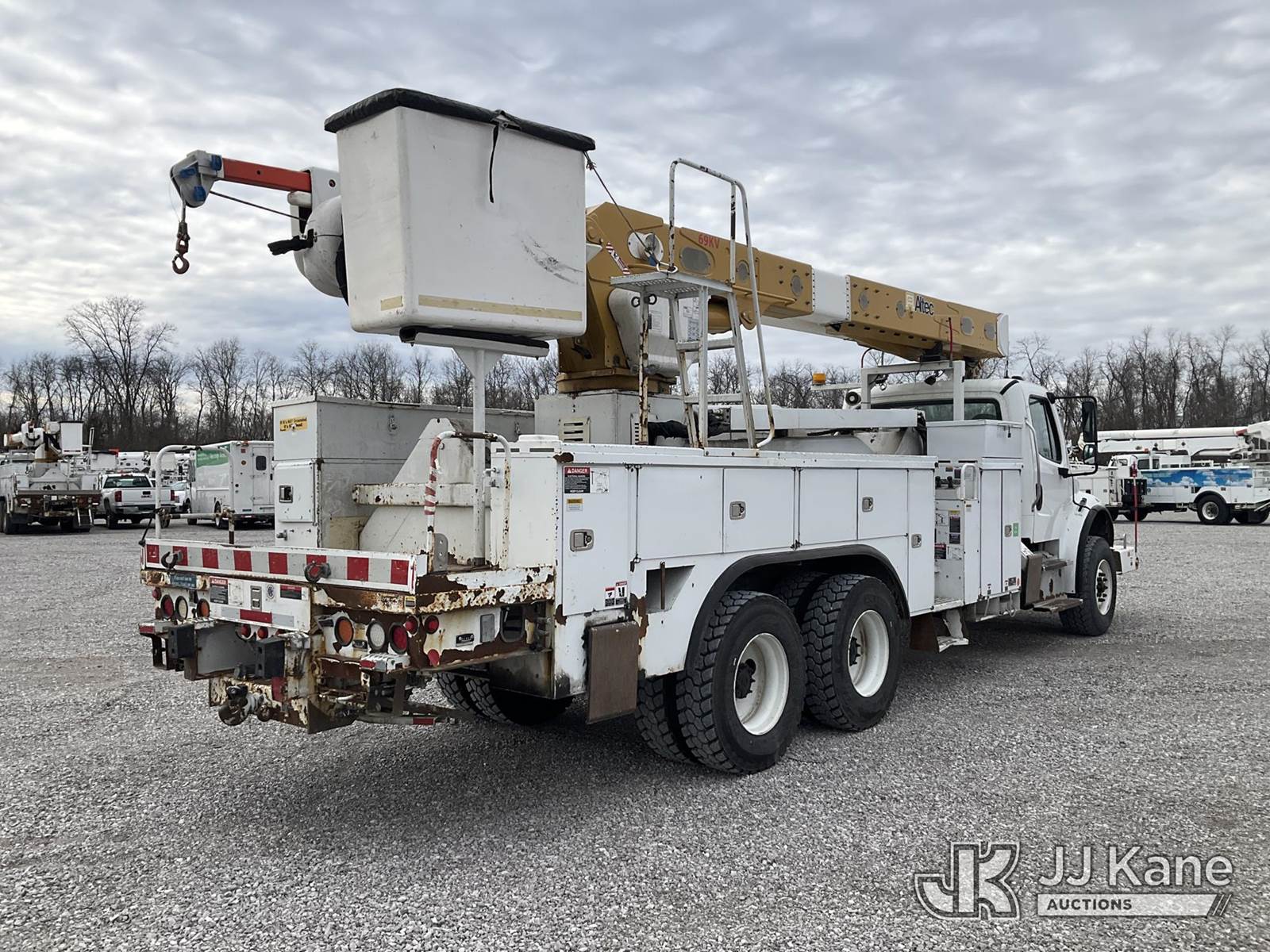 Altec AM55-E68, 73 ft, Over-Center Material Handling Elevator Bucket Truck s/n 0214DM4969, with two-man bucket & 4 hyd outriggers, mounted behind cab on 2015 Freightliner M2 106 Utility Truck, 8.9L L6 diesel, Auto, 6X4, A/C, with front winch, (87,369 miles) (Duke Unit) (Runs & Moves) (Upper Condition Unknown, Outriggers Will Not Operate, Check Engine Light On, Check Transmission Light On, Rust Damage ) This is a Titled Item NOTE: This unit is being sold AS IS/WHERE IS via Timed Auction and is located in Verona, KY. Inspection & preview days for this unit are the 2 business days prior to the first day of items closing for this auction, item is located at 2841 Verona-Mudlick Rd Ste B Verona, KY 41092 and hours of operations are 8a-4p. For pre-sale questions, please contact Office Staff @ (502) 612-5080. Auctioneer Michael Whitebread / License # 256617. (Manuals provided in cab) (Buyer is responsible for removal. Assistance by consignor or JJ Kane Auctions is not assured.)