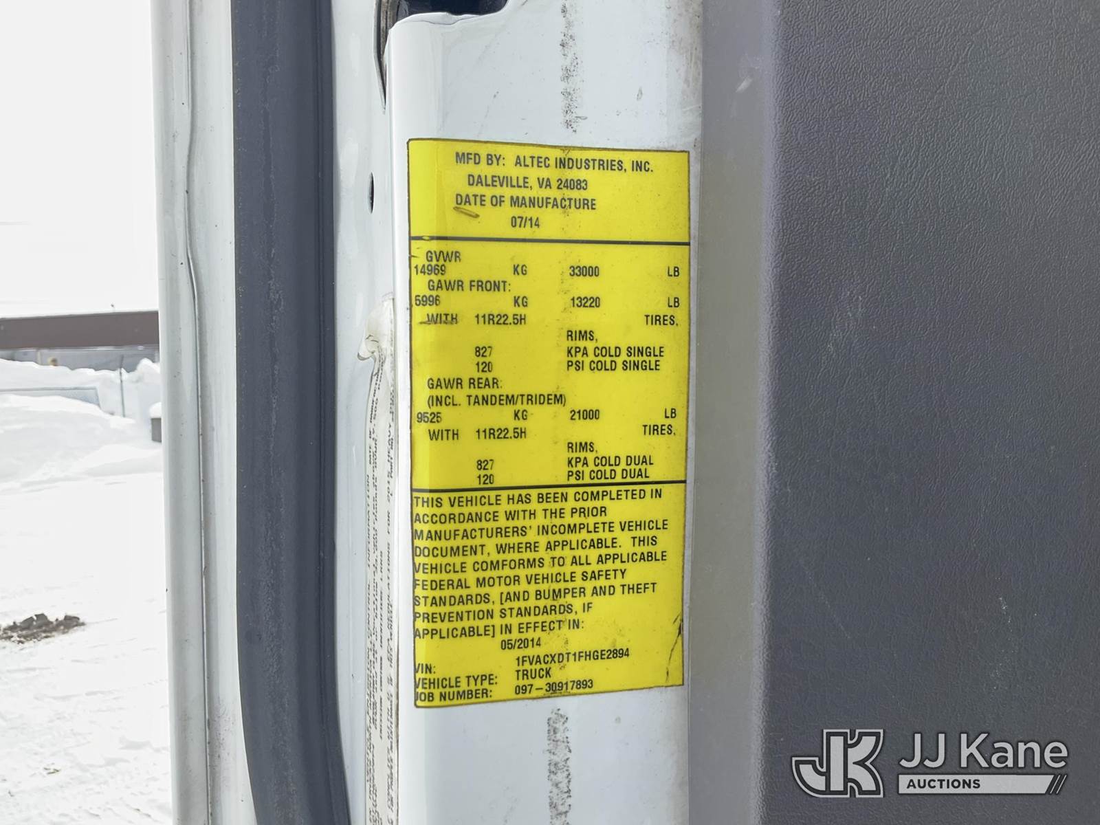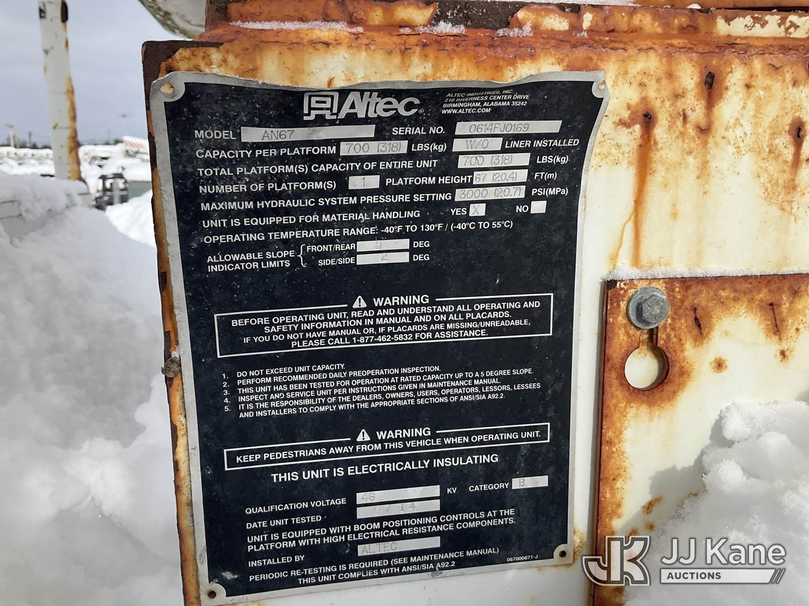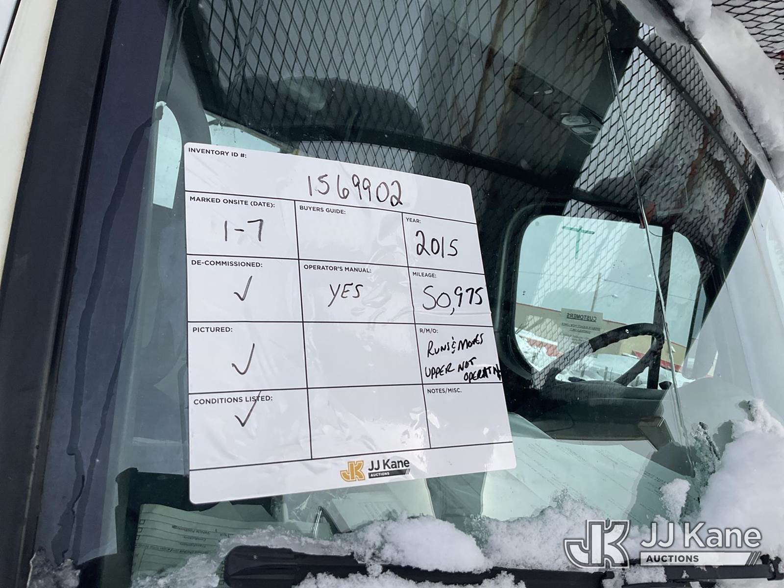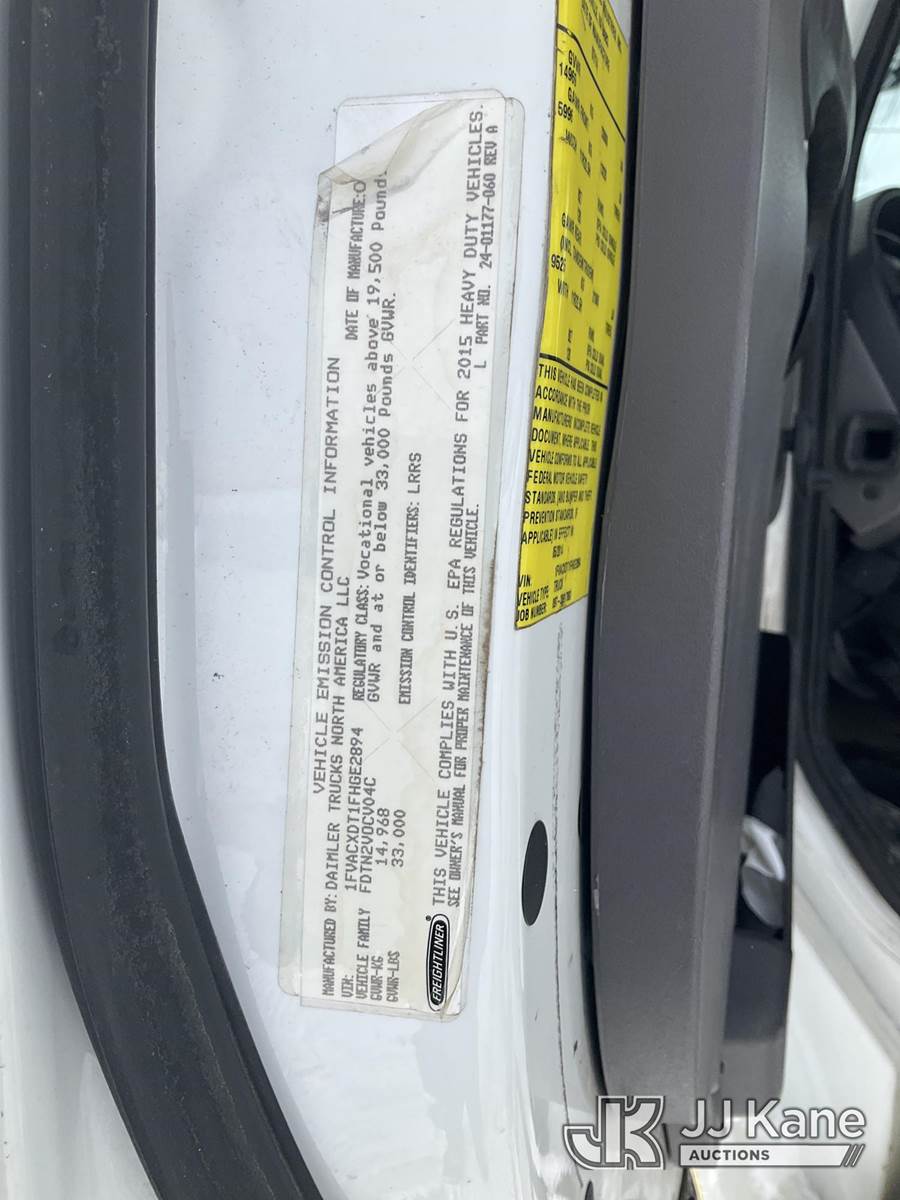 Altec AN67, 72 ft, Material Handling Bucket Truck s/n 0614FJ0169, with Two-Man Bucket & 4 Outriggers, rear mounted on 2015 Freightliner M2 106 Utility Truck, 6.7L diesel, Auto, A/C, (50,975 miles) (Jump to Start, Runs, Moves & Upper Not Operating, Electrical Issue, Check Engine Light On ) (Reads 8,270 hours) This is a Titled Item NOTE: This unit is being sold AS IS/WHERE IS via Timed Auction and is located in Rome, NY. Inspection & preview days for this unit are the 2 business days prior to the first day of items closing for this auction, item is located at 5835 Success Dr Rome, NY 13440 and hours of operations are 8a-4p. For pre-sale questions, please contact Ryan Jackson @ (315) 749-3790 or Ryan.Jackson@jjkane.com. (Manuals provided in cab) (Buyer is responsible for removal. Assistance by consignor or JJ Kane Auctions is not assured.)