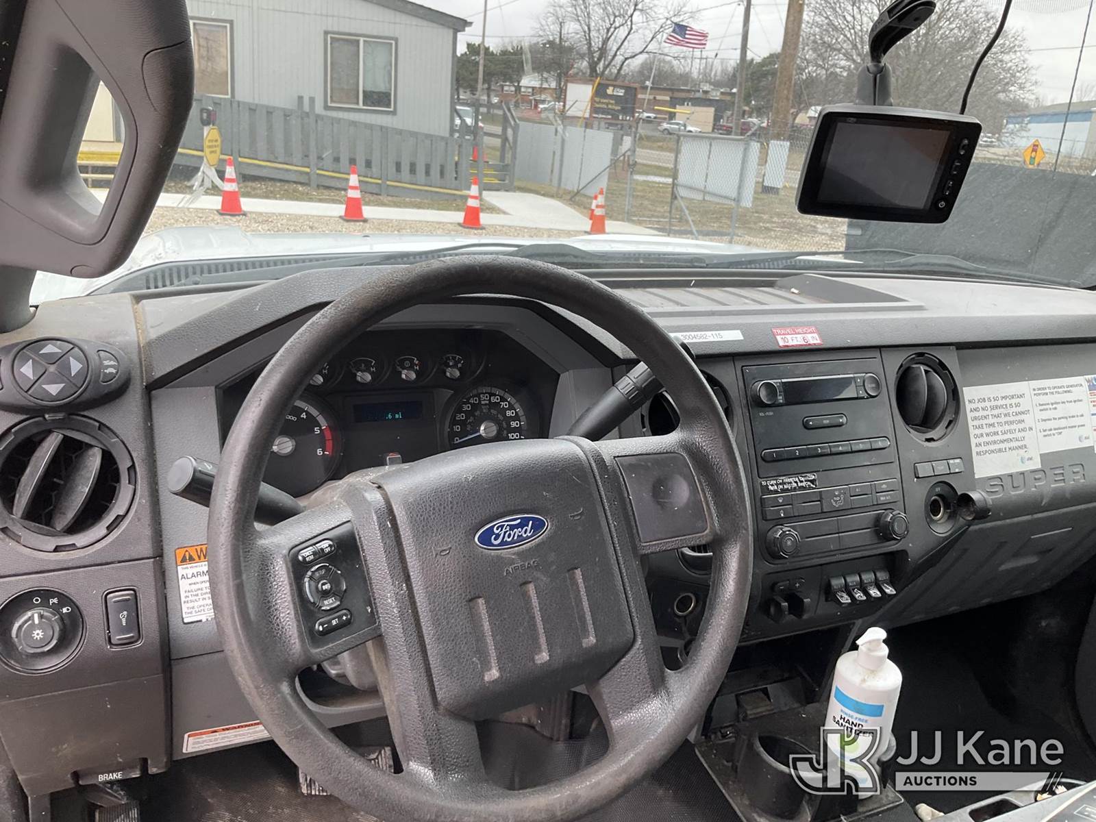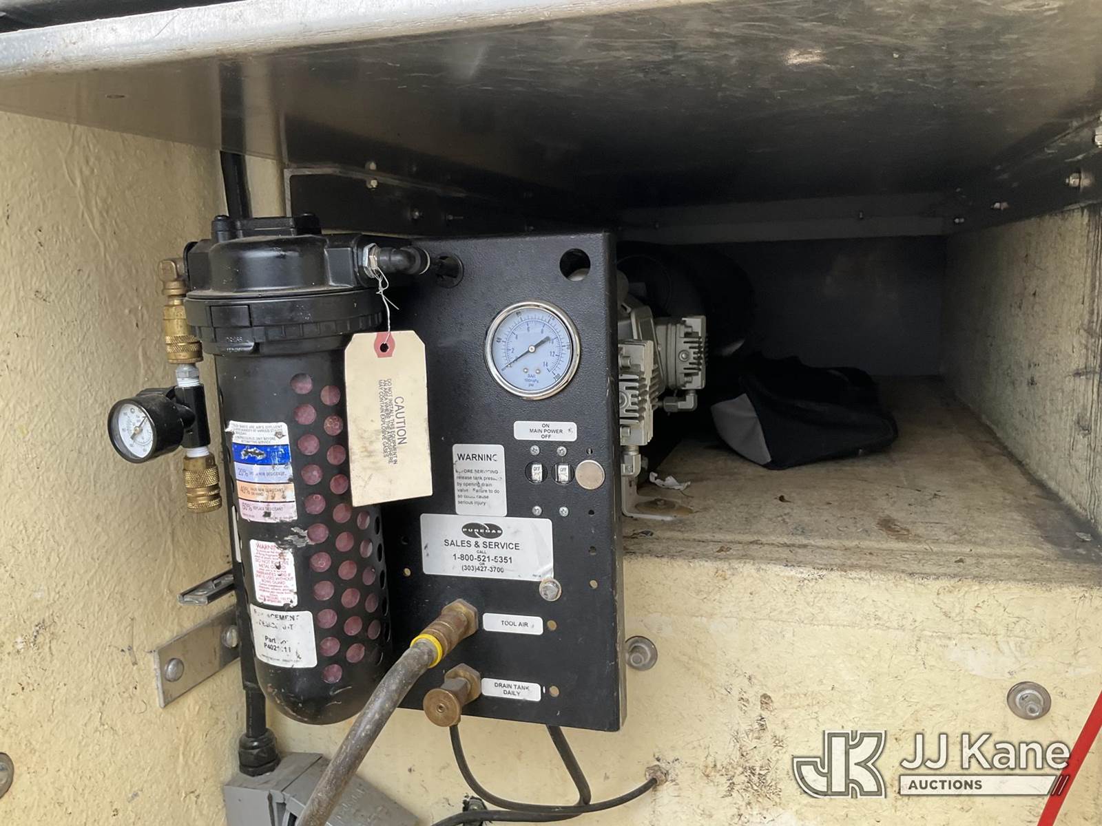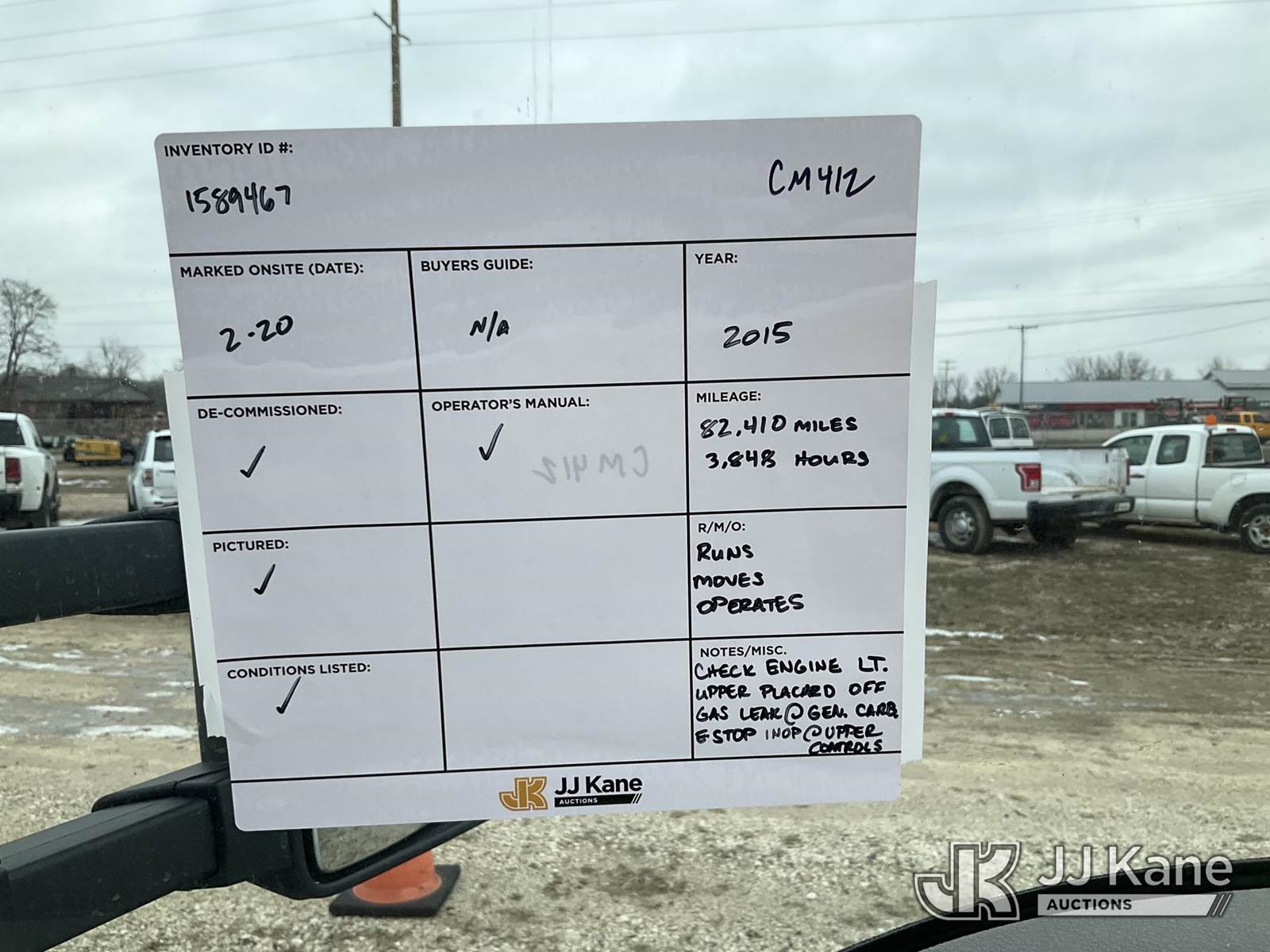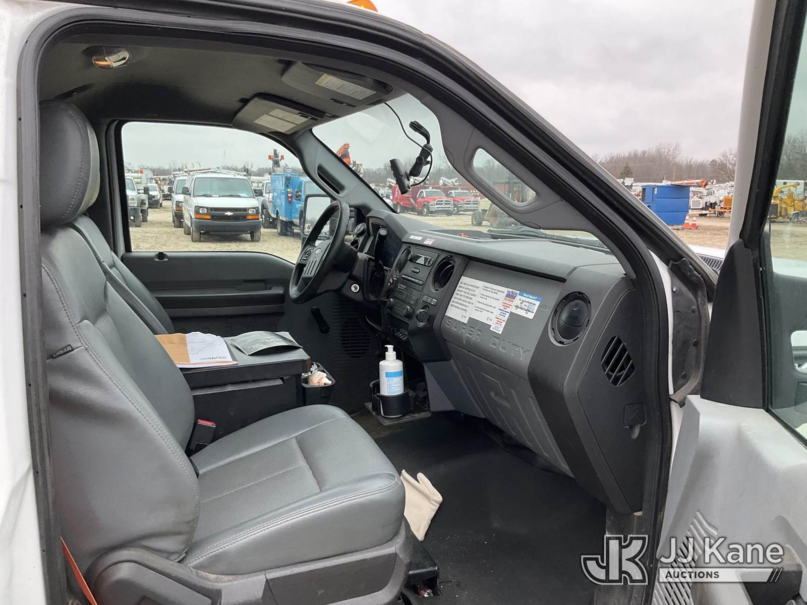 Altec AT200-A, 35 ft, Telescopic Non-Insulated Bucket Truck s/n 0415BV21861, with single man bucket, mounted behind cab on 2015 Ford F-450 SD Regular Cab DRW 2WD Service Truck, 6.8L V10 SOHC 30V RWD, GAS, A/C, with Fiberglass Service Body, Onan 7kW Generator, Nitrogen Bottle Replacement Module Compressor, Inverter, Go-Light, (82,410 miles) (Runs, Moves & Operates) (Engine Light, Upper Placard Removed - In Cab, Gas Leak at Generator Carb, Emergency Stop Broken at Upper Controls) This is a Titled Item NOTE: This unit is being sold AS IS/WHERE IS via Timed Auction and is located in Charlotte, MI. Inspection & preview days for this unit are the 2 business days prior to the first day of items closing for this auction, item is located at 750 Island Hwy Charlotte, MI 48813 and hours of operations are 8a-4p. For pre-sale questions, please contact Corey Cook at (517) 983-0796 or corey.cook@jjkane.com (Manuals provided in cab) (Buyer is responsible for removal. Assistance by consignor or JJ Kane Auctions is not assured.)