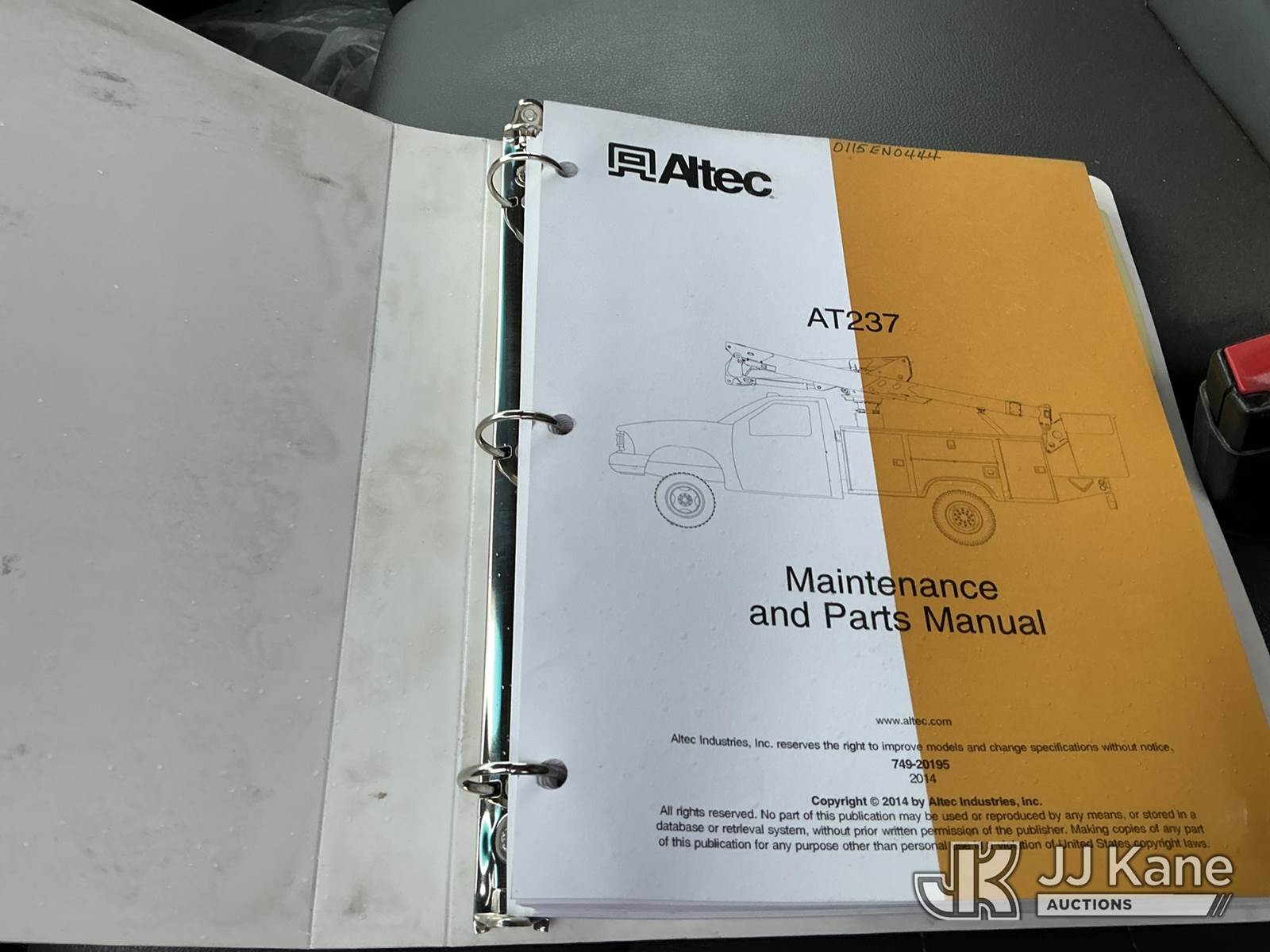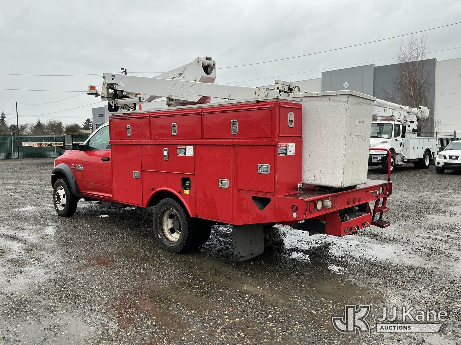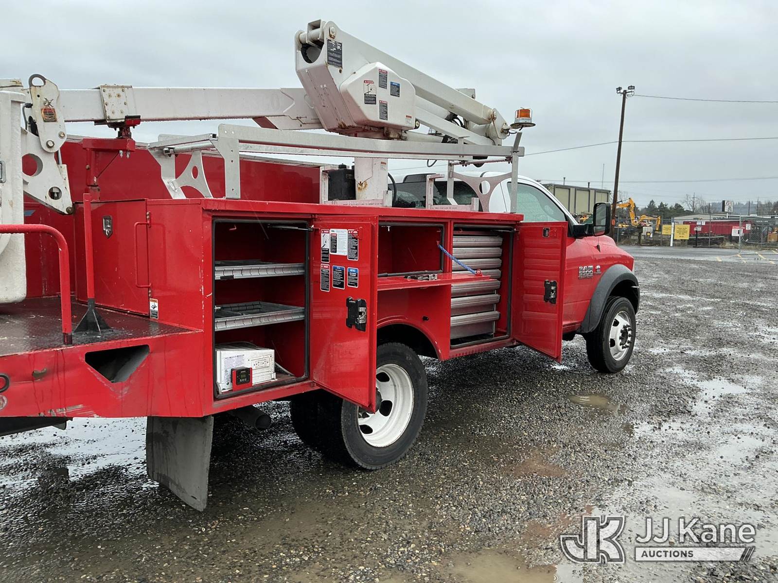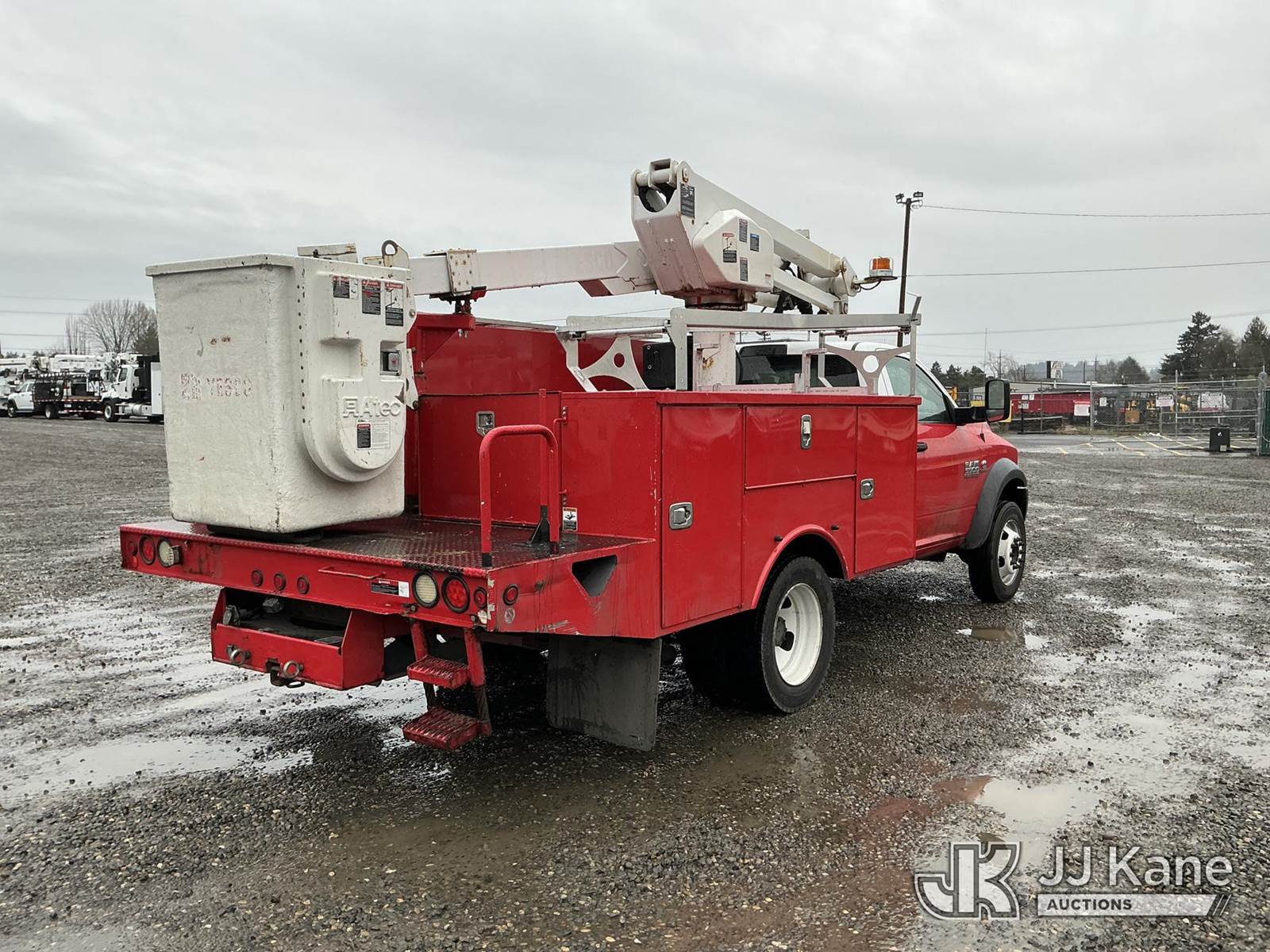 Altec AT237, 42 ft, Articulating & Telescopic Non-Insulated Bucket Truck s/n 0115EN0444, with single man bucket, mounted behind cab on 2015 RAM 5500 Service Truck, 6.7L diesel, RWD, Auto, A/C, (194,611 miles) (Runs & Moves) (Could Not Get PTO to Engage - Upper Unit Condition Unknown, Check Engine Light On) (Reads 4,261 hours) This is a Titled Item NOTE: This unit is being sold AS IS/WHERE IS via Timed Auction and is located in Portland, OR. Inspection & preview days for this unit are the 2 business days prior to the first day of items closing for this auction, item is located at 13817 NE Sandy Blvd Portland, OR 97230 and hours of operations are 8a-4p. For pre-sale questions, please contact Tony Tully @ (503)-307-1348. Dealer License Number DL1391. (Manuals provided in cab) (Buyer is responsible for removal. Assistance by consignor or JJ Kane Auctions is not assured.)