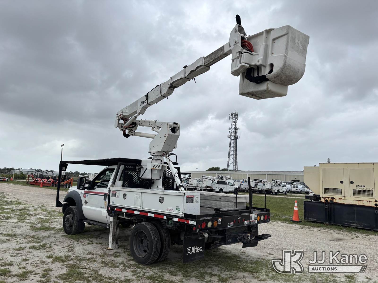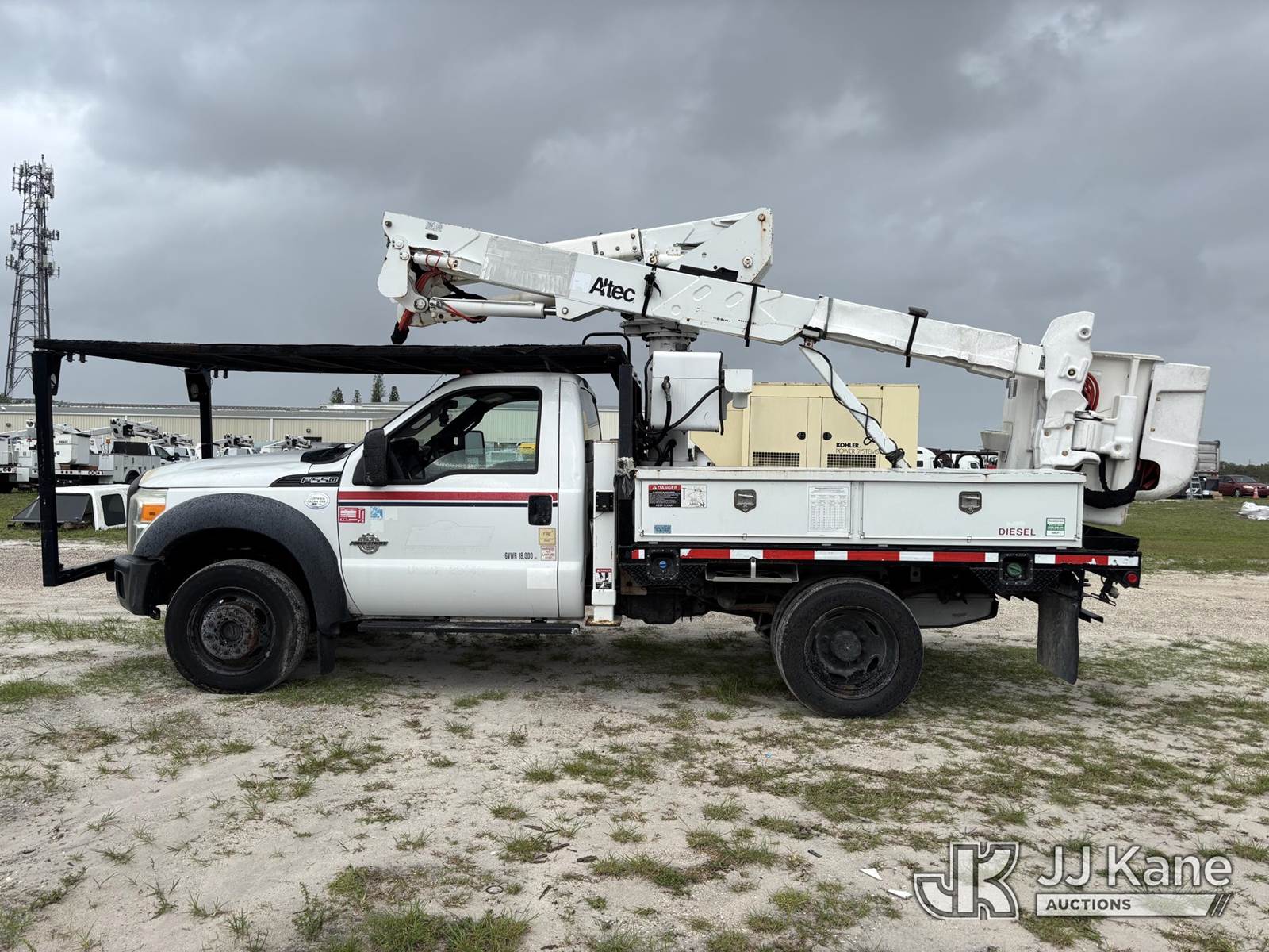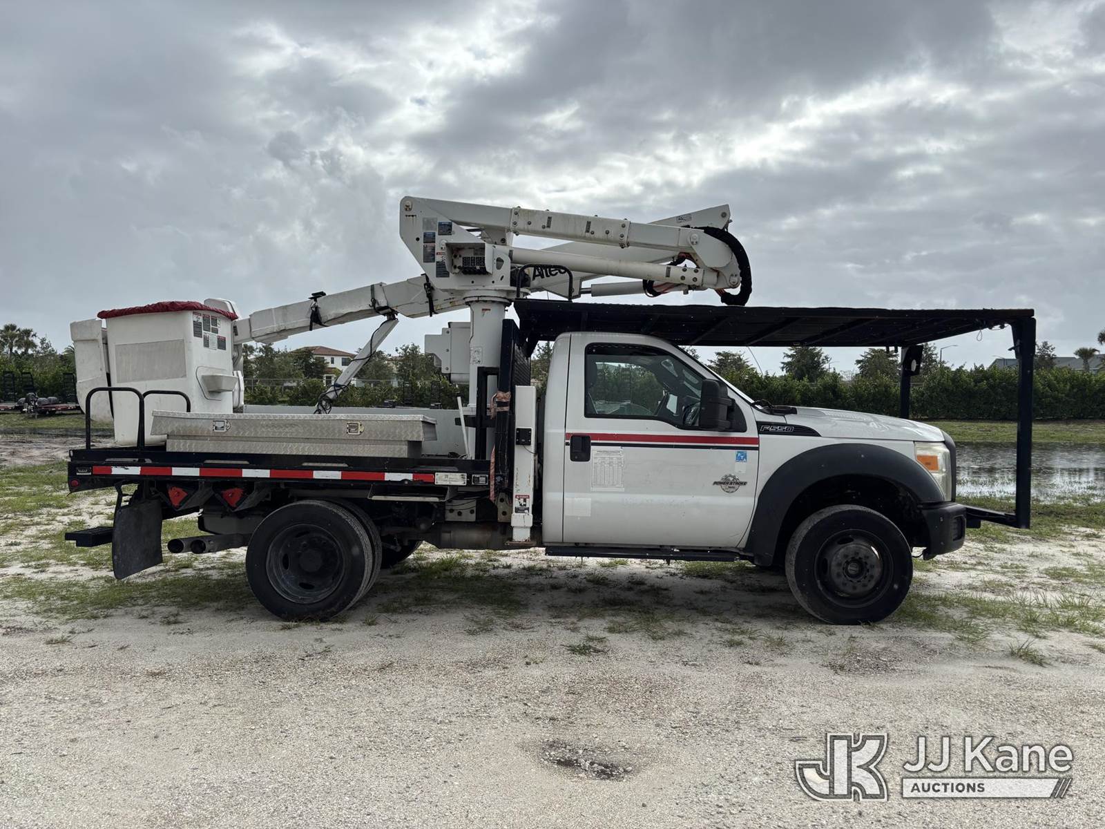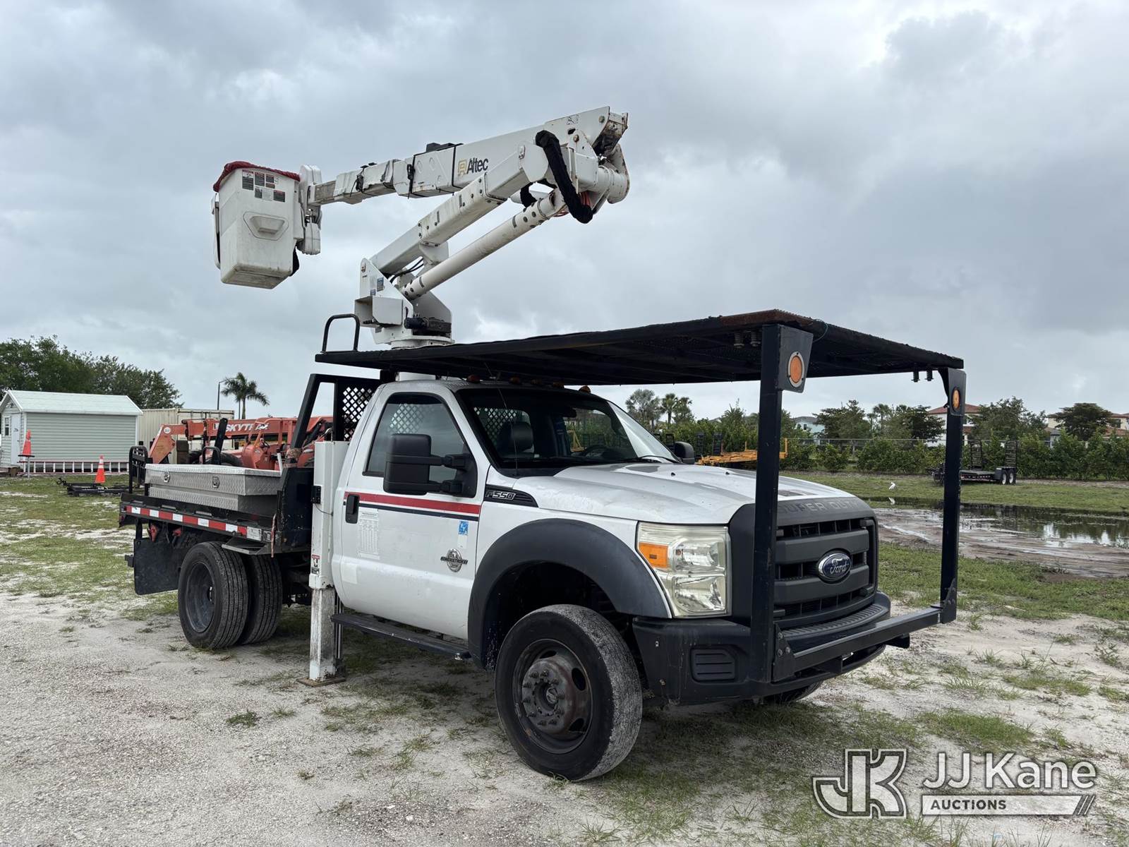 Altec AT37G, 42 ft, Articulating & Telescopic Bucket s/n 0515DE17840, with single-man bucket, mounted behind cab on 2015 Ford F550 4x4 Flatbed Truck, 6.7L diesel, Auto, A/C, (119,946 miles) (Runs, Moves, & Operates With Jump) (Check Engine Light On, Engine Noise, Body & Paint Damage) (FL Residents Purchasing Titled Items – tax, title & registration fees will be collected at the maximum rate of $400.00 under 25,999 and $800.00 for Over 26,000 and $250.00 trailers – Proof of insurance is mandatory; Out of State Residents Purchasing Title Items – tax will be collected based upon your state rate.) This is a Titled Item NOTE: This unit is being sold AS IS/WHERE IS via Timed Auction and is located in Westlake, FL. Inspection & preview days for this unit are the 2 business days prior to the first day of items closing for this auction, item is located at 4003 Seminole Pratt Whitney Rd Westlake, FL 33470 and hours of operations are 8a-4p. For pre-sale questions, please contact: Matt Johnson @ (205) 847-9106. (Manuals provided in cab) (Buyer is responsible for removal. Assistance by consignor or JJ Kane Auctions is not assured.)