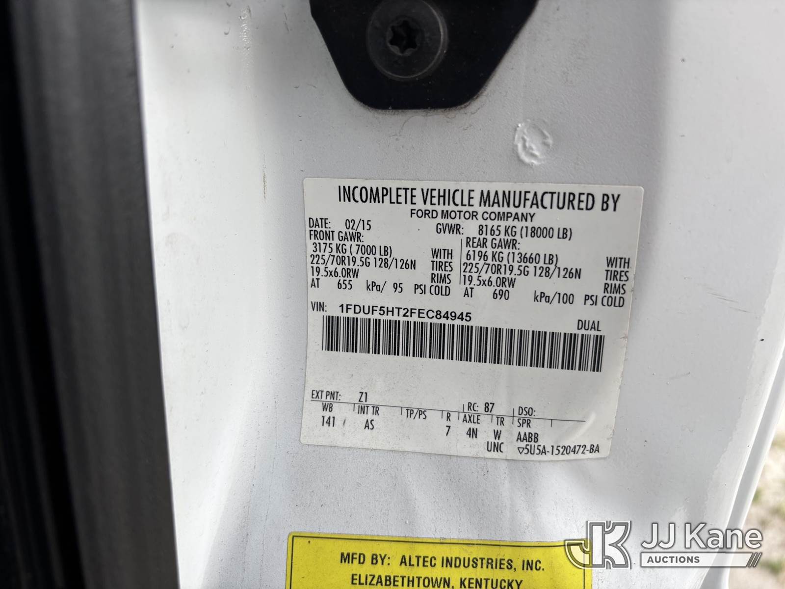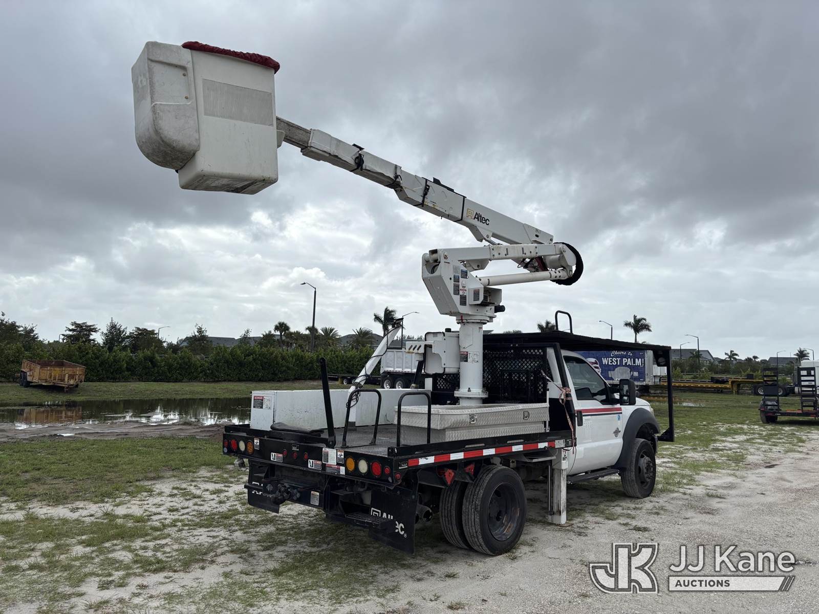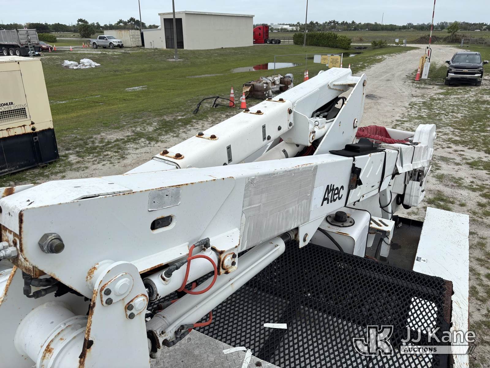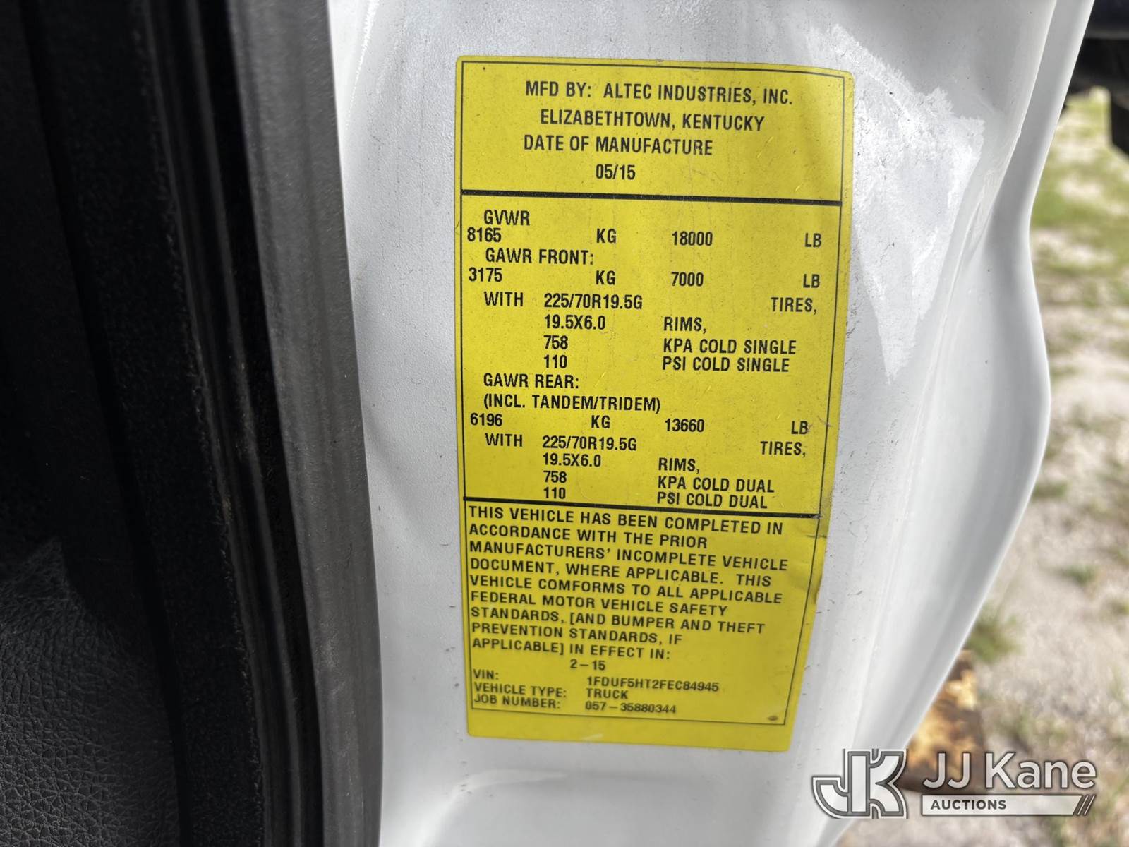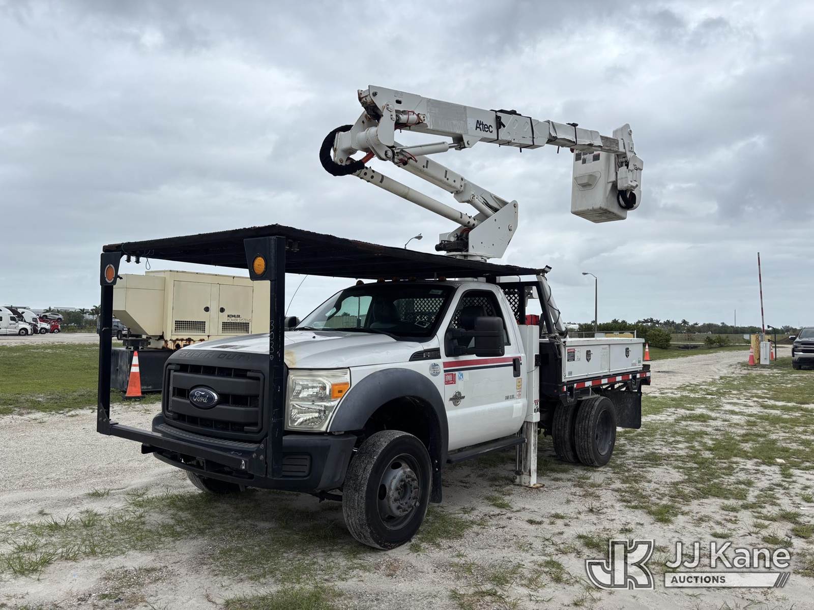 Altec AT37G, 42 ft, Articulating & Telescopic Bucket s/n 0515DE17840, with single-man bucket, mounted behind cab on 2015 Ford F550 4x4 Flatbed Truck, 6.7L diesel, Auto, A/C, (119,946 miles) (Runs, Moves, & Operates With Jump) (Check Engine Light On, Engine Noise, Body & Paint Damage) (FL Residents Purchasing Titled Items – tax, title & registration fees will be collected at the maximum rate of $400.00 under 25,999 and $800.00 for Over 26,000 and $250.00 trailers – Proof of insurance is mandatory; Out of State Residents Purchasing Title Items – tax will be collected based upon your state rate.) This is a Titled Item NOTE: This unit is being sold AS IS/WHERE IS via Timed Auction and is located in Westlake, FL. Inspection & preview days for this unit are the 2 business days prior to the first day of items closing for this auction, item is located at 4003 Seminole Pratt Whitney Rd Westlake, FL 33470 and hours of operations are 8a-4p. For pre-sale questions, please contact: Matt Johnson @ (205) 847-9106. (Manuals provided in cab) (Buyer is responsible for removal. Assistance by consignor or JJ Kane Auctions is not assured.)