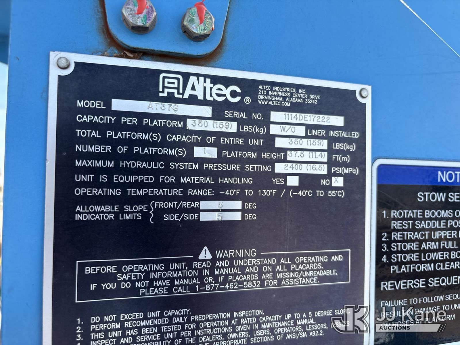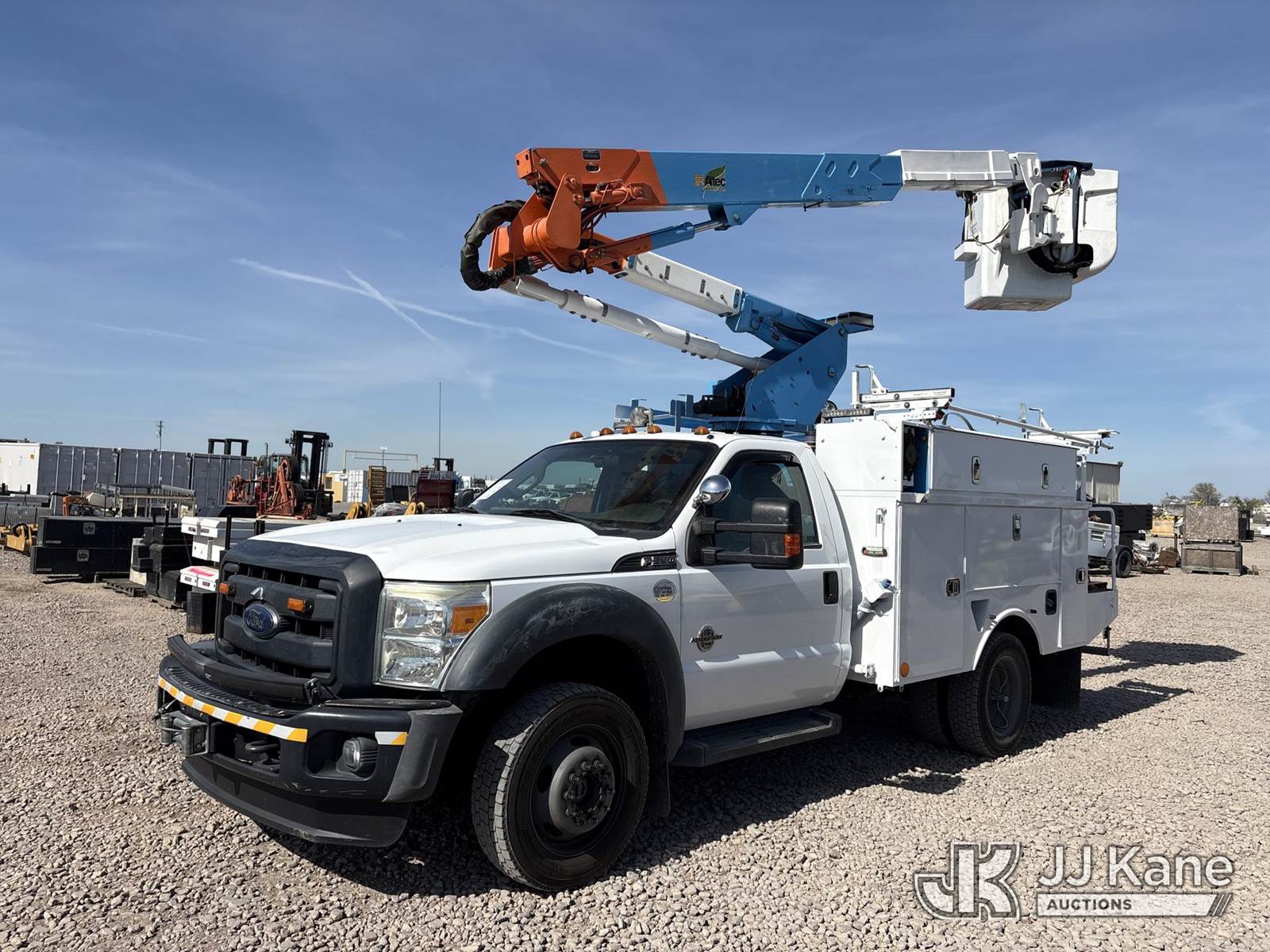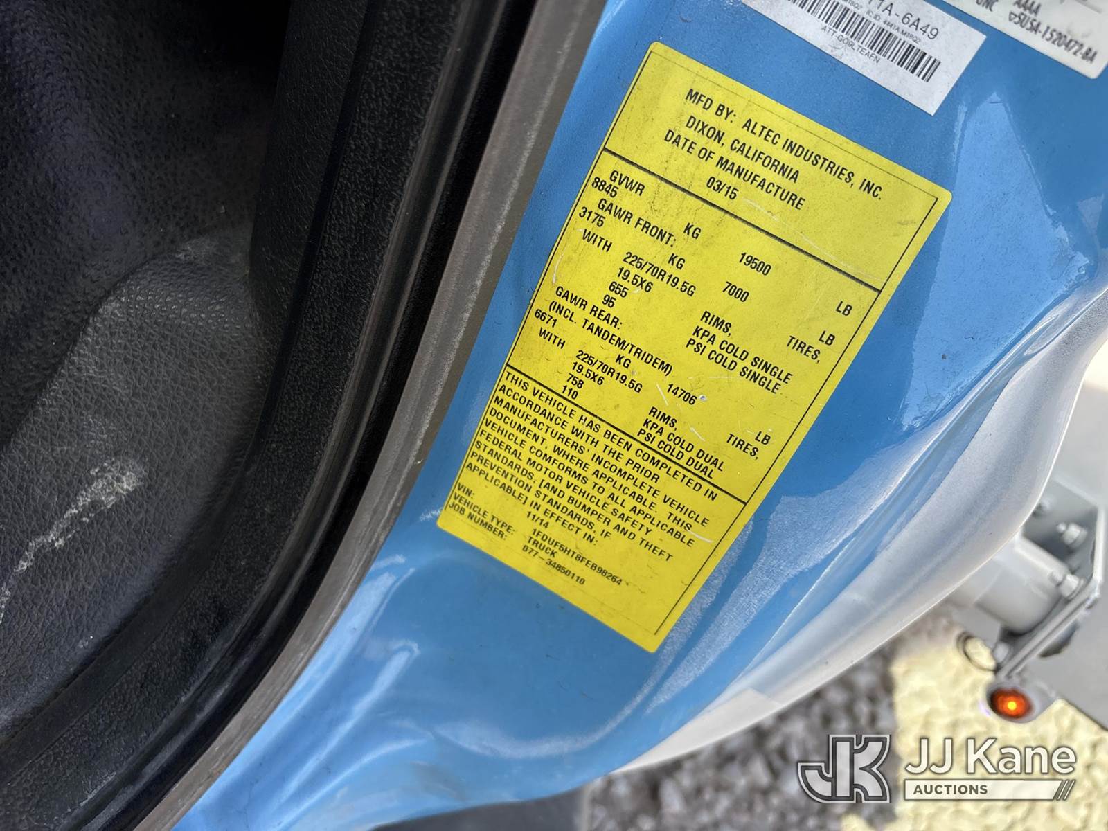 Altec AT37G, 42 ft, Articulating & Telescopic Bucket Truck s/n 1114DE17222, with single-man bucket, mounted behind cab on 2015 Ford F-550 Regular Cab DRW 4WD Service Truck, s/n 1FDUF5HT8FEB98264, 6.7L V8 OHV 16V DIESEL, Auto, A/C, (179,171 miles) (Runs, Moves & Upper Operates) (Reads 14,932 hours) May be subject to ARB Regulations This is a Titled Item NOTE: This unit is being sold AS IS/WHERE IS via Timed Auction and is located in Dixon, CA. Inspection & preview days for this unit are the 2 business days prior to the first day of items closing for this auction, item is located at 8668 Sparling Ln Dixon, CA 95620 and hours of operations are 8a-4p. For pre-sale questions, please contact JJ Kane Staff at (707) 678-8060 (dixon@jjkane.com). Dealer License Number 45696. (Missing manuals, See Auction Company for Manufacturers Information to obtain manuals) (Buyer is responsible for removal. Assistance by consignor or JJ Kane Auctions is not assured.)