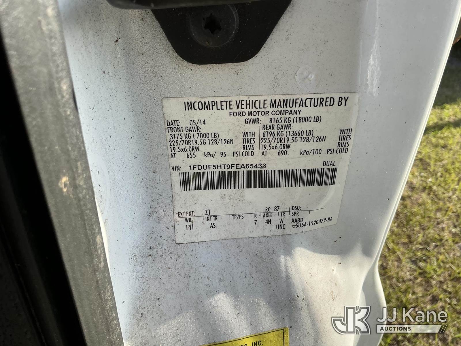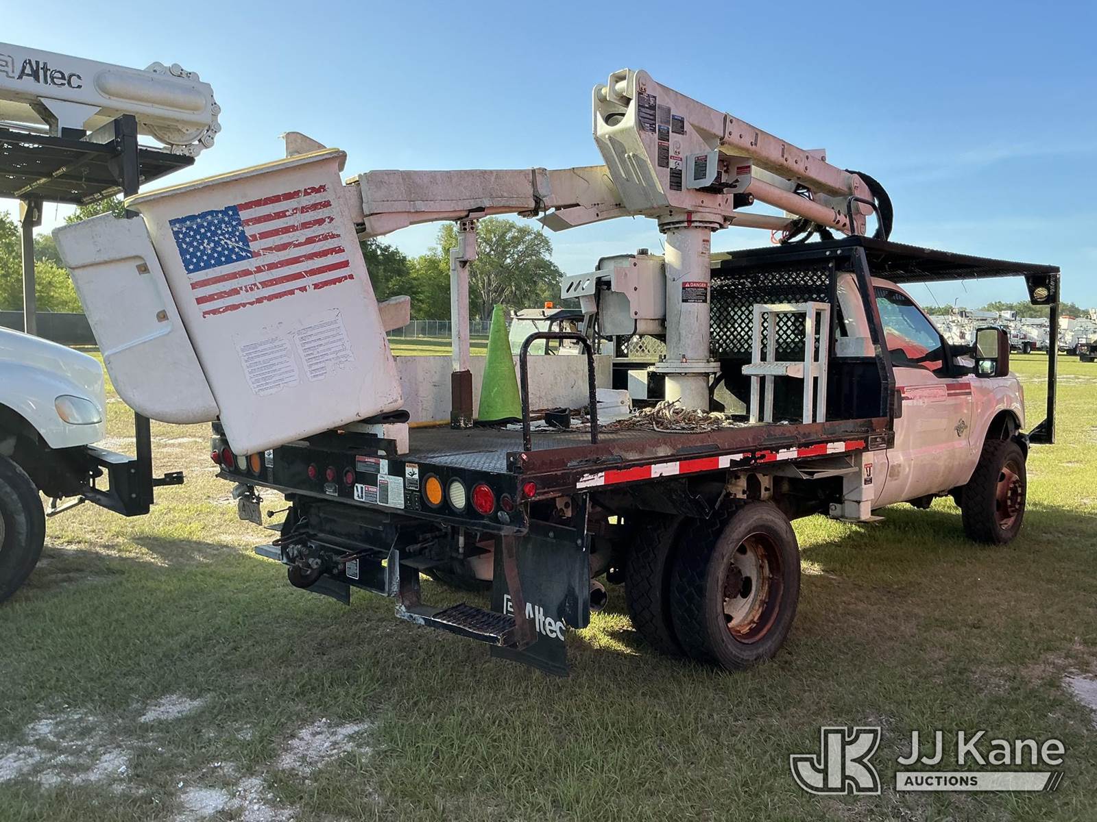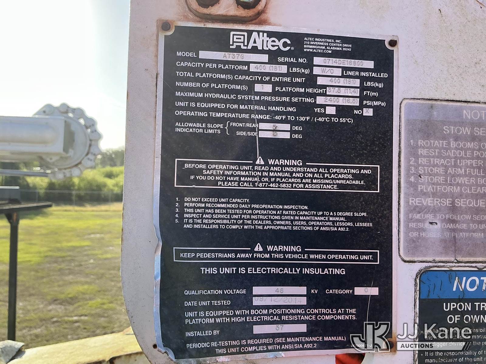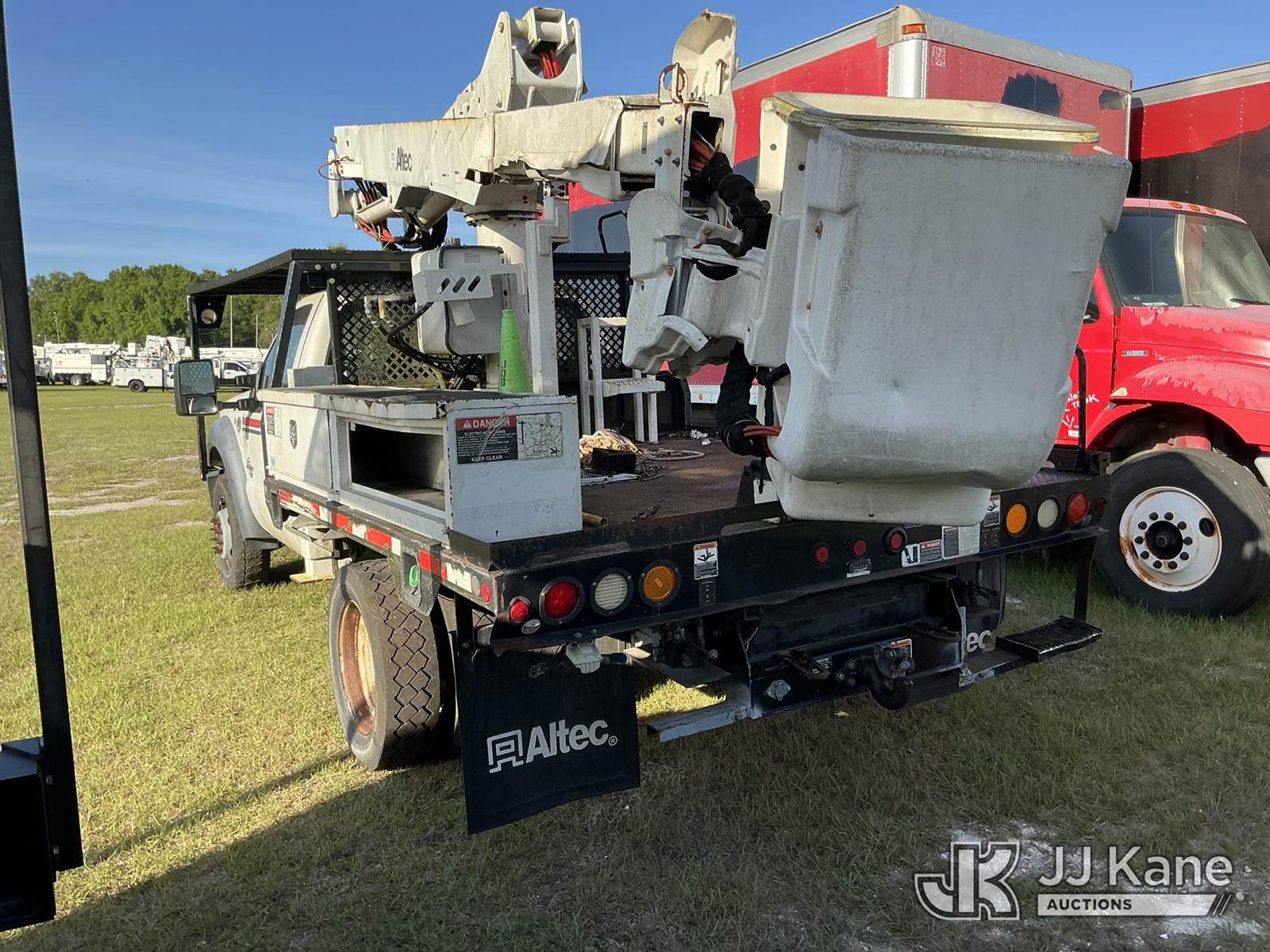 Altec AT37G, 42 ft, Articulating & Telescopic Bucket Truck s/n 0714DE16800, with single-man bucket, mounted behind cab on 2015 Ford F550 4x4 Flatbed/Service Truck, 6.7L diesel, Auto, A/C, (57,545 miles) (Not Running, Condition Unknown, Upper Condition Unknown) This is a Titled Item NOTE: This unit is being sold AS IS/WHERE IS via Timed Auction and is located in Thonotosassa, FL. Inspection & preview days for this unit are the 2 business days prior to the first day of items closing for this auction, item is located at 11720 N US 301 Thonotosassa, Fl 33592 and hours of operations are 8a-4p. For pre-sale questions, please contact Office Staff @ (813) 986-2485. (Manuals provided in cab) (Buyer is responsible for removal. Assistance by consignor or JJ Kane Auctions is not assured.)