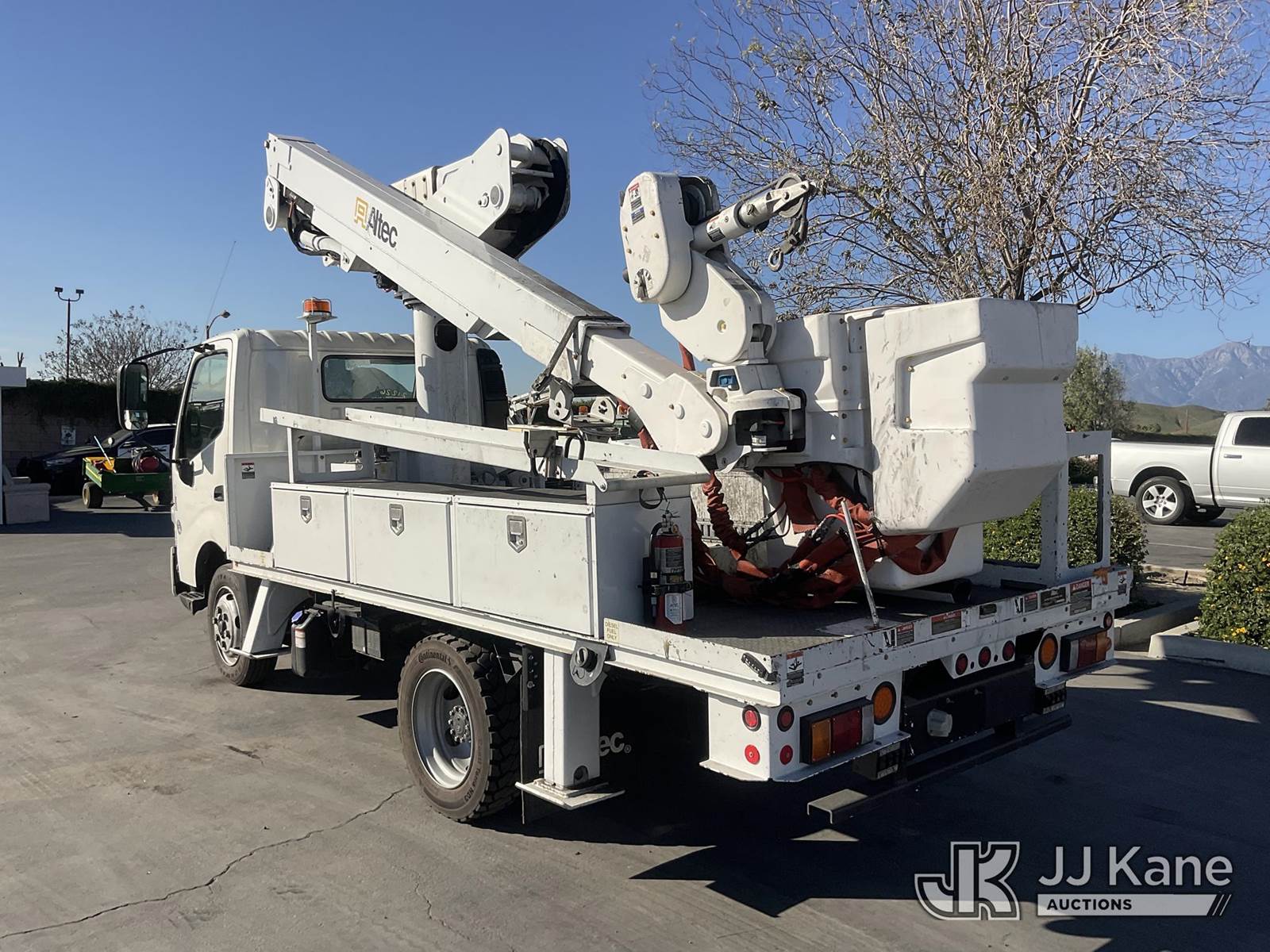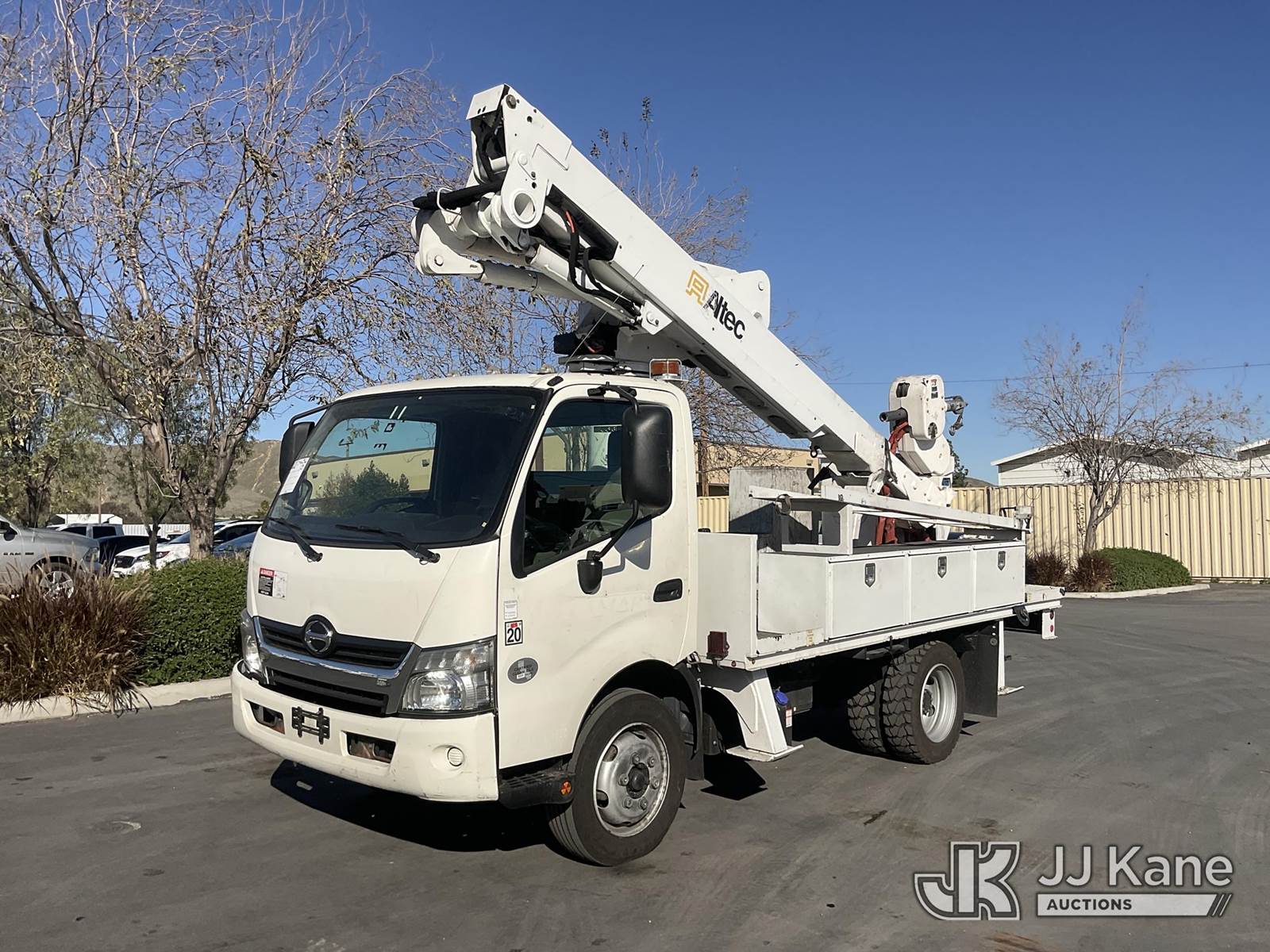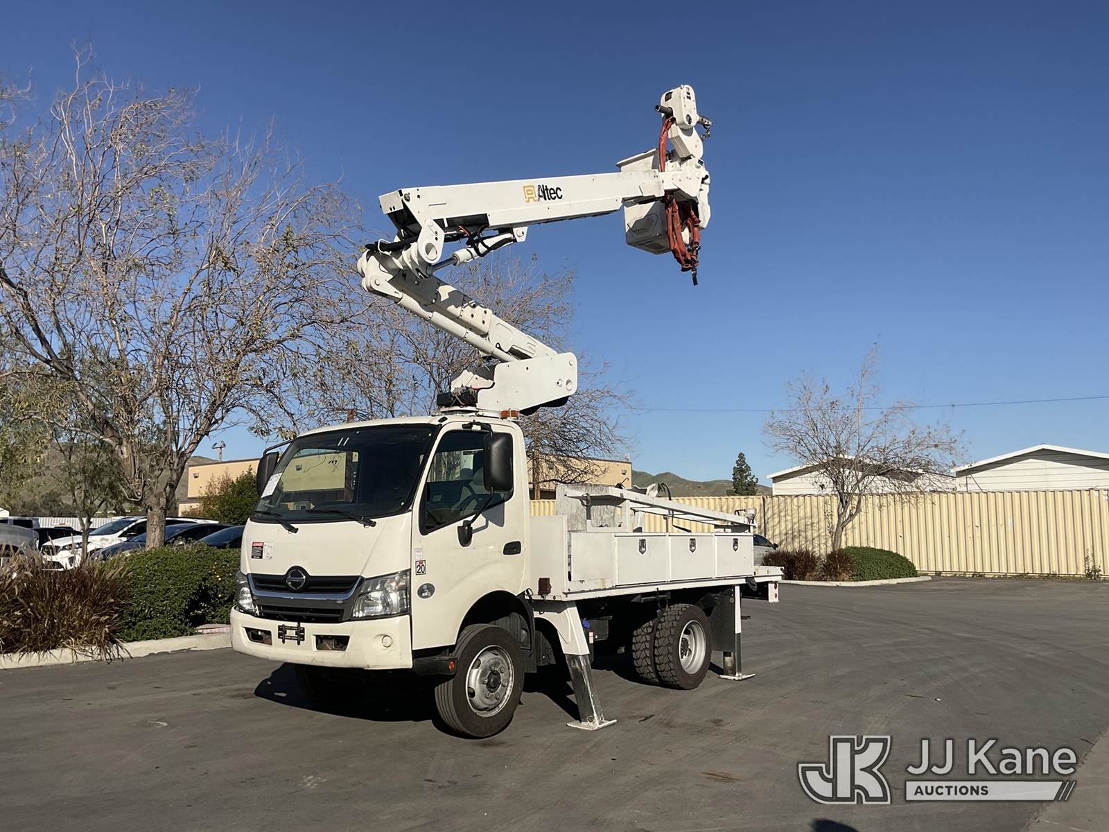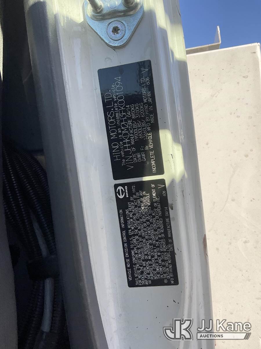 Altec AT40-M, 45 ft, Articulating & Telescopic Material Handling Bucket Truck s/n 0714CZ01700, with Single-Man Bucket, 4 Hydraulic Outriggers, mounted behind cab on 2015 Hino XJC700 Flatbed/Service Truck, s/n JHHKDM2H3FK001094, 5.0L L4 DIESEL Auto, A/C, (128,951 miles) (Runs, Moves & Upper Operates) May be subject to ARB Regulations This is a Titled Item NOTE: This unit is being sold AS IS/WHERE IS via Timed Auction and is located in Jurupa Valley, CA. Inspection & preview days for this unit are the 2 business days prior to the first day of items closing for this auction, item is located at 4510 Muth Way Jurupa Valley, CA 92509 and hours of operations are 8a-4p. For pre-sale questions, please contact please contact Office Staff @ (310) 353-7140. Dealer License Number 45696. (Manuals provided in cab) (Buyer is responsible for removal. Assistance by consignor or JJ Kane Auctions is not assured.)
