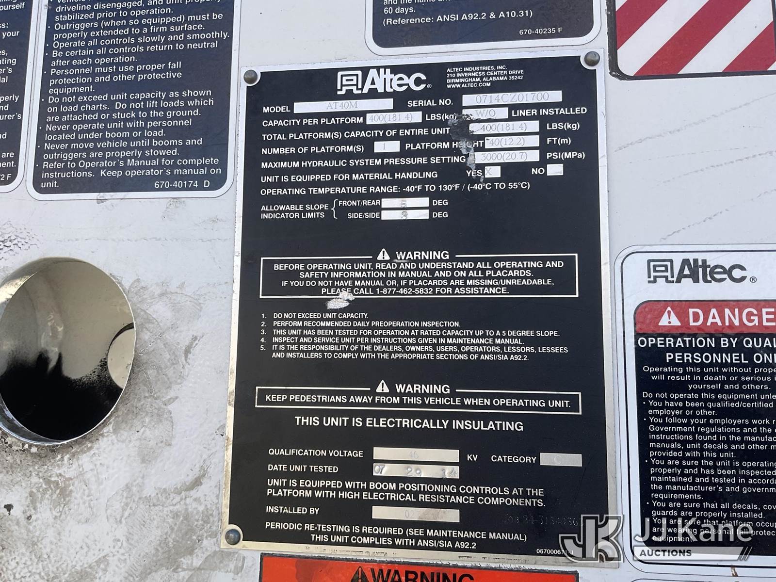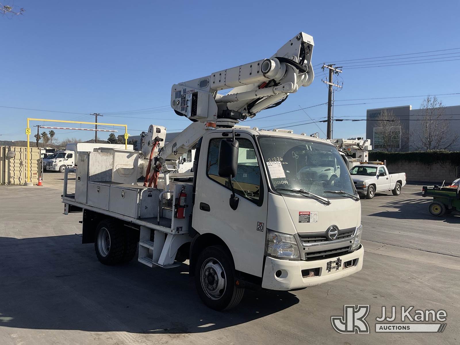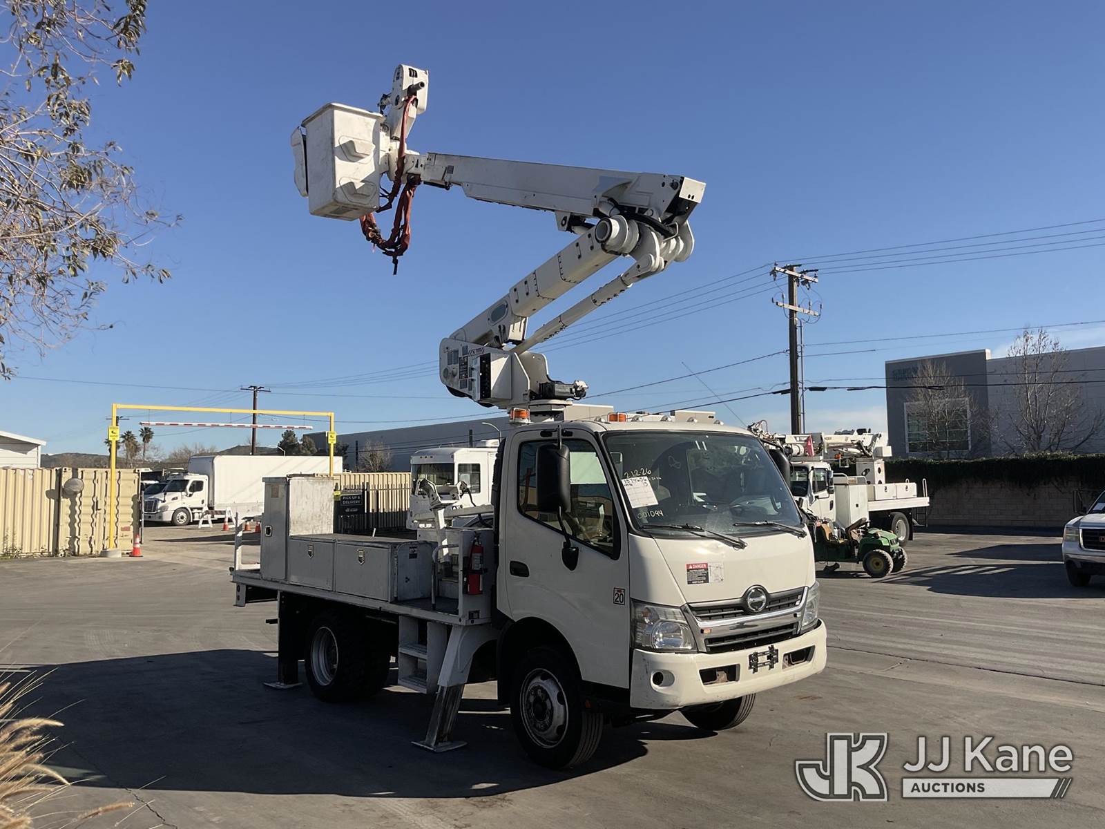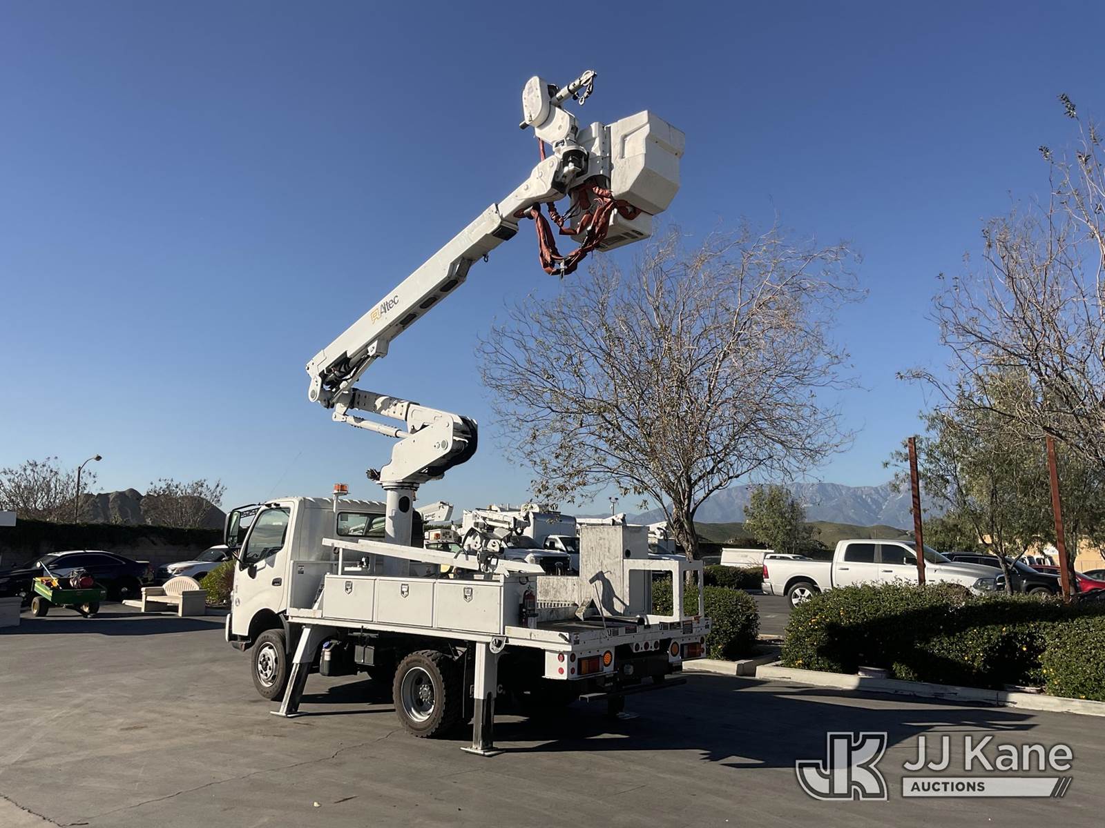 Altec AT40-M, 45 ft, Articulating & Telescopic Material Handling Bucket Truck s/n 0714CZ01700, with Single-Man Bucket, 4 Hydraulic Outriggers, mounted behind cab on 2015 Hino XJC700 Flatbed/Service Truck, s/n JHHKDM2H3FK001094, 5.0L L4 DIESEL Auto, A/C, (128,951 miles) (Runs, Moves & Upper Operates) May be subject to ARB Regulations This is a Titled Item NOTE: This unit is being sold AS IS/WHERE IS via Timed Auction and is located in Jurupa Valley, CA. Inspection & preview days for this unit are the 2 business days prior to the first day of items closing for this auction, item is located at 4510 Muth Way Jurupa Valley, CA 92509 and hours of operations are 8a-4p. For pre-sale questions, please contact please contact Office Staff @ (310) 353-7140. Dealer License Number 45696. (Manuals provided in cab) (Buyer is responsible for removal. Assistance by consignor or JJ Kane Auctions is not assured.)