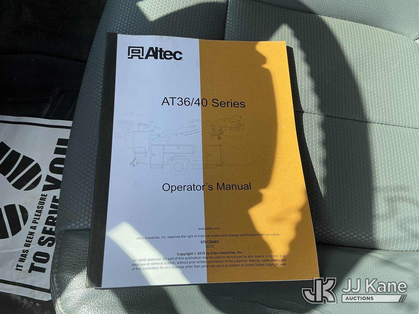 Altec AT40-MH, 45 ft, Articulating & Telescopic Material Handling Bucket Truck s/n 0315CZ01943, with single-man bucket, mounted behind cab on 2015 Ford F550 4x4 Service Truck, 6.7L diesel, Auto, A/C, (175,853 miles) (Duke Unit) (Runs, Moves & Upper Operates) This is a Titled Item NOTE: This unit is being sold AS IS/WHERE IS via Timed Auction and is located in China Grove, NC. Inspection & preview days for this unit are the 2 business days prior to the first day of items closing for this auction, item is located at 820 E NC Hwy 152 China Grove, NC 28023 and hours of operations are 8a-4p. For pre-sale questions, please contact Office Staff @ (704) 674-1113. (Manuals provided in cab) (Buyer is responsible for removal. Assistance by consignor or JJ Kane Auctions is not assured.)