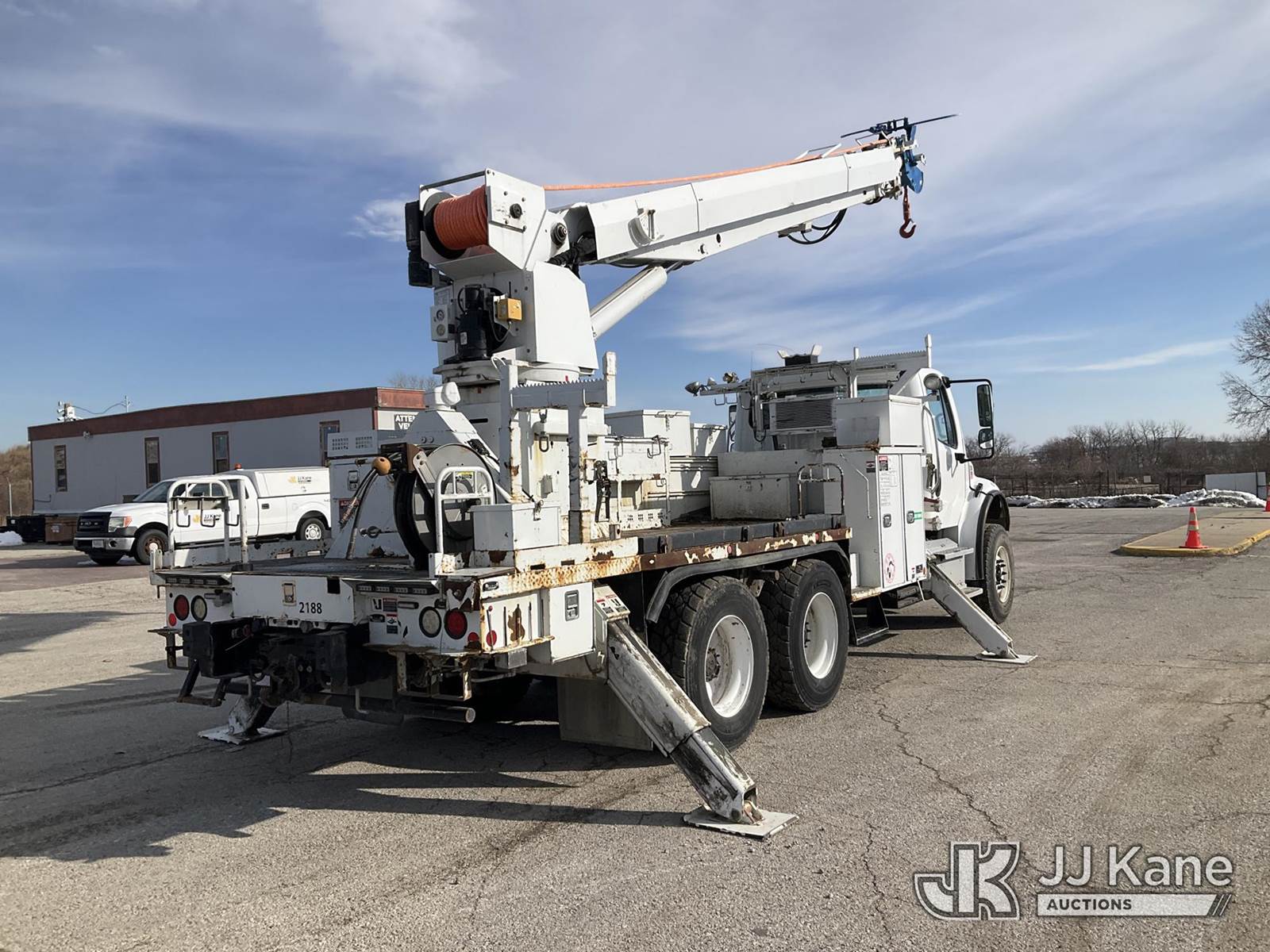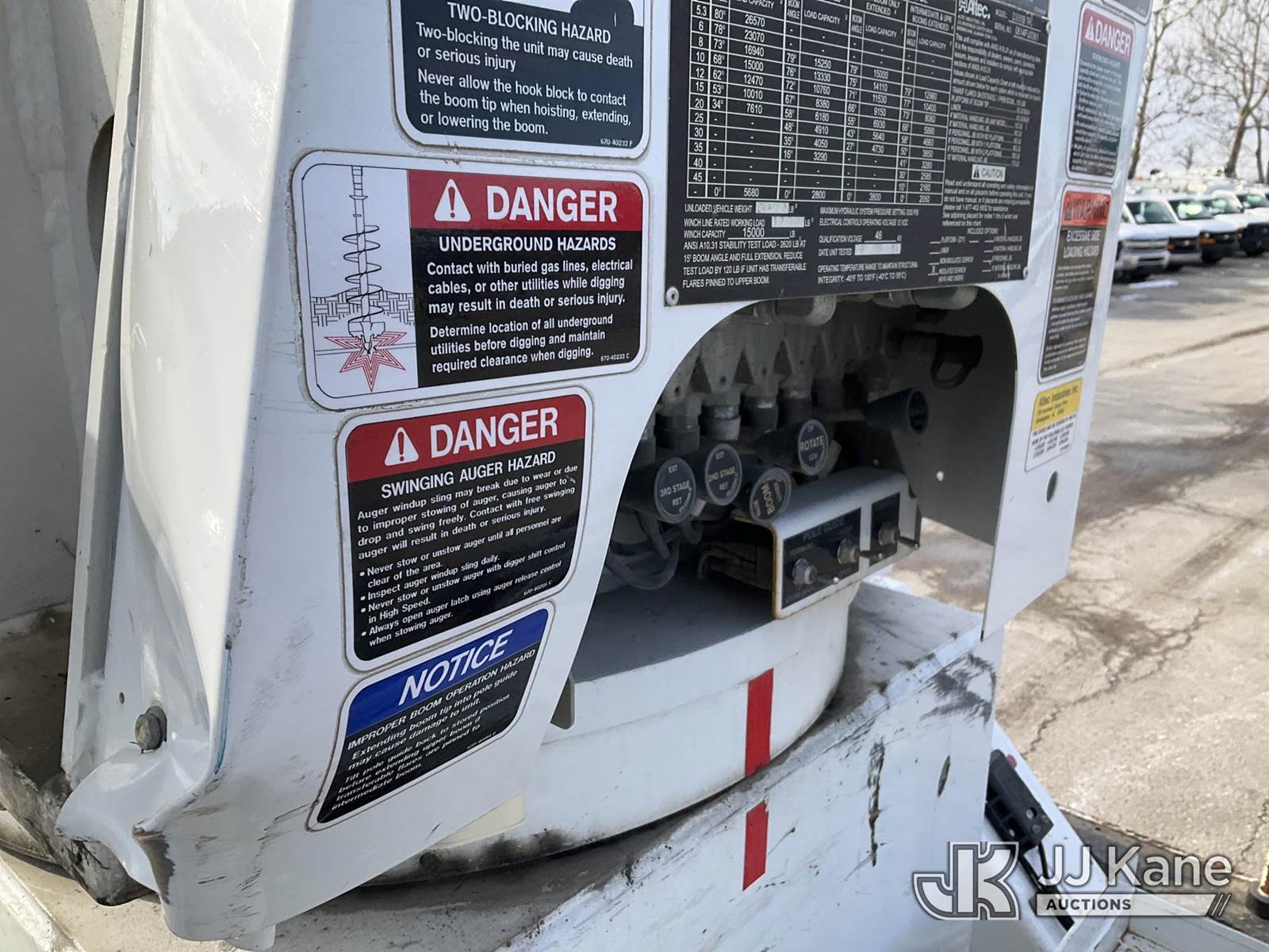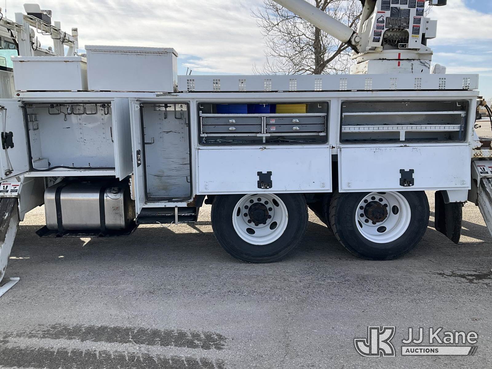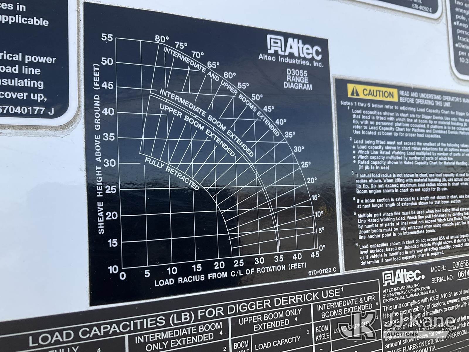 Altec D3055B-TR, 26,570 Lb Digger Derrick s/n 0614FU0361, with 55ft sheave height, 2spd digger, pole guides, heel winch, remote, rear mounted on 2015 Freightliner M2 106 T/A Flatbed/Utility Truck, 8.9L diesel, Auto, 6X4, A/C, (76,923 miles) (Runs, Moves, & Upper Operates) (Rust Damage) (Reads 6,402 hours) This is a Titled Item NOTE: This unit is being sold AS IS/WHERE IS via Timed Auction and is located in Kansas City, MO. Inspection & preview days for this unit are the 2 business days prior to the first day of items closing for this auction, item is located at 962 Tel Aviv Ave Kansas City, MO 64153 and hours of operations are 8a-4p. For pre-sale questions, please contact Ricky McPherson @ (816) 610-2250. (Manuals provided in cab) (Buyer is responsible for removal. Assistance by consignor or JJ Kane Auctions is not assured.)