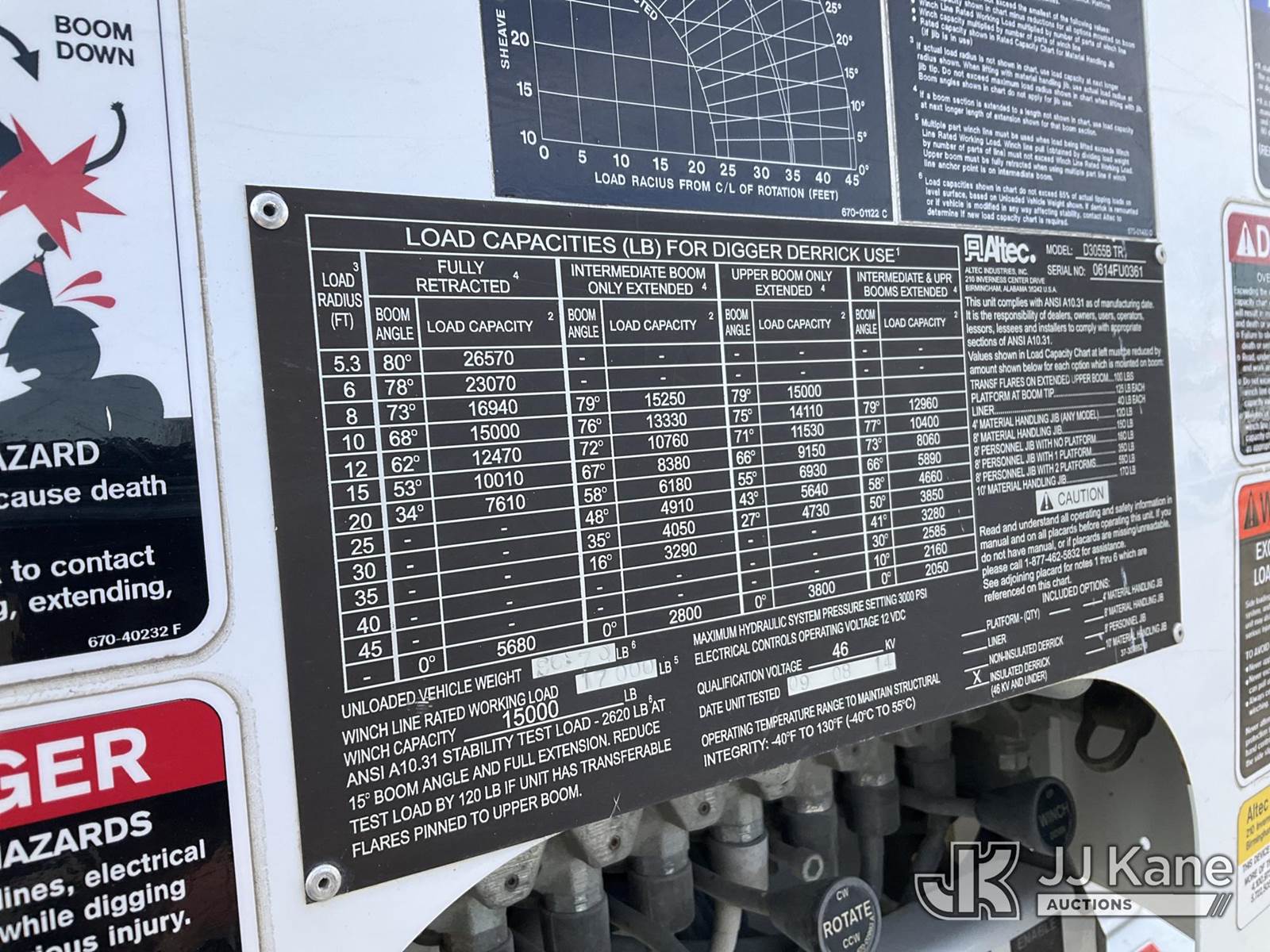 2015 Altec D3055B-TR, 26,570 Lb Digger Derrick