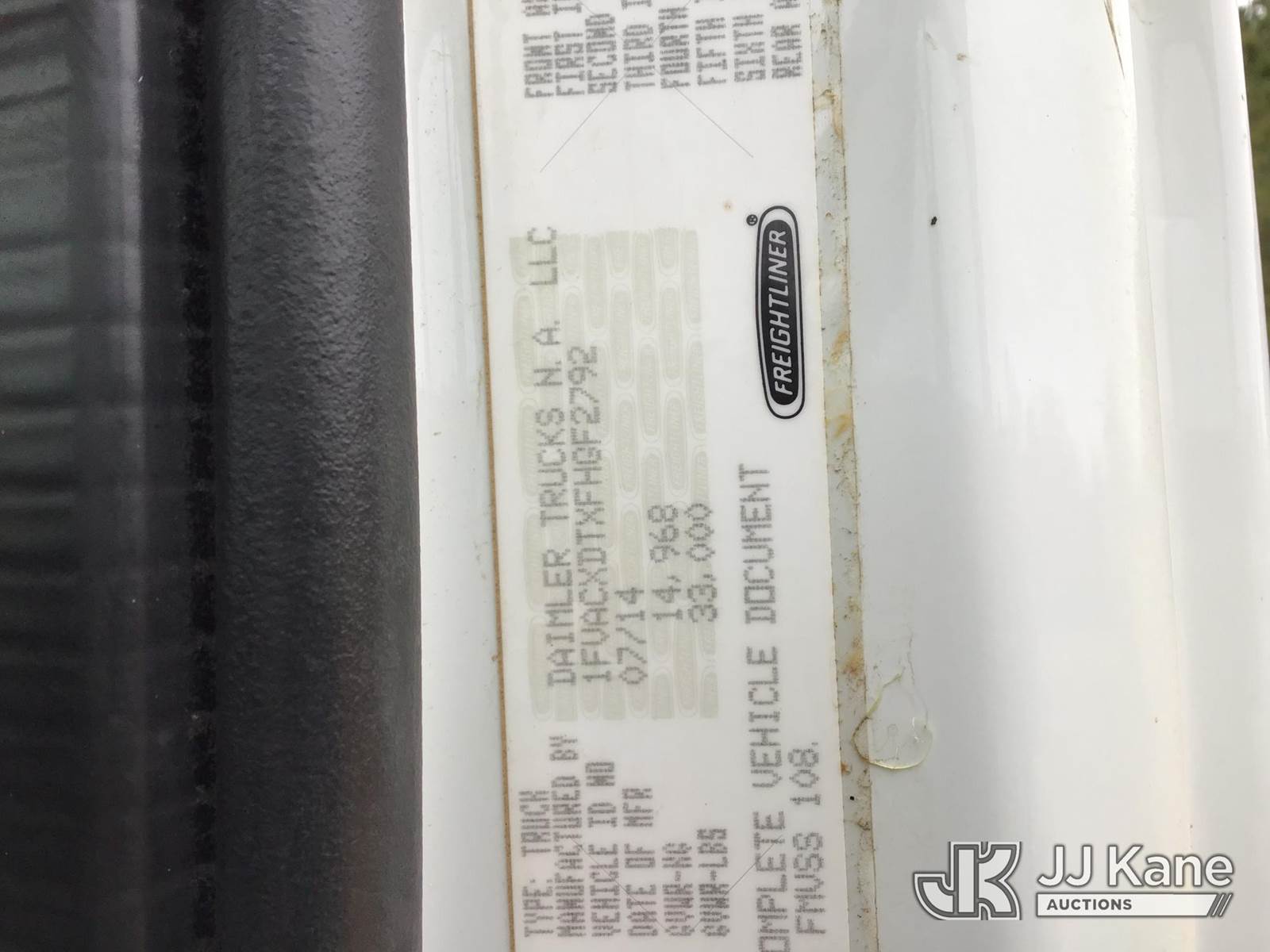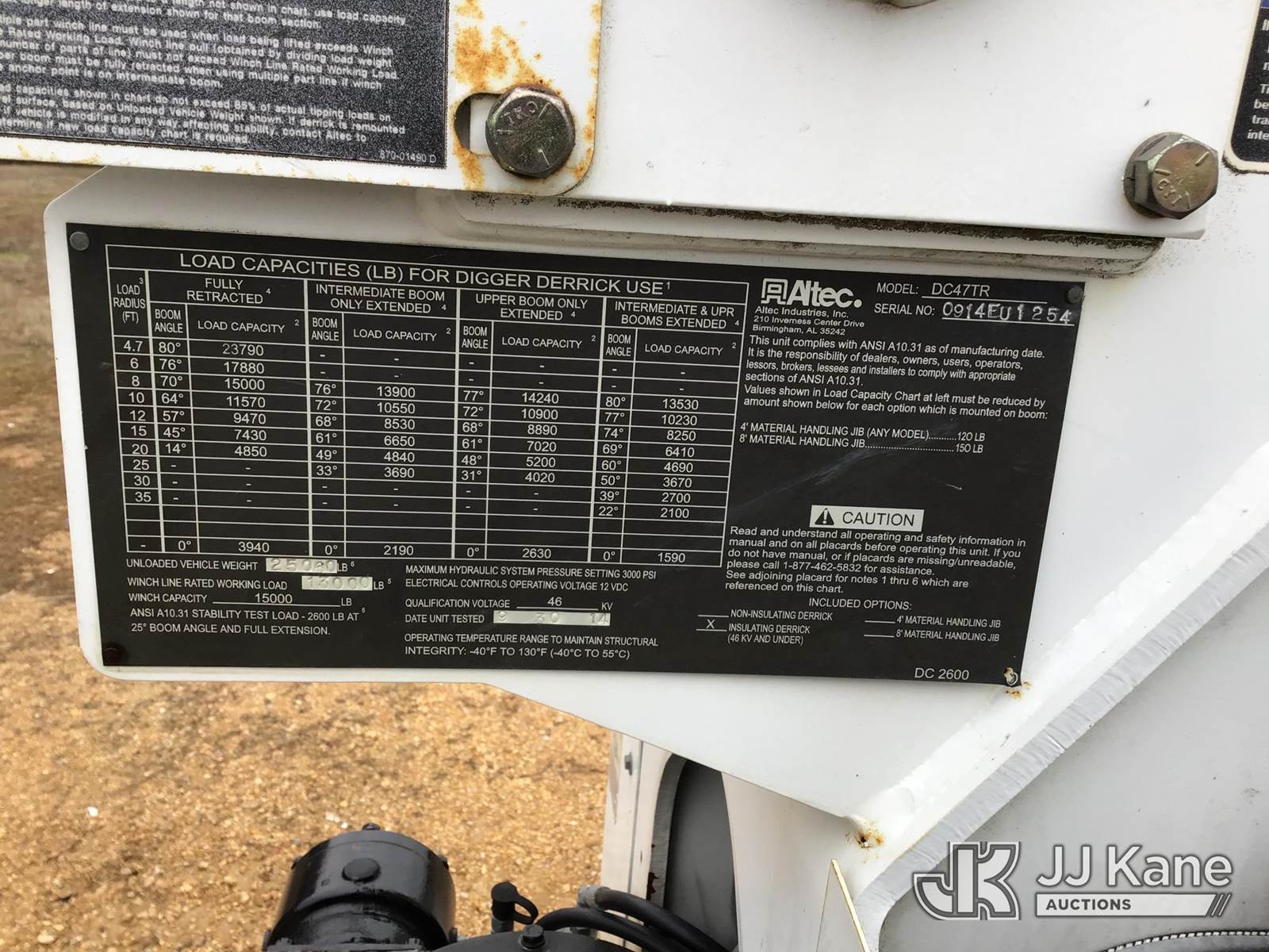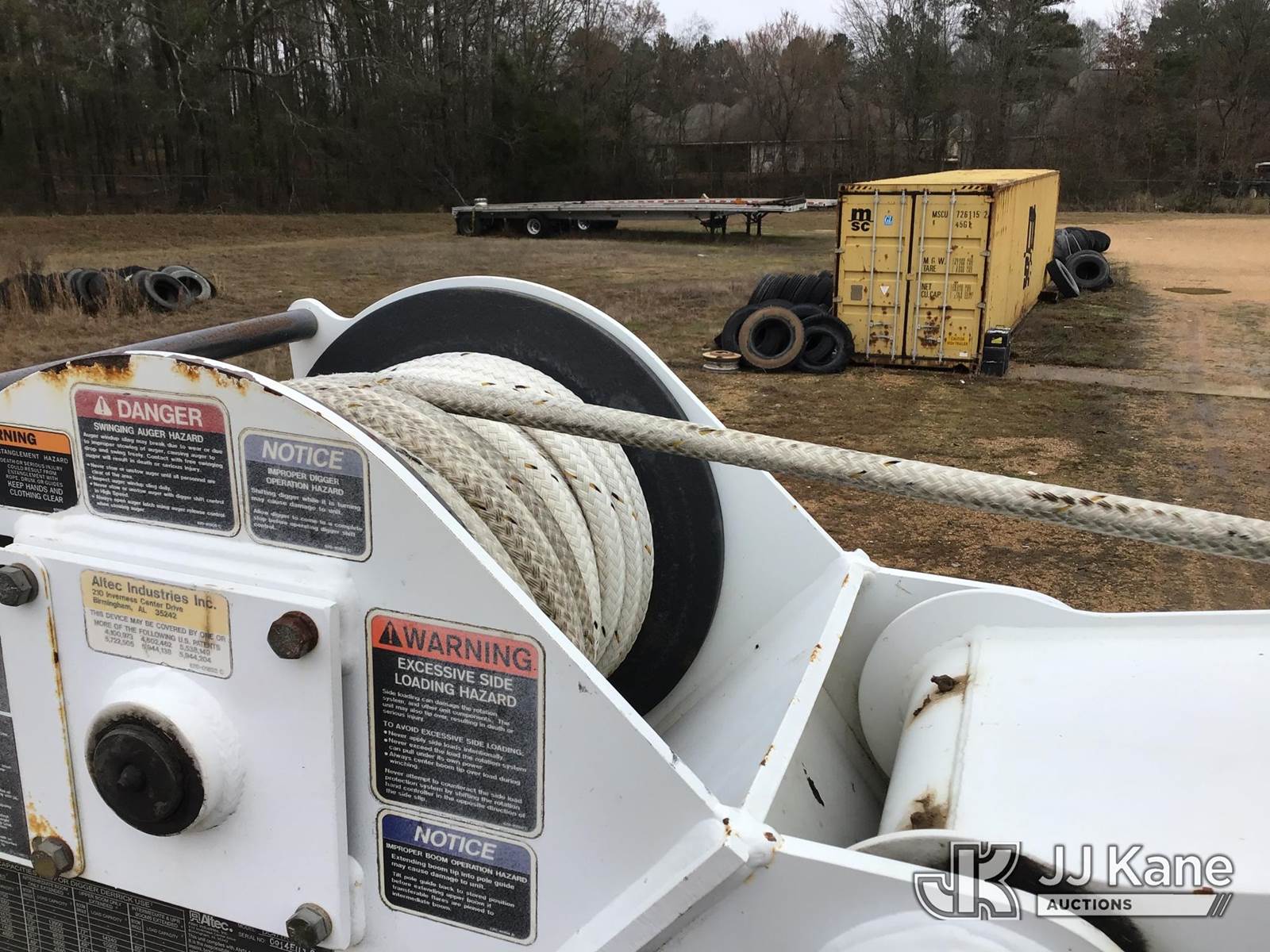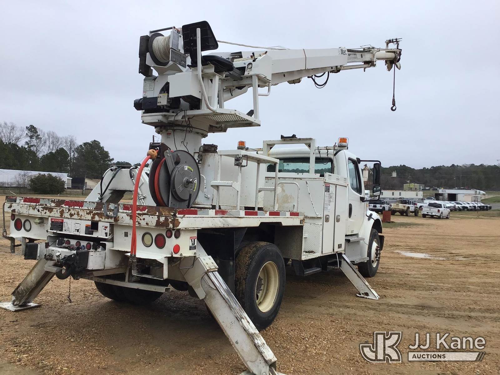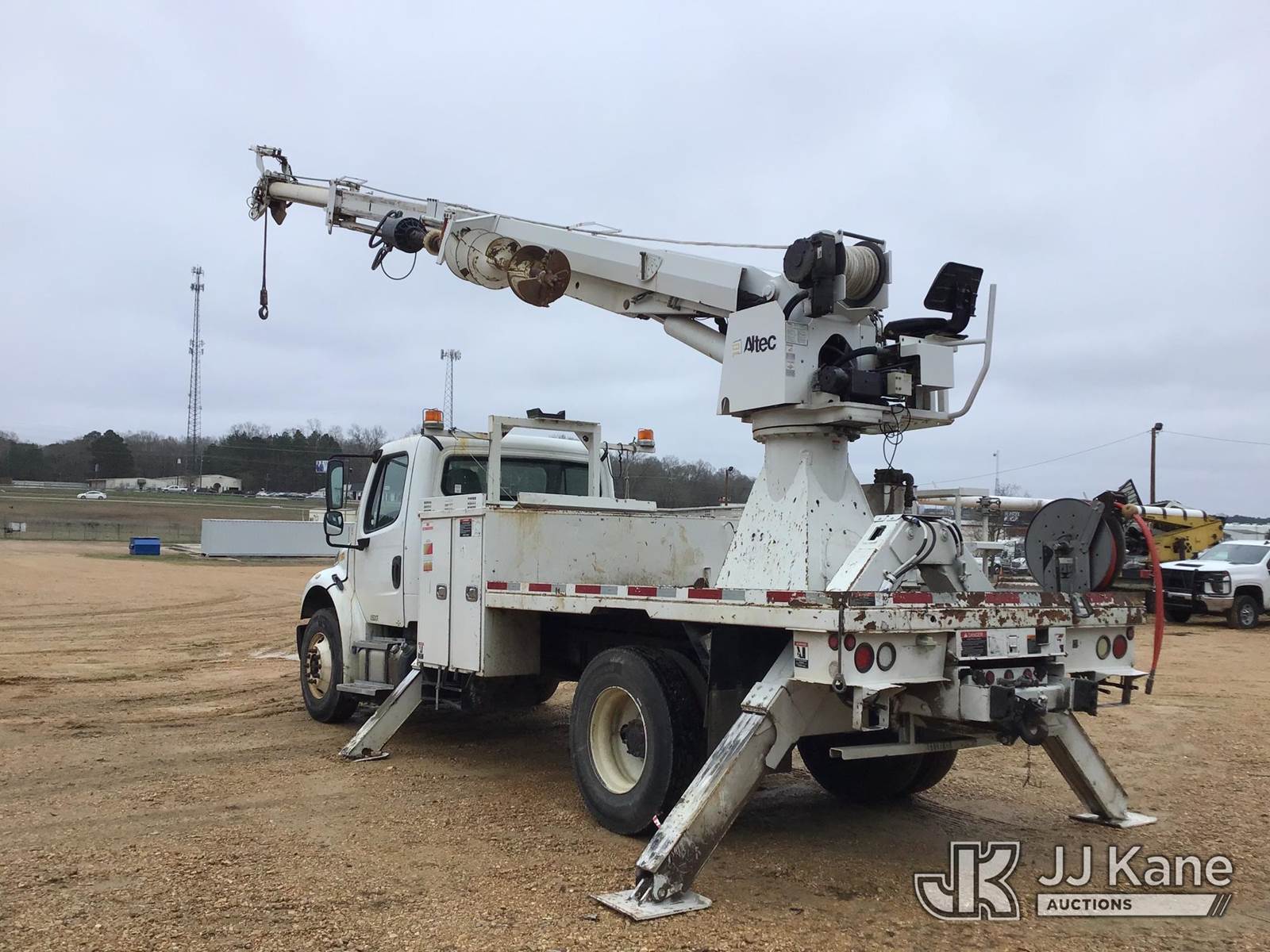 Altec DC47-TR, 23,790 Lb Digger Derrick s/n 0914EU1254, with 47ft sheave height, 2spd digger, pole guides, heel winch & riding console, rear mounted on 2015 Freightliner M2 106 Flatbed/Utility Truck, 6.7L diesel, 4X2, Auto, A/C, (127,450 miles) (Runs, Moves, & Upper Operates)(Engine Light On, Seat Torn, Headliner Loose, Auger Flights Broken & Bent, Air Brake Trailer Package, 1/4Fender Cracked The manufacturer has notified JJ Kane that this equipment is subject to an open recall. CSN 713A Reinforcement Plate Installation CSN 713B HOP Harness Installation The equipment should not be operated until this is addressed. Buyer is responsible for reviewing the recall notice and contacting the manufacturer to schedule the recommended corrective actions. Associated costs may be covered by the manufacturer in some cases.) (Reads 9,841 hours) This is a Titled Item NOTE: This unit is being sold AS IS/WHERE IS via Timed Auction and is located in Byram, MS. Inspection & preview days for this unit are the 2 business days prior to the first day of items closing for this auction, item is located at 6033 I-55 S / W Frontage Rd Byram, MS 39272 and hours of operations are 8a-4p. Pre-sale questions, please contact Todd Hales @ (659) 278-7786 (Manuals provided in cab) (Buyer is responsible for removal. Assistance by consignor or JJ Kane Auctions is not assured.)
