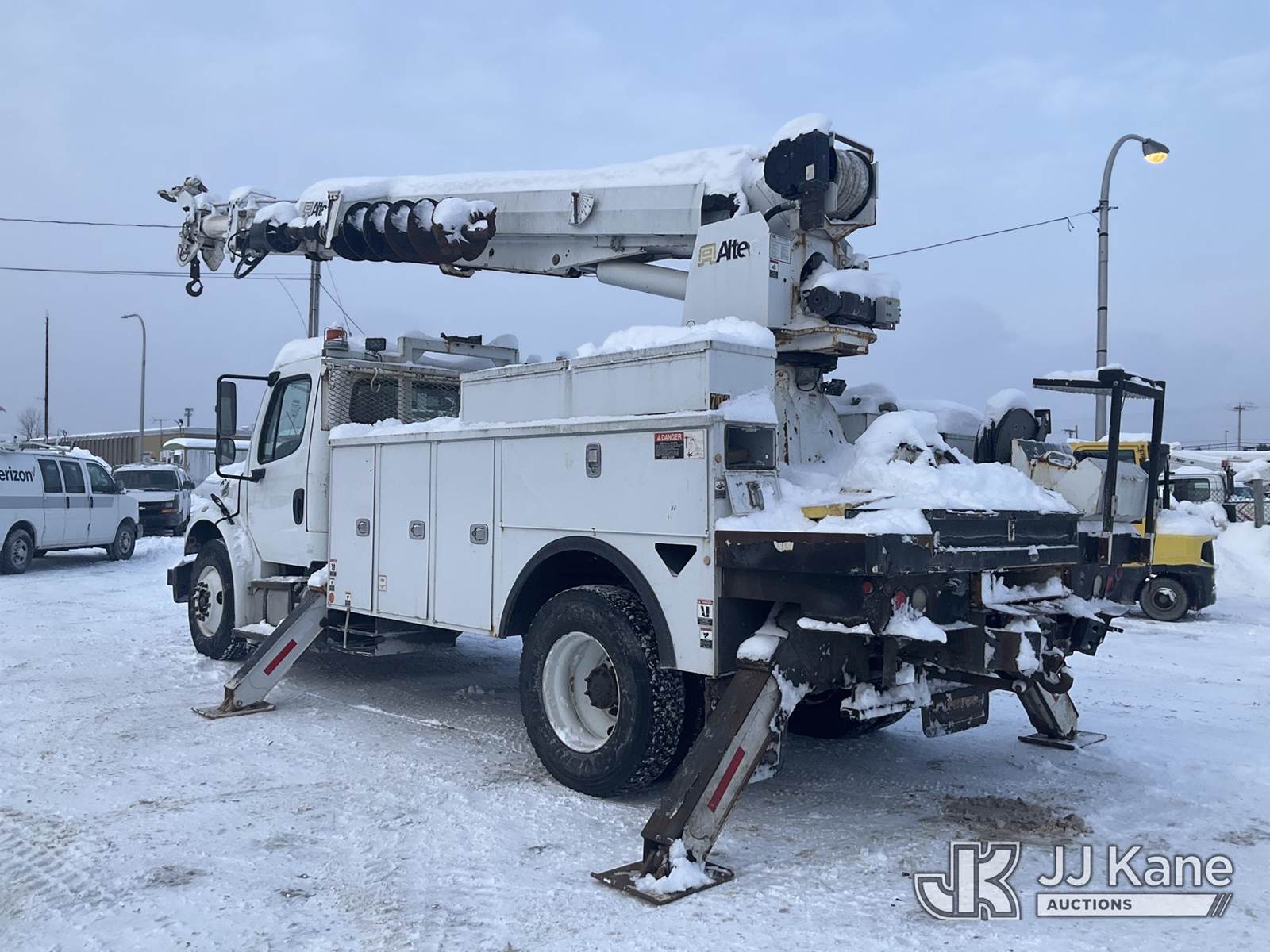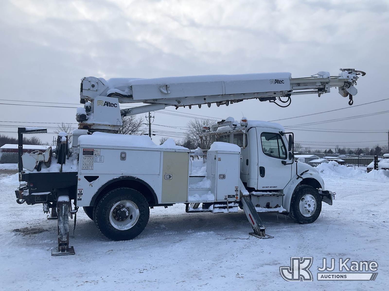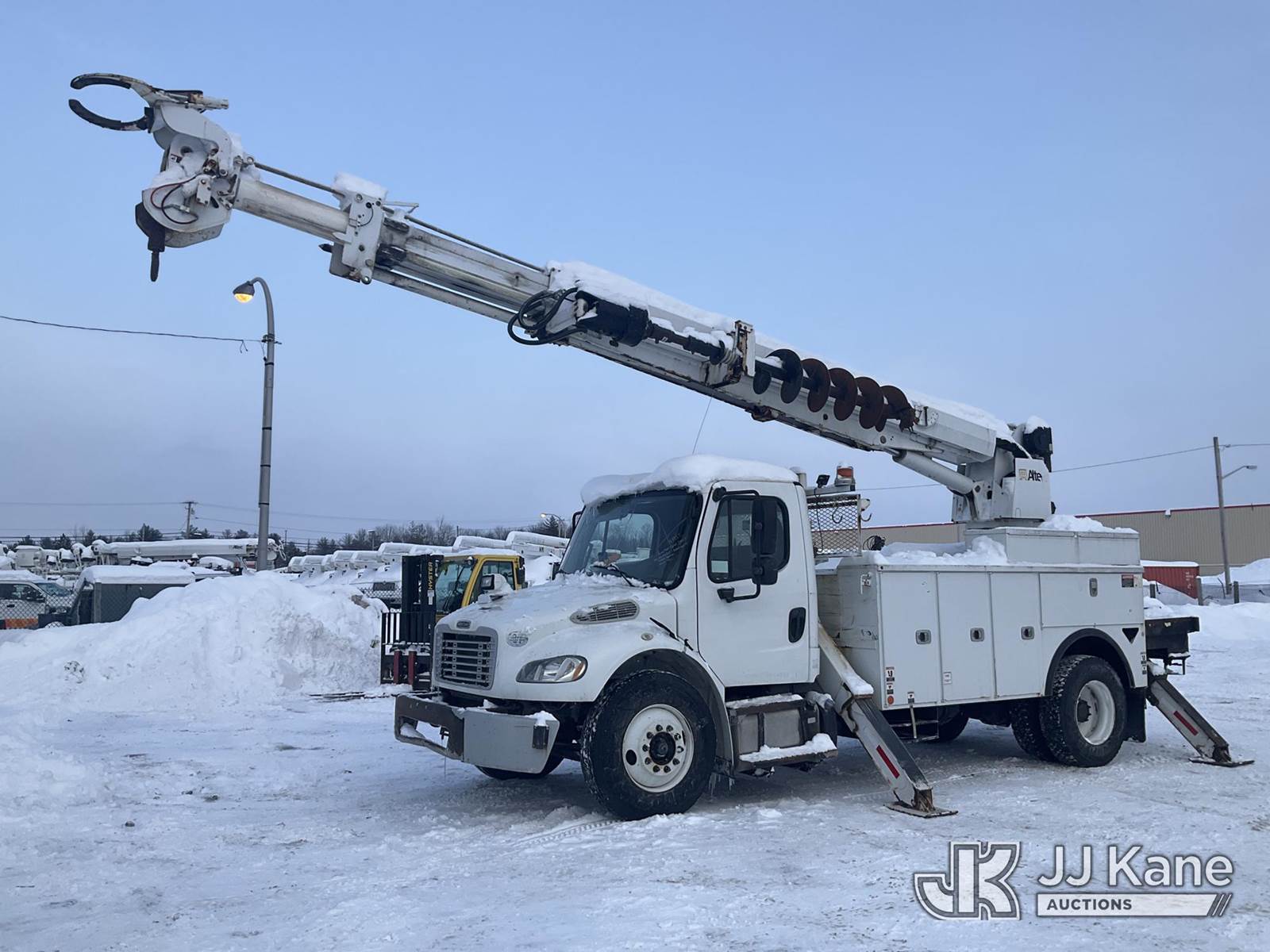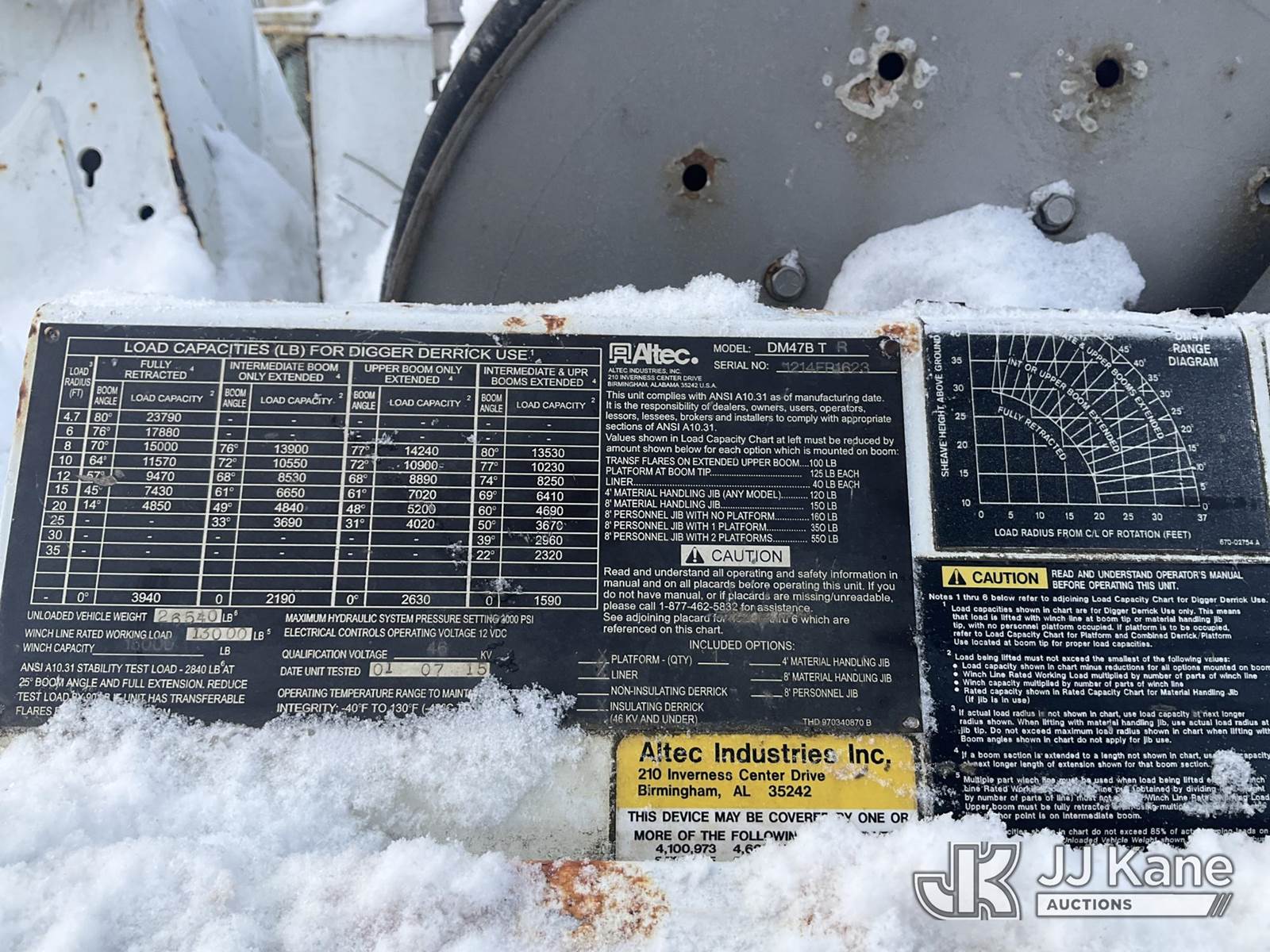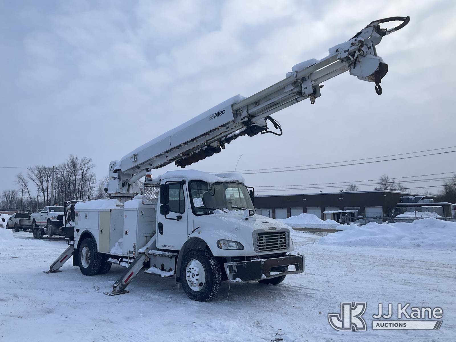 Altec DM47-TR, 23,790 Lb Digger Derrick s/n 1214FR1623, with 47 ft Sheave Height, 3-Section Boom, 2 Spd Digger, Pole Grabs, Heel Winch & 4 Outriggers, rear mounted on 2015 Freightliner M2 106 Utility Truck, 6.7L diesel, Auto, A/C, (90,206 miles) (Runs, Moves & Upper Operates, Stop Engine & Check Engine Lights On, Engine Derated, Must Tow ) This is a Titled Item NOTE: This unit is being sold AS IS/WHERE IS via Timed Auction and is located in Rome, NY. Inspection & preview days for this unit are the 2 business days prior to the first day of items closing for this auction, item is located at 5835 Success Dr Rome, NY 13440 and hours of operations are 8a-4p. For pre-sale questions, please contact Ryan Jackson @ (315) 749-3790 or Ryan.Jackson@jjkane.com. (Manuals provided in cab) (Buyer is responsible for removal. Assistance by consignor or JJ Kane Auctions is not assured.)