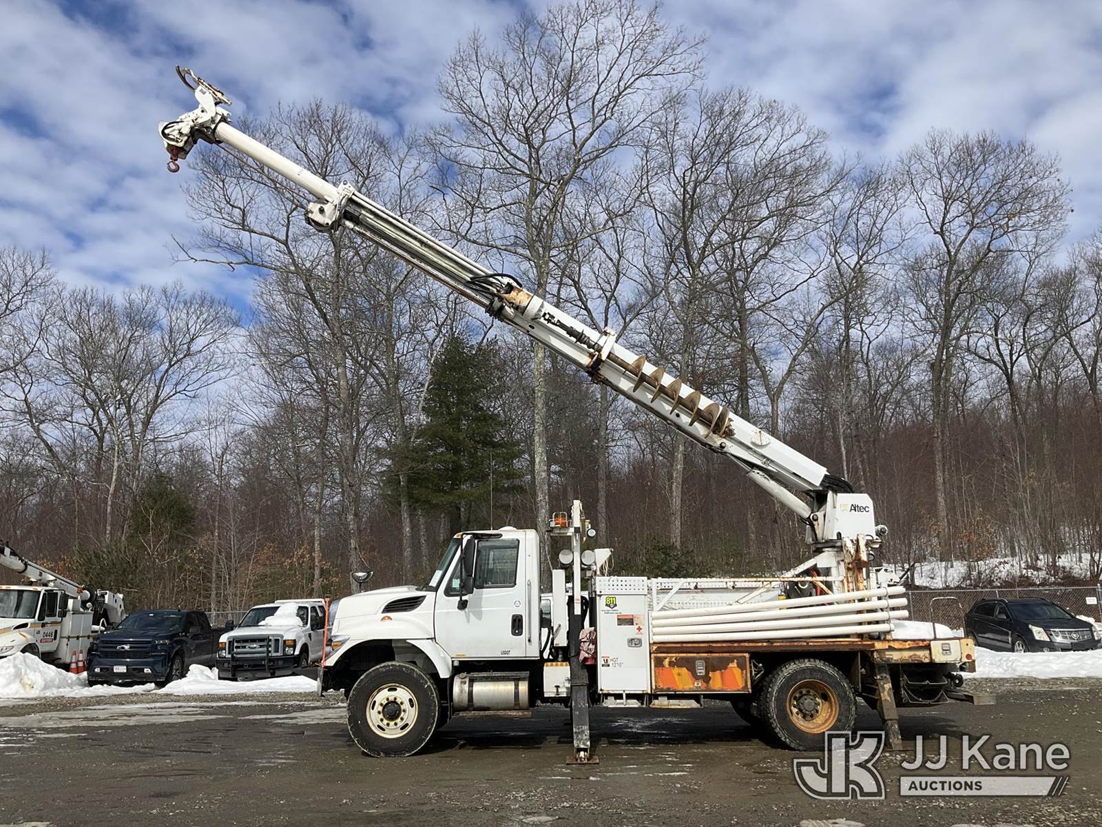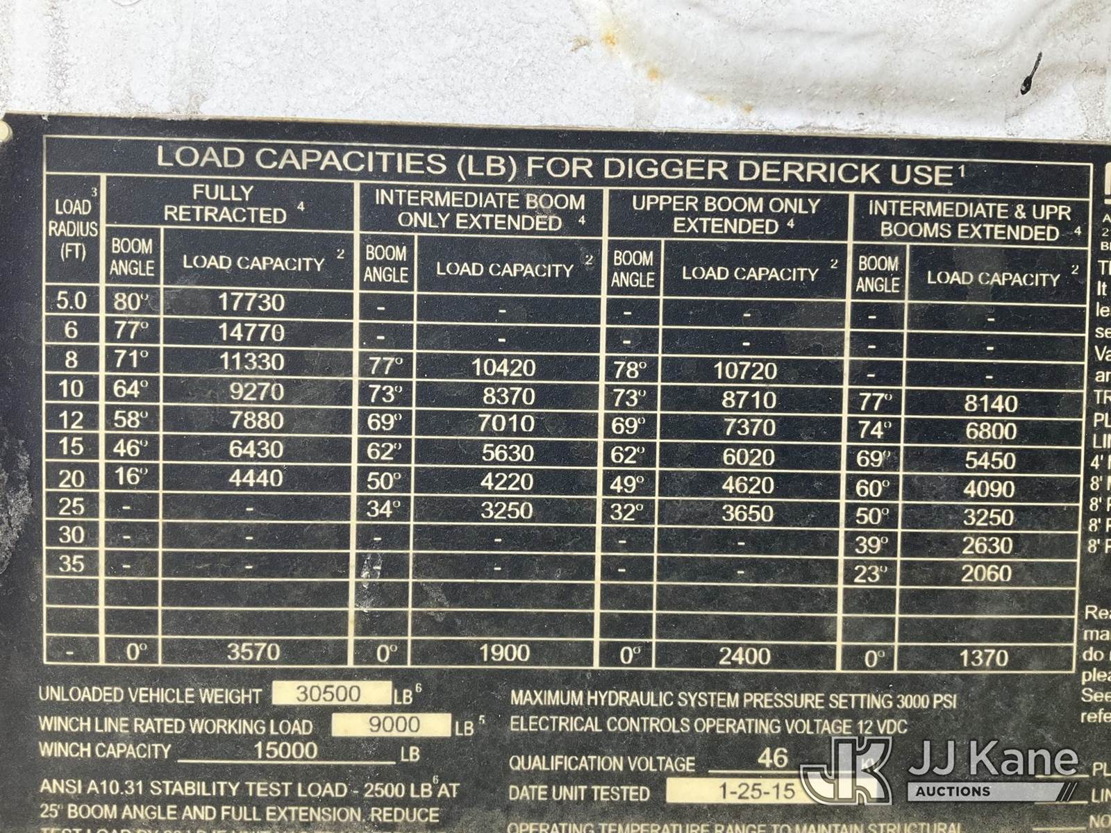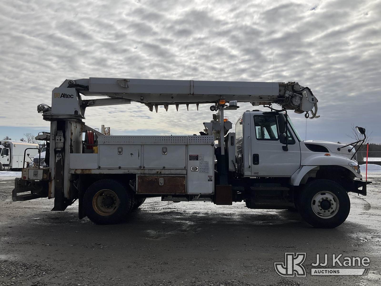 Altec DM47B-BC, 17,730 Lb Digger Derrick s/n 1014FR1523, with 47 ft sheave height, 2 spd digger, pole grabs, tip winch, stand up controls & 4 outriggers, rear mounted on 2015 International 7400 Flatbed/Utility Truck, MaxxForce 7.6L 4X2, diesel, Auto, A/C, (78,995 miles) (Runs, Moves & Upper Operates) (DPF & Check Engine Lights On, “Parked Regen Required” Message On Dash ) (Reads 6,437 hours) This is a Titled Item NOTE: This unit is being sold AS IS/WHERE IS via Timed Auction and is located in Shrewsbury, MA. Inspection & preview days for this unit are the 2 business days prior to the first day of items closing for this auction, item is located at 11 Fortune Blvd Shrewsbury, MA 01545 and hours of operations are 8a-4p. For pre-sale questions, please contact Rob Gifford @ (508) 864-4126. (Manuals provided in cab) Sales Tax Collected Based on Residency (Buyer is responsible for removal. Assistance by consignor or JJ Kane Auctions is not assured.)