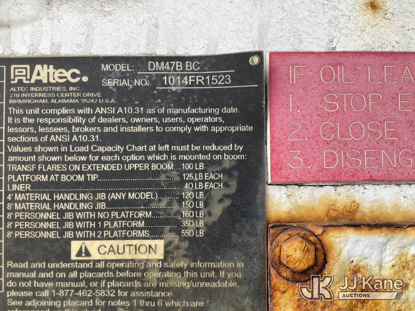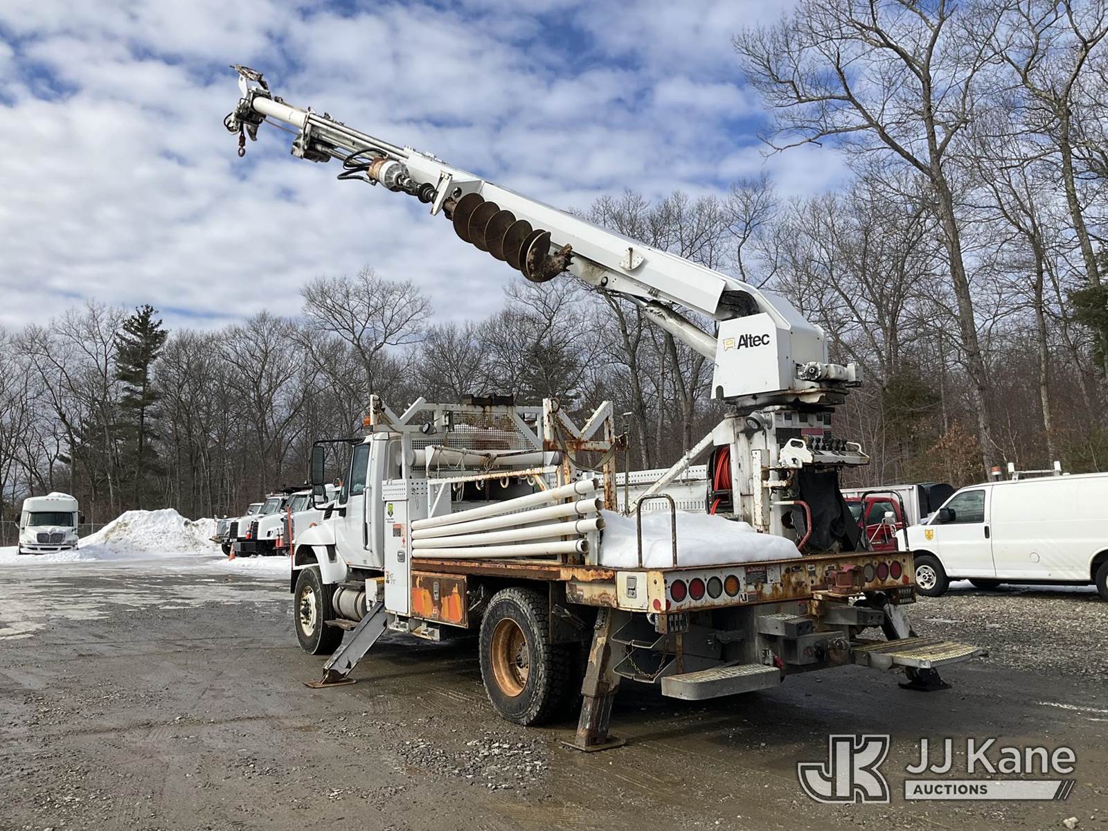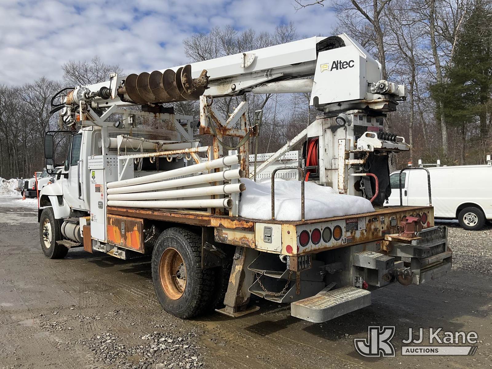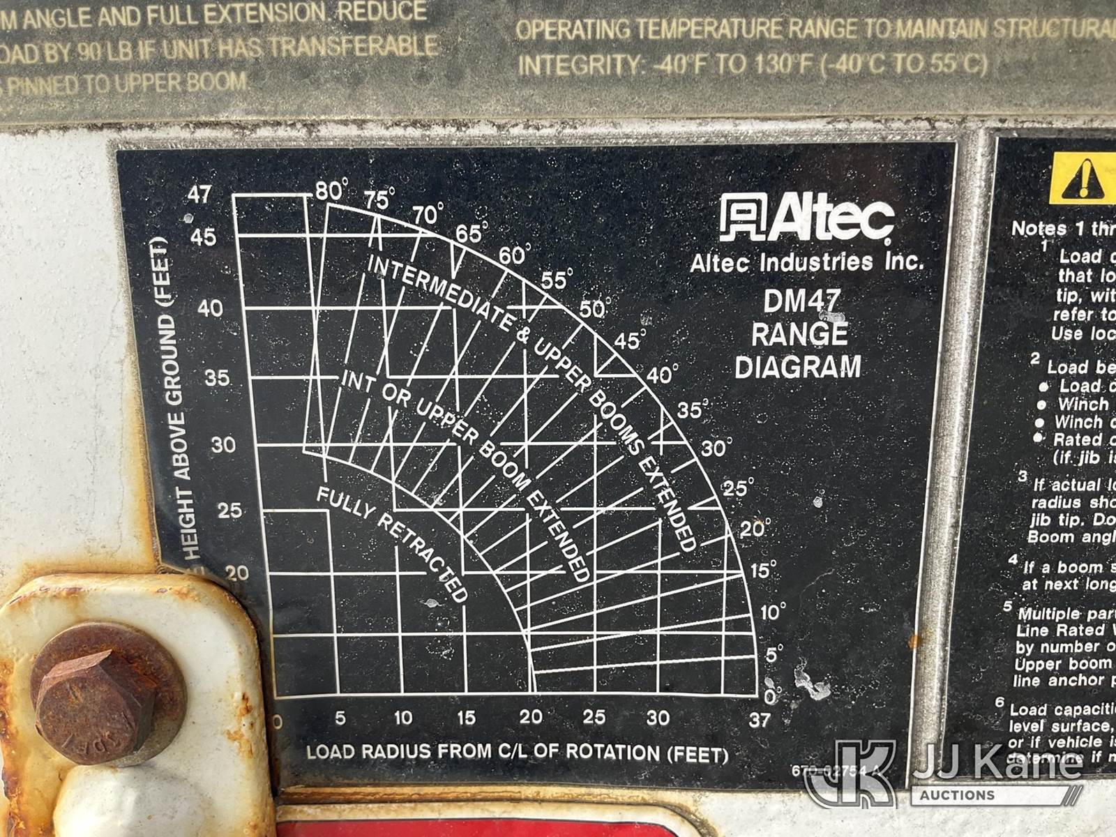 Altec DM47B-BC, 17,730 Lb Digger Derrick s/n 1014FR1523, with 47 ft sheave height, 2 spd digger, pole grabs, tip winch, stand up controls & 4 outriggers, rear mounted on 2015 International 7400 Flatbed/Utility Truck, MaxxForce 7.6L 4X2, diesel, Auto, A/C, (78,995 miles) (Runs, Moves & Upper Operates) (DPF & Check Engine Lights On, “Parked Regen Required” Message On Dash ) (Reads 6,437 hours) This is a Titled Item NOTE: This unit is being sold AS IS/WHERE IS via Timed Auction and is located in Shrewsbury, MA. Inspection & preview days for this unit are the 2 business days prior to the first day of items closing for this auction, item is located at 11 Fortune Blvd Shrewsbury, MA 01545 and hours of operations are 8a-4p. For pre-sale questions, please contact Rob Gifford @ (508) 864-4126. (Manuals provided in cab) Sales Tax Collected Based on Residency (Buyer is responsible for removal. Assistance by consignor or JJ Kane Auctions is not assured.)