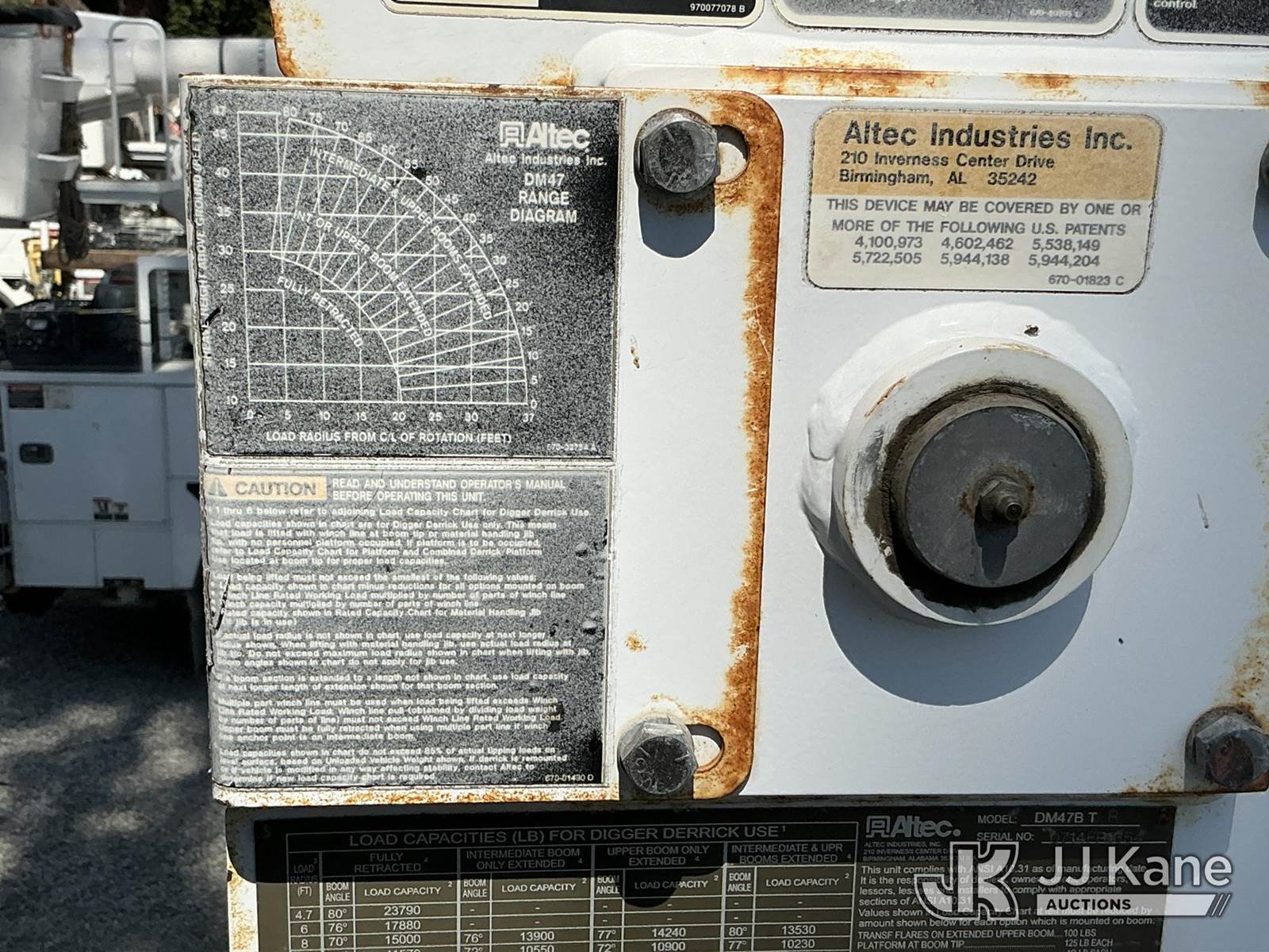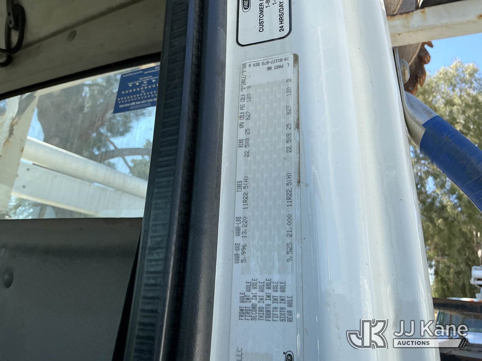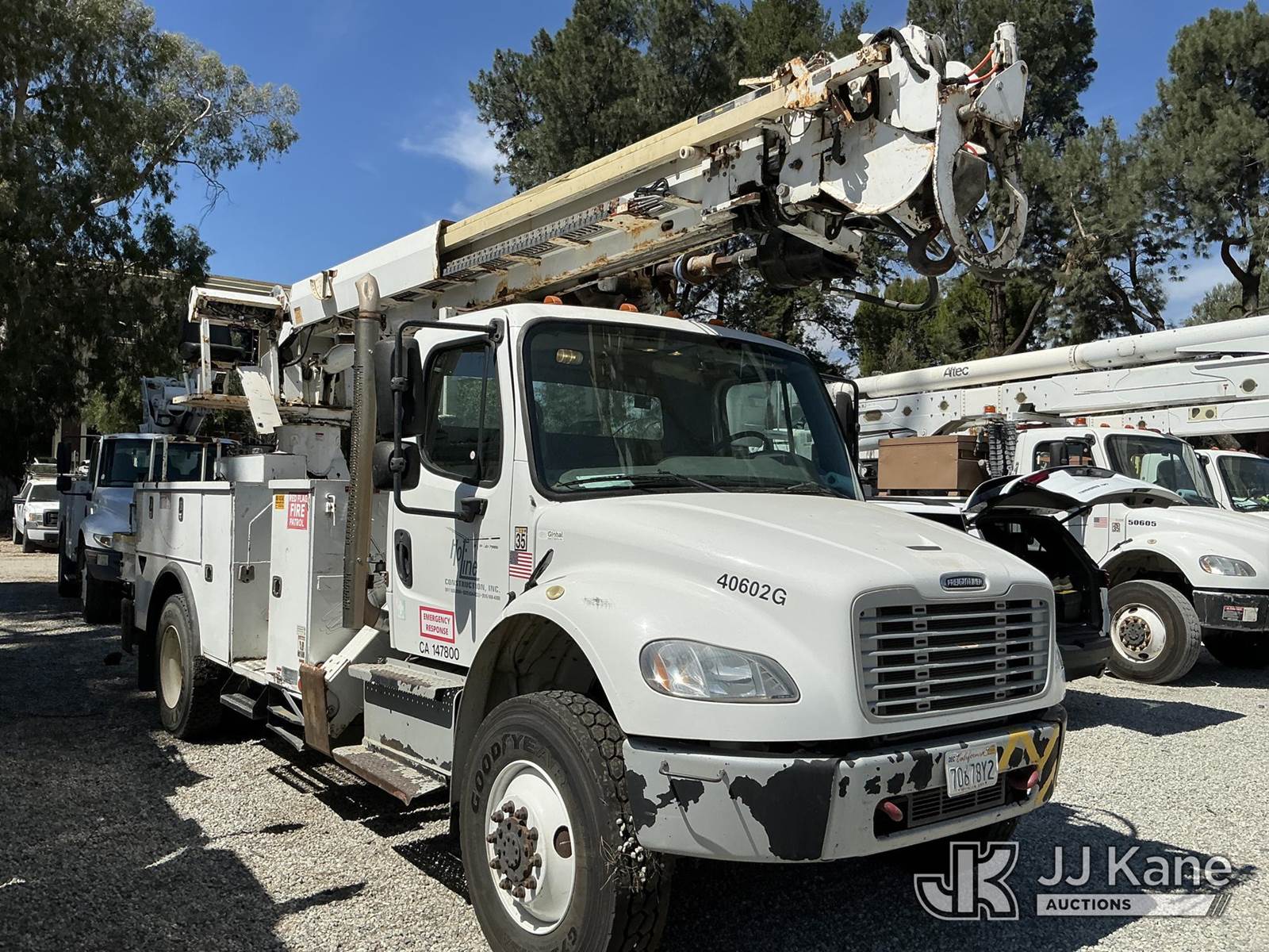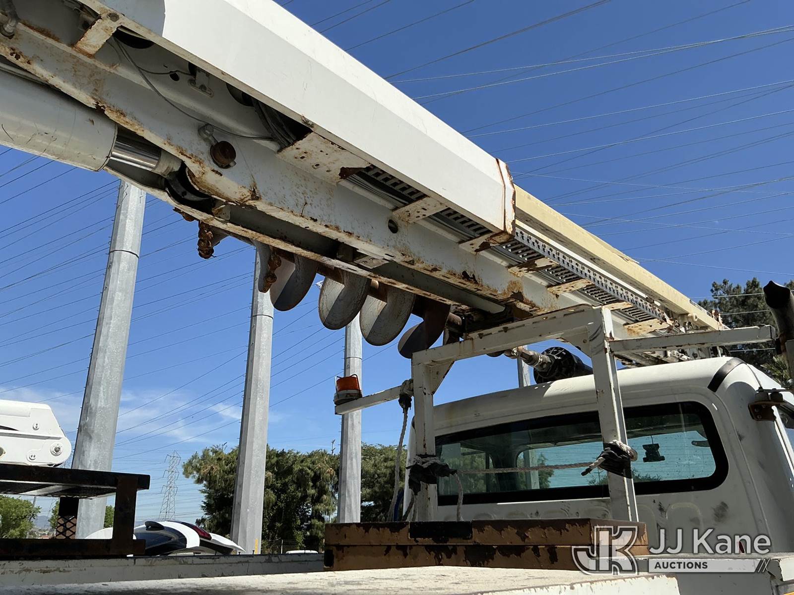 Altec DM47B-TR, 23,790 Lb Digger Derrick s/n 0714EB1354, with Riding seat controls, 2 speed dig, heel winch,3rd stage hydr boom, pole grabs, 4 hydraulic outriggers, rear mounted on 2015 Freightliner M2 106 Utility Truck, 6.7L L6 4X4, DIESEL, Auto, A/C, (101,776 miles) (Runs & Moves, Would Not Go Into Reverse, PTO Operates, Outriggers Reported to Deploy, but could not verify, Upper Boom Non-Operational Parts are Missing, see pictures) (Reads 7,707 hours) This is a Titled Item NOTE: This unit is being sold AS IS/WHERE IS via Timed Auction and is located in Santa Paula, CA. (Missing manuals, See Auction Company for Manufacturers Information to obtain manuals) (Buyer is responsible for removal. Assistance by consignor or JJ Kane Auctions is not assured.)
