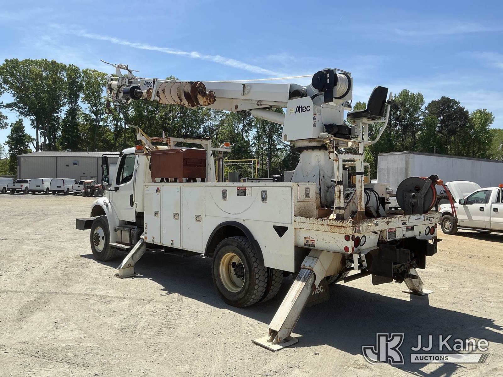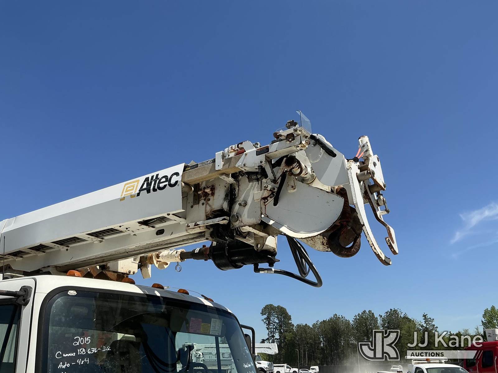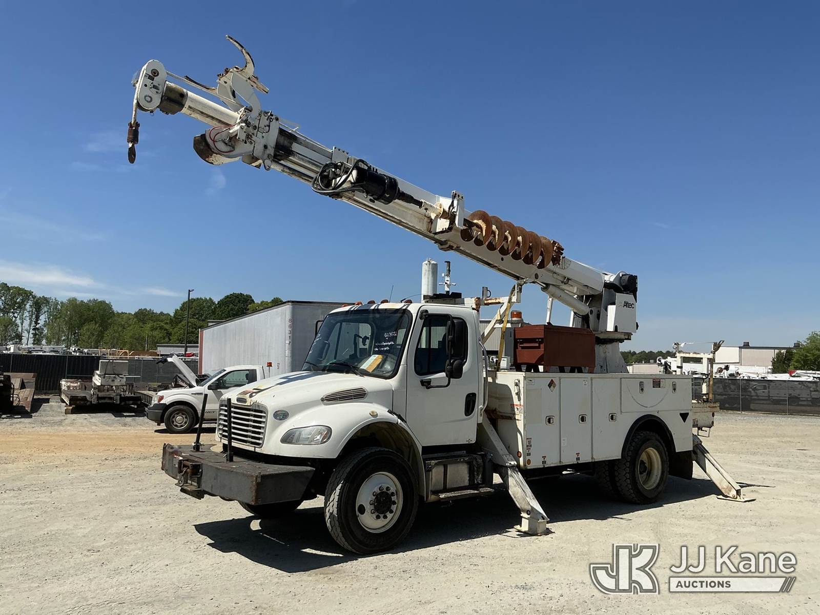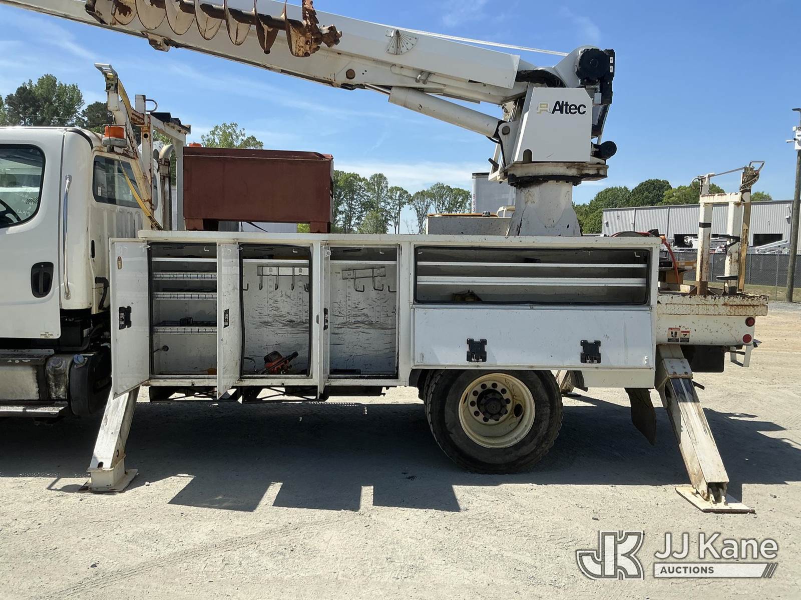 Altec DM47B-TR, 23,790 Lb Digger Derrick s/n 0514FR1214, with 47 ft sheave height, 2 spd digger, heel winch, upper controls, pole grabs & riding console, rear mounted on 2015 Freightliner M2 106 4X4 Utility Truck, Cummins ISB 6.7L diesel, Auto, A/C, with front winch, (89,914 miles) (Runs, Moves & Upper Operates) (Check Engine Light On, Stop Engine Light On ) This is a Titled Item NOTE: This unit is being sold AS IS/WHERE IS via Timed Auction and is located in China Grove, NC. Inspection & preview days for this unit are the 2 business days prior to the first day of items closing for this auction, item is located at 820 E NC Hwy 152 China Grove, NC 28023 and hours of operations are 8a-4p. For pre-sale questions, please contact Office Staff @ (704) 674-1113. (Manuals provided in cab) (Buyer is responsible for removal. Assistance by consignor or JJ Kane Auctions is not assured.)