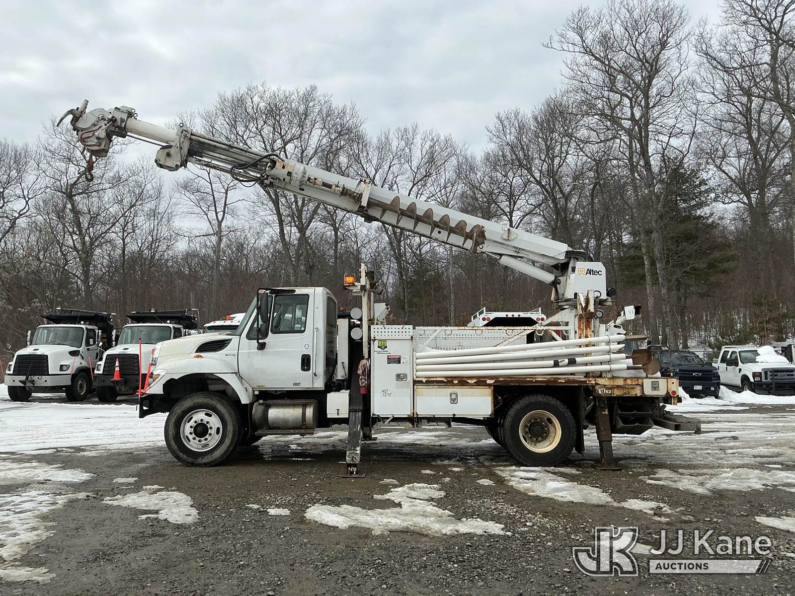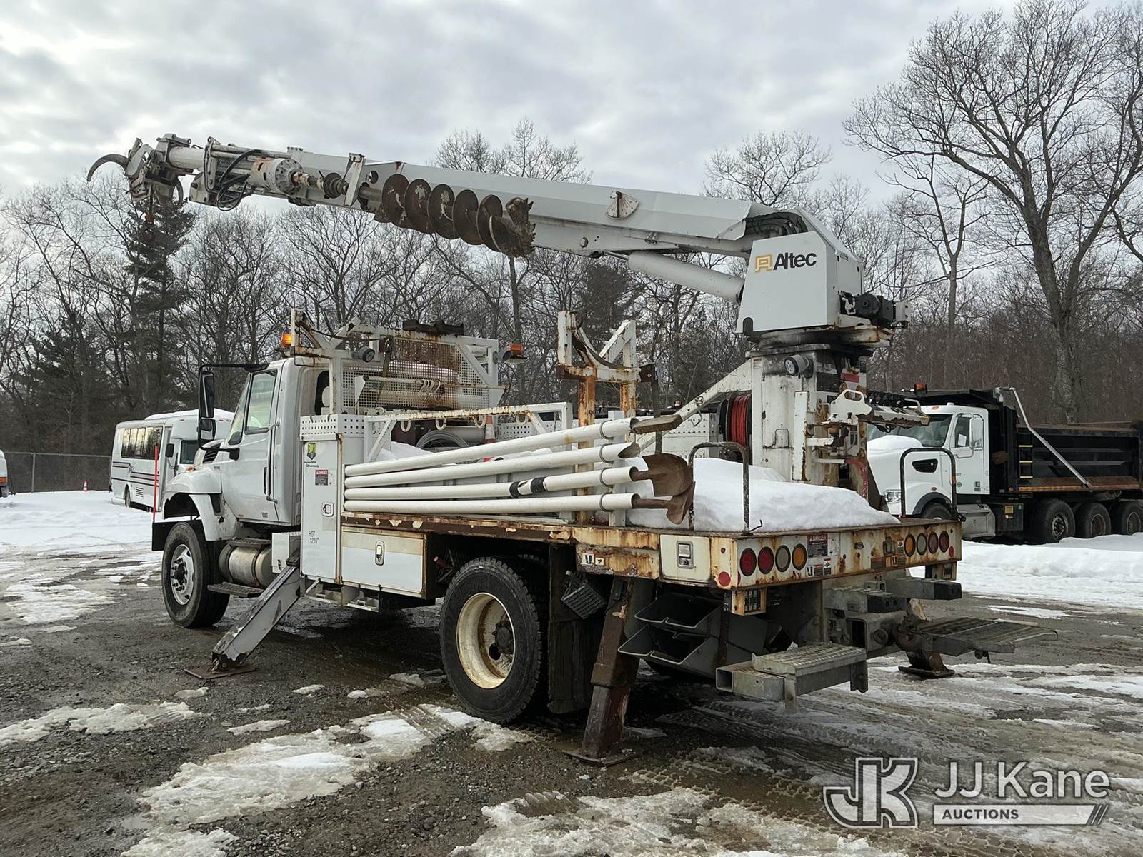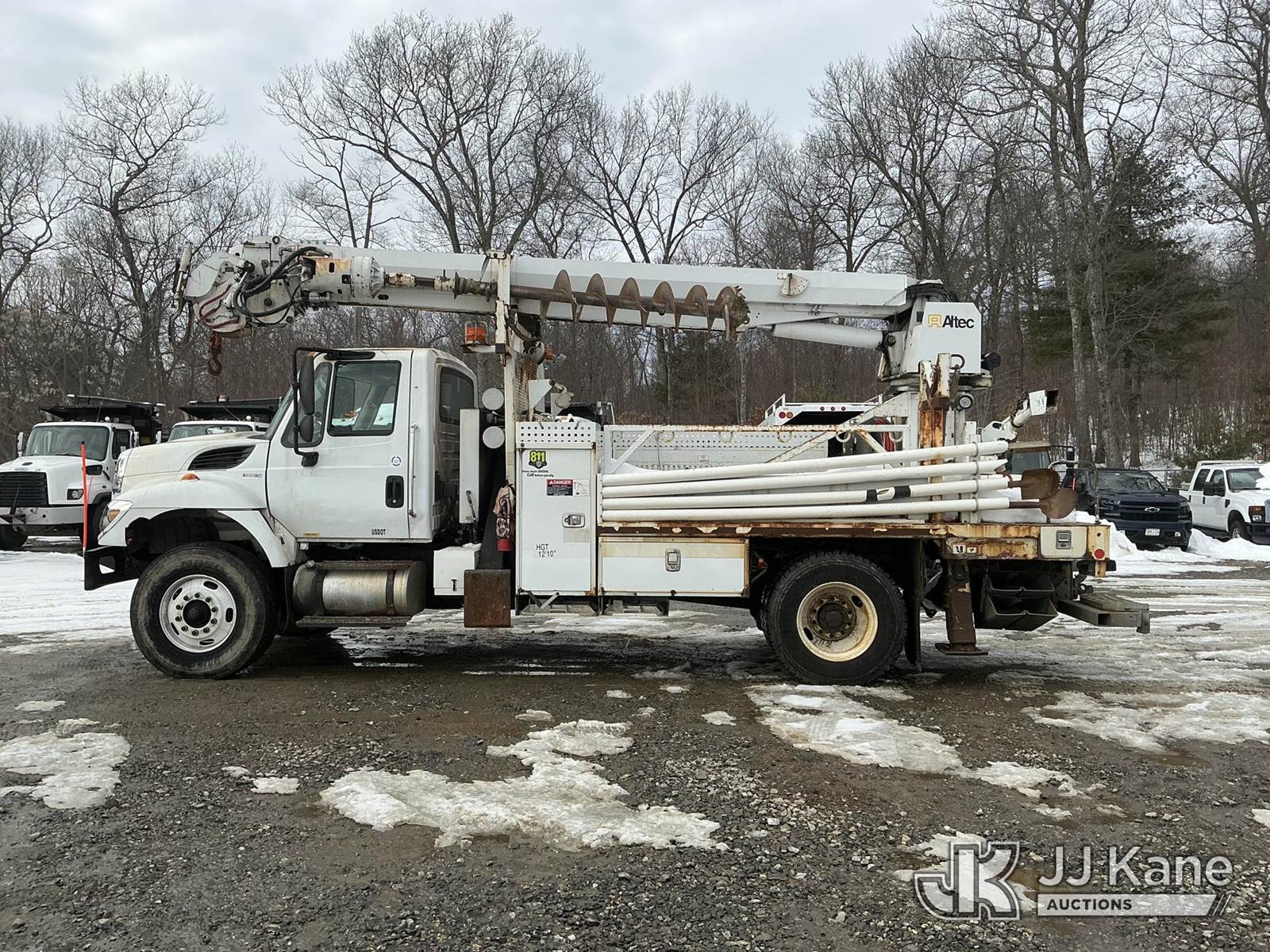 Altec DM47BBC, 17,730 Lb Digger Derrick s/n 1214FR1642, with 47 ft sheave height, 2 spd digger, pole grabs, tip winch, stand up controls & 4 outriggers, rear mounted on 2015 International 7600 Flatbed/Utility Truck, MaxxForce 7.6L diesel, Auto, A/C, (70,428 miles) (Runs, Moves & Upper Operates) (Check Engine Light On) (Reads 7,770 hours) This is a Titled Item NOTE: This unit is being sold AS IS/WHERE IS via Timed Auction and is located in Shrewsbury, MA. Inspection & preview days for this unit are the 2 business days prior to the first day of items closing for this auction, item is located at 11 Fortune Blvd Shrewsbury, MA 01545 and hours of operations are 8a-4p. For pre-sale questions, please contact Rob Gifford @ (508) 864-4126. (Manuals provided in cab) Sales Tax Collected Based on Residency (Buyer is responsible for removal. Assistance by consignor or JJ Kane Auctions is not assured.)
