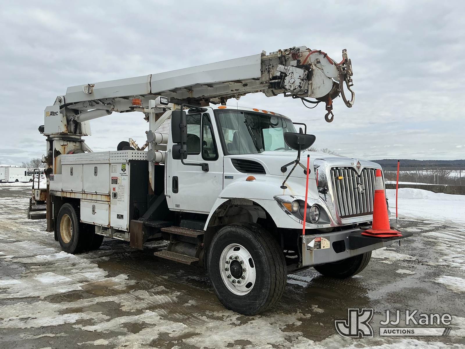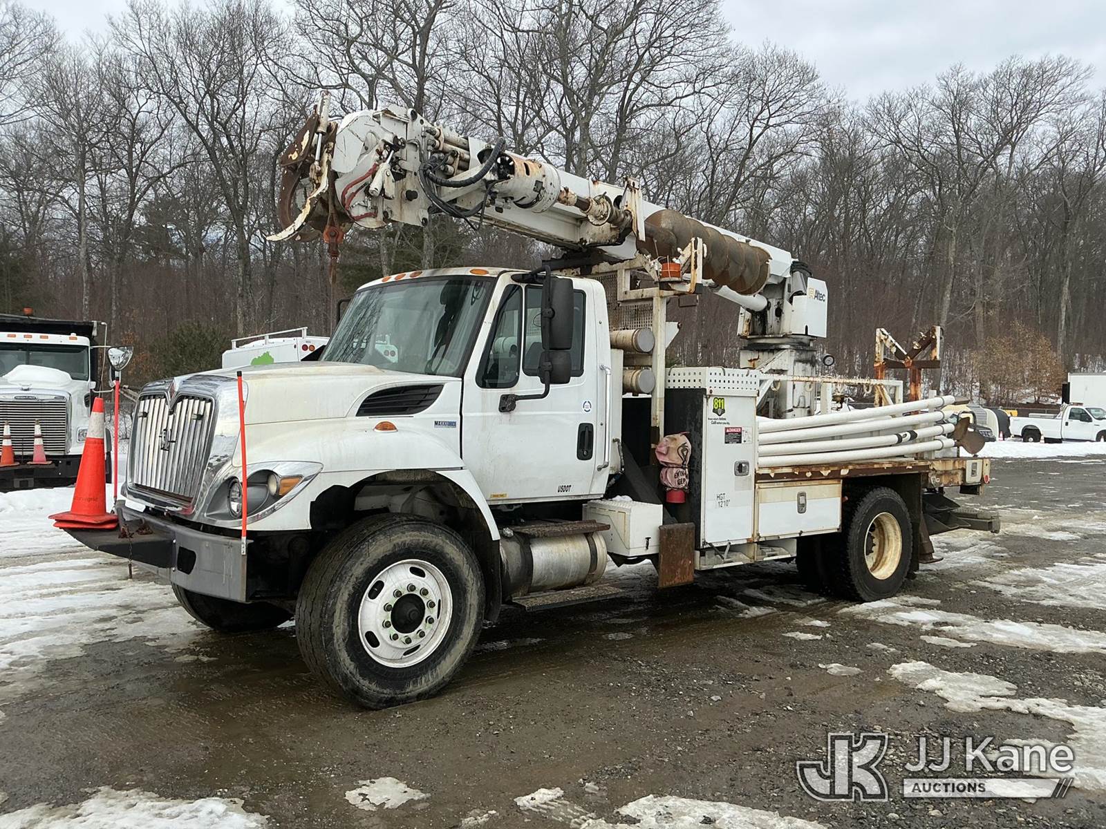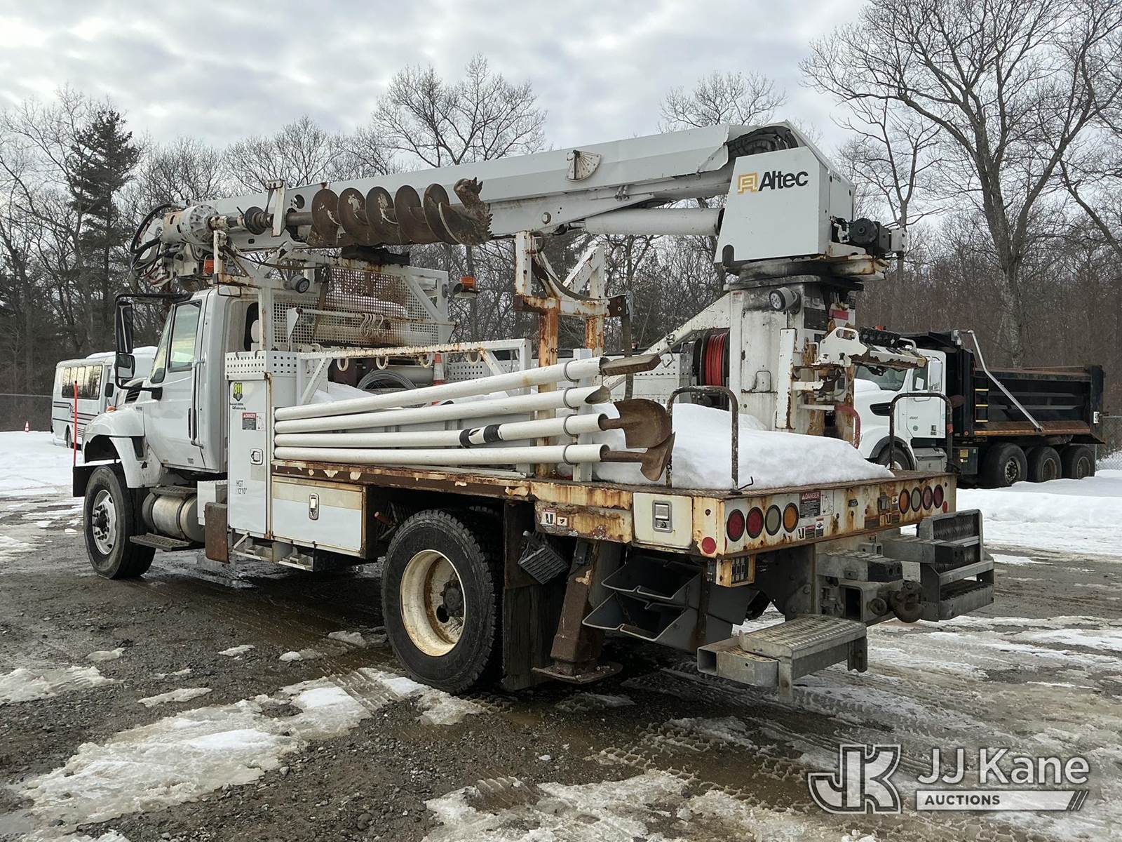 Altec DM47BBC, 17,730 Lb Digger Derrick s/n 1214FR1642, with 47 ft sheave height, 2 spd digger, pole grabs, tip winch, stand up controls & 4 outriggers, rear mounted on 2015 International 7600 Flatbed/Utility Truck, MaxxForce 7.6L diesel, Auto, A/C, (70,428 miles) (Runs, Moves & Upper Operates) (Check Engine Light On) (Reads 7,770 hours) This is a Titled Item NOTE: This unit is being sold AS IS/WHERE IS via Timed Auction and is located in Shrewsbury, MA. Inspection & preview days for this unit are the 2 business days prior to the first day of items closing for this auction, item is located at 11 Fortune Blvd Shrewsbury, MA 01545 and hours of operations are 8a-4p. For pre-sale questions, please contact Rob Gifford @ (508) 864-4126. (Manuals provided in cab) Sales Tax Collected Based on Residency (Buyer is responsible for removal. Assistance by consignor or JJ Kane Auctions is not assured.)