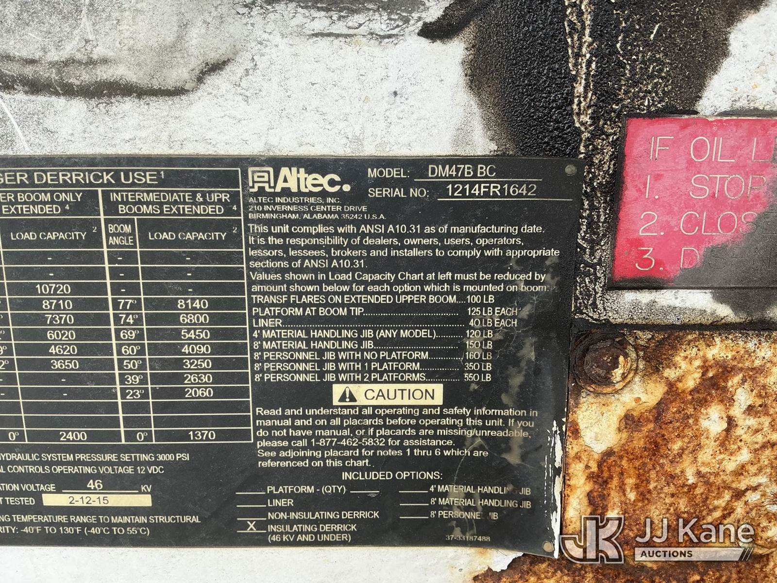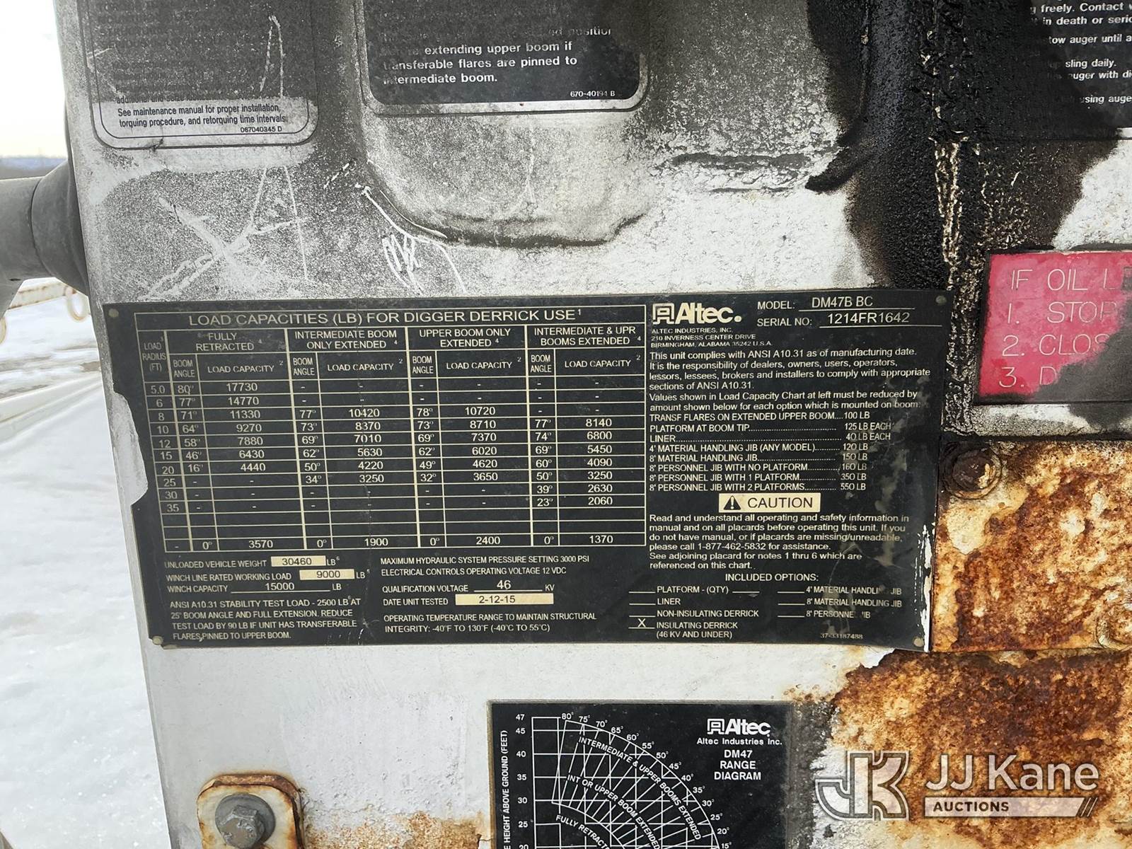 2015 Altec DM47BBC, 17,730 Lb Digger Derrick