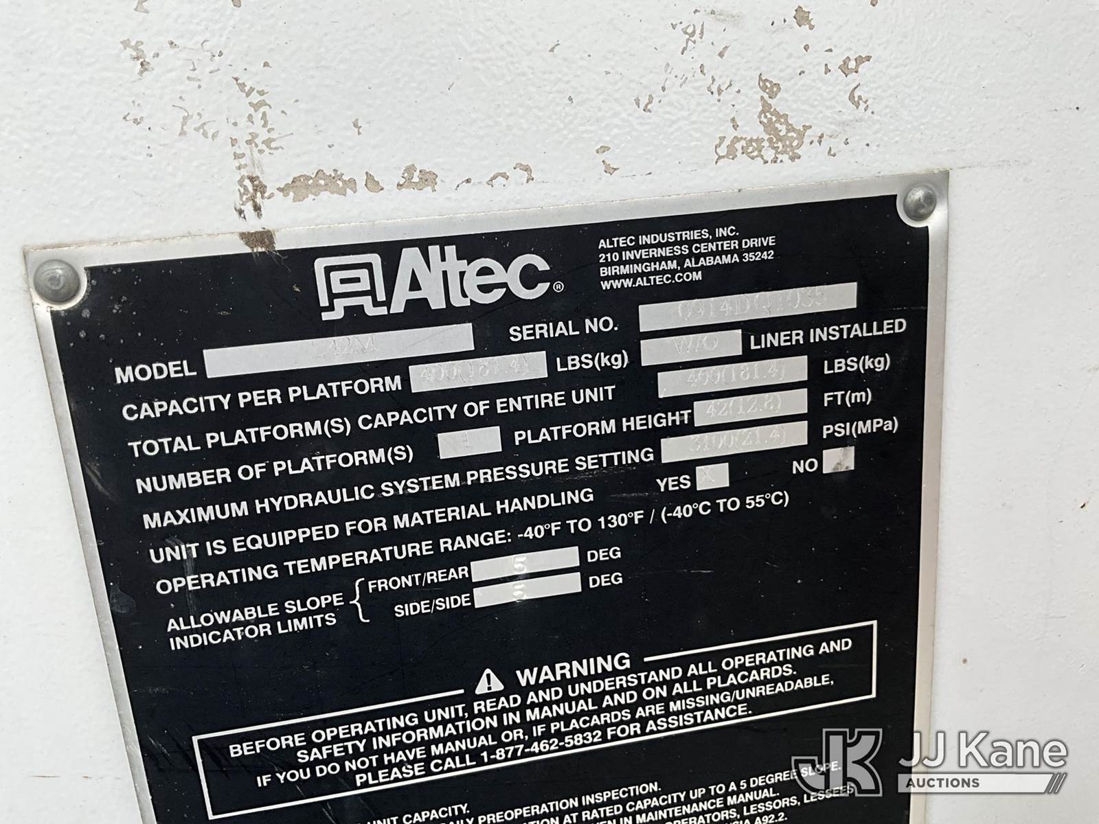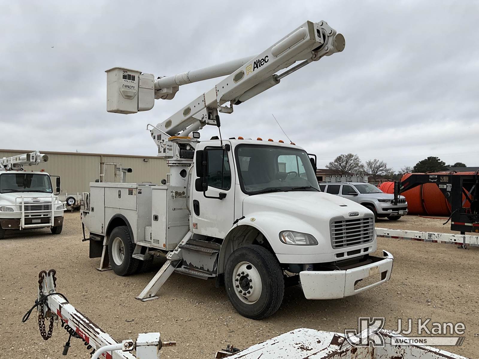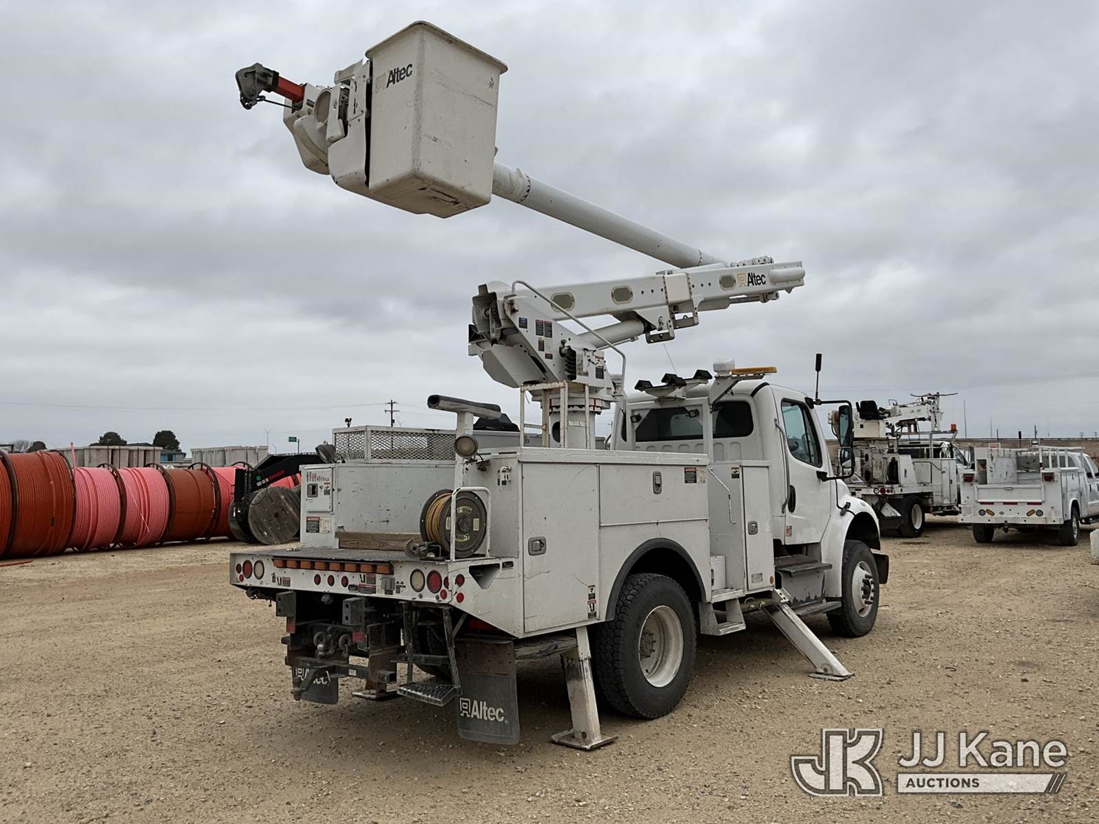 Altec L42M, 47 ft, Over-Center Material Handling Bucket Truck s/n 0914DQ1035, with Single-Man Bucket & 4 Hyd Outriggers, mounted on 2015 Freightliner M2 106 Medium Duty Utility Truck, 8.9L L6 DIESEL 4X2, Auto, A/C, (181,289 miles) Cooperative Owned (Runs, Moves & Upper Operates The manufacturer has notified JJ Kane that this equipment is subject to an open recall. CSN 3090 Hydraulic Hose Replacement — Compliance A92.2 The equipment should not be operated until this is addressed. Buyer is responsible for reviewing the recall notice and contacting the manufacturer to schedule the recommended corrective actions. Associated costs may be covered by the manufacturer in some cases.) This is a Titled Item NOTE: This unit is being sold AS IS/WHERE IS via Timed Auction and is located in San Angelo, TX. For more information & removal arrangements please contact Kevin Gossett @ 325-234-0341. (Missing manuals, See Auction Company for Manufacturers Information to obtain manuals) (Buyer is responsible for removal. Assistance by consignor or JJ Kane Auctions is not assured.)