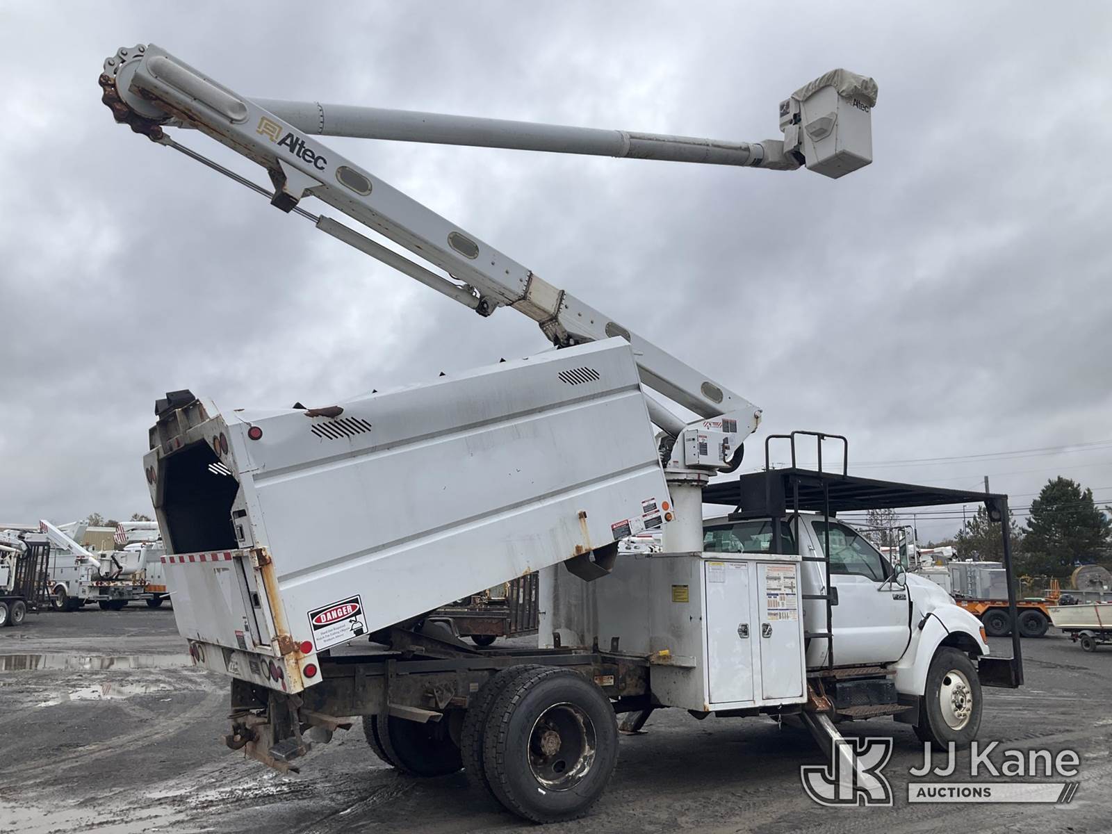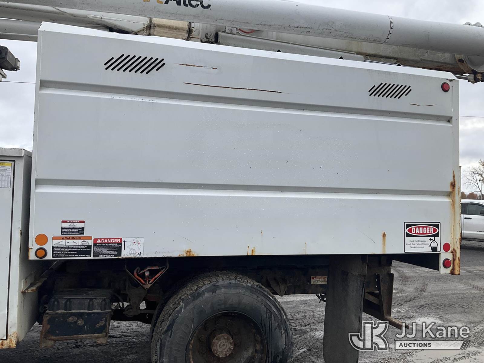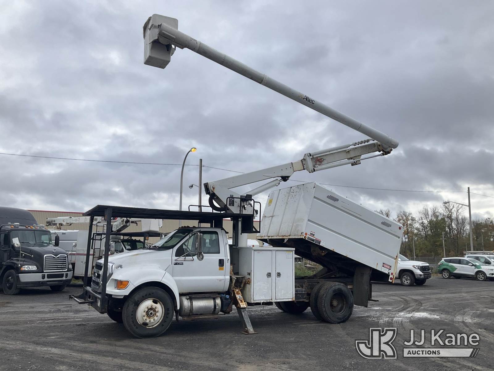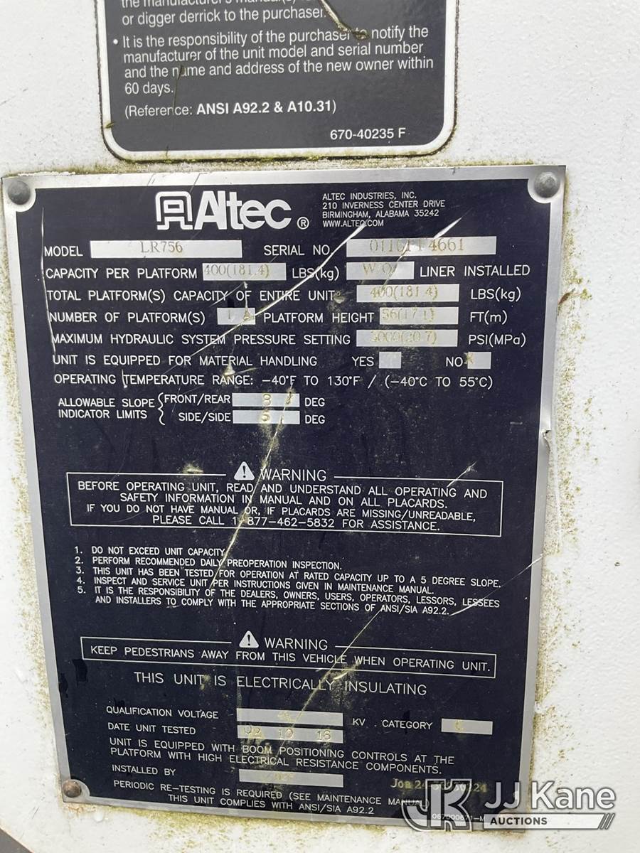 Altec LR756, 61 ft, Over-Center Bucket Truck s/n 0116FF4661, with Single-Man Bucket & 2 Outriggers, mounted behind cab on 2015 Ford F750 Chipper Dump Truck, 6.7L 6-spd, diesel, A/C, with 11 ft body, (63,791 miles) (Seller states- Needs Clutch, Brakes & PTO Pump, Jump to Start, Check Engine & ABS Light On, Runs, Moves & Upper Operates, Body & Rust Damage ) This is a Titled Item NOTE: This unit is being sold AS IS/WHERE IS via Timed Auction and is located in Rome, NY. Inspection & preview days for this unit are the 2 business days prior to the first day of items closing for this auction, item is located at 5835 Success Dr Rome, NY 13440 and hours of operations are 8a-4p. For pre-sale questions, please contact Ryan Jackson @ (315) 749-3790 or Ryan.Jackson@jjkane.com. (Manuals provided in cab) (Buyer is responsible for removal. Assistance by consignor or JJ Kane Auctioneers is not assured.)