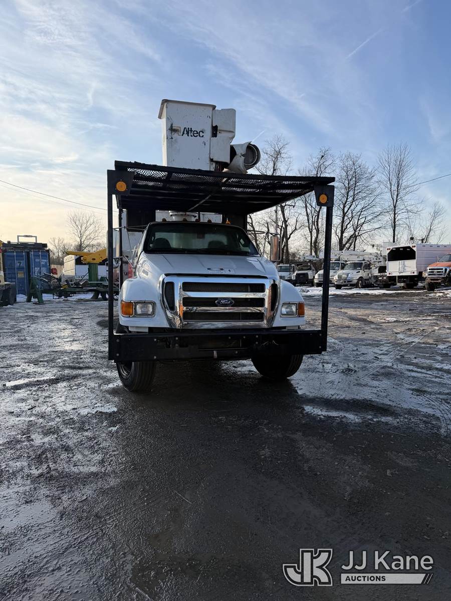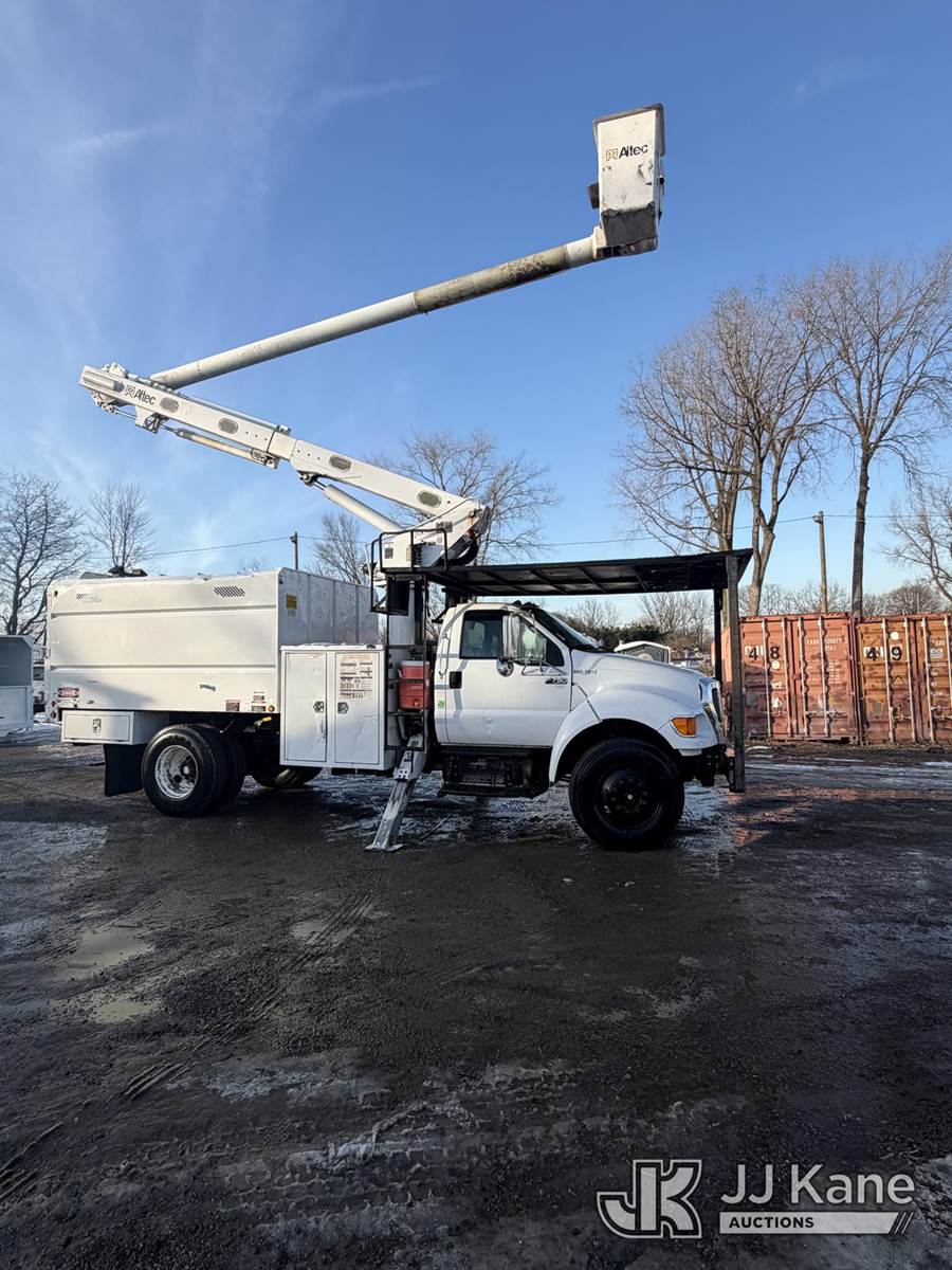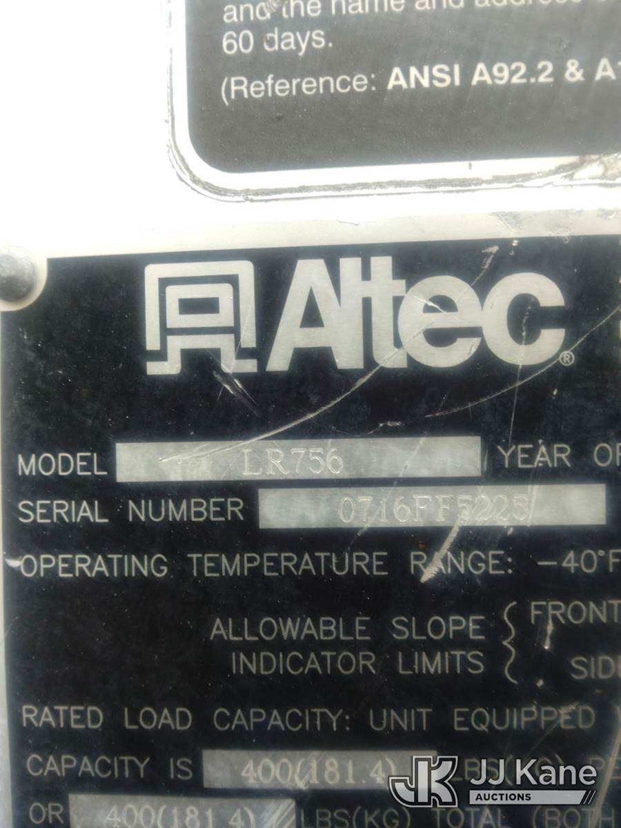 Altec LR756, 61 ft, Over-Center Bucket Truck s/n 0716FF5225, with single-man bucket & 2 hyd outriggers, mounted behind cab on 2015 Ford F-750 Chipper Dump Truck, 6.7L L6 diesel, 6-spd, 4X2, A/C, (78,482 miles) (Runs, Moves, Upper Operates) This is a Titled Item NOTE: This unit is being sold AS IS/WHERE IS via Timed Auction and is located in Alpha, NJ. For pre-sale questions and pickups, please contact Pete Rhodes at peter.rhodes@jjkane.com. Pickups can be conducted Monday through Friday 9:30am to 3:00pm. (Missing manuals, See Auction Company for Manufacturers Information to obtain manuals) (Buyer is responsible for removal. Assistance by consignor or JJ Kane Auctions is not assured.)