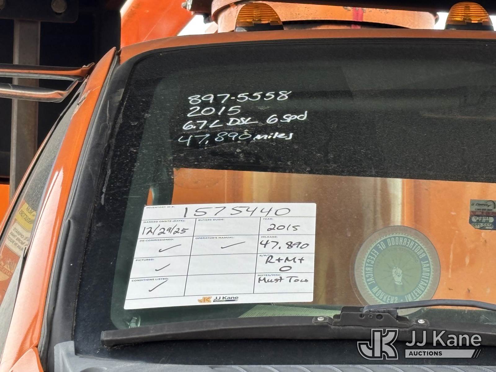 Altec LR756, 61 ft, Over-Center Bucket Truck s/n 0914FF2966, with single-man bucket & 2 hyd outriggers, mounted behind cab on 2015 Ford F750 Chipper Dump Truck, 6.7L, diesel 6-spd, with 11ft Body, (47,890 miles) (Runs Moves & Upper Operates, Check Engine Light On, Wrench Light On, ABS Light On, Brake Light On, Body & Rust Damage, Must Tow Seller States; ELECTRICAL ISSUES, NO LIGHTS) This is a Titled Item NOTE: This unit is being sold AS IS/WHERE IS via Timed Auction and is located in Plymouth Meeting, PA. Inspection & preview days for this unit are the 2 business days prior to the first day of items closing for this auction, item is located at 1402 Conshohocken Rd Plymouth Meeting, PA 19462 and hours of operations are 8a-4p. For pre-sale questions, please contact Bruce Thomas @ (267) 887-0392 or bruce.thomas.jr@jjkane.com. (Manuals provided in cab) (Buyer is responsible for removal. Assistance by consignor or JJ Kane Auctions is not assured.)
