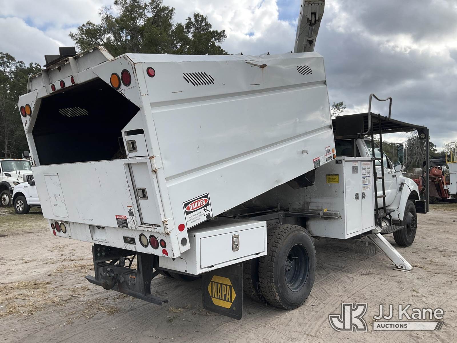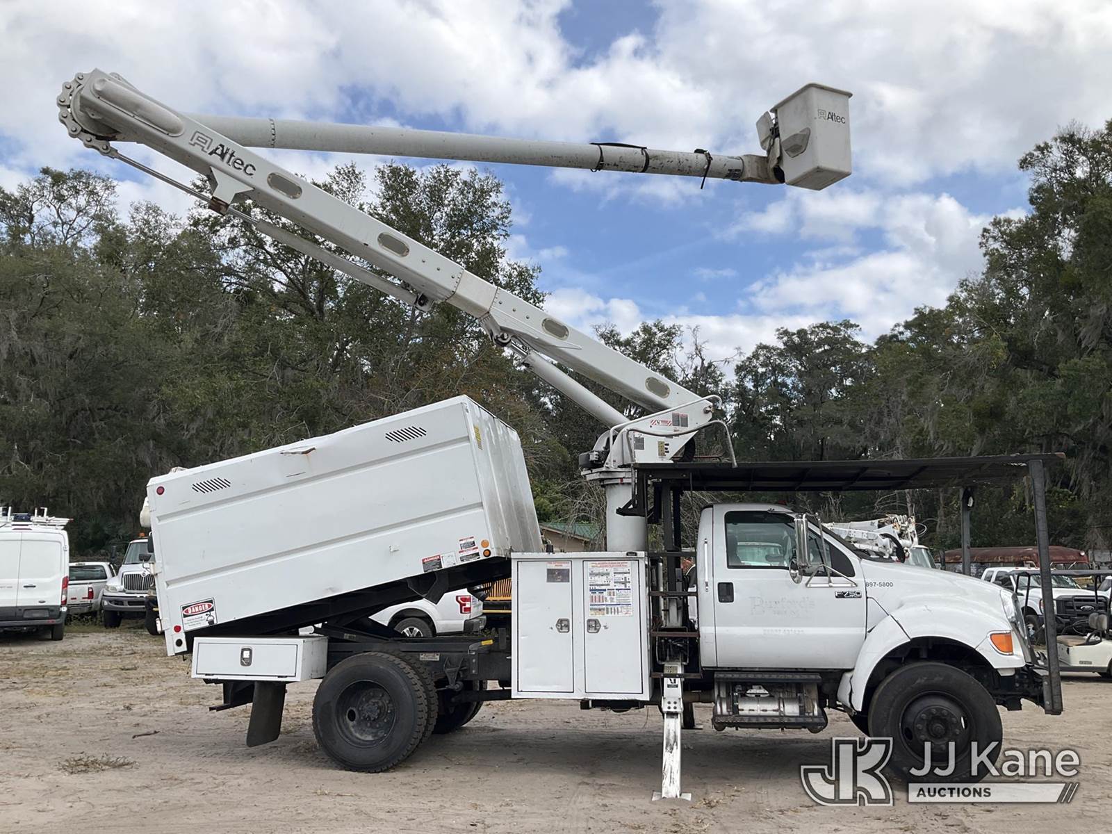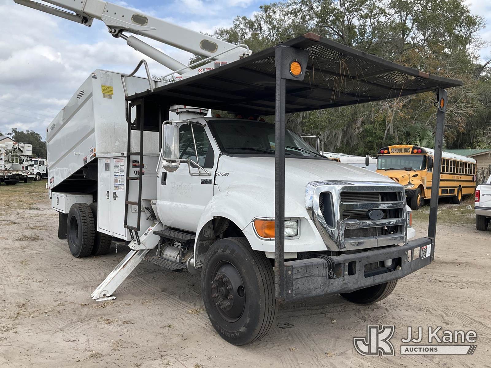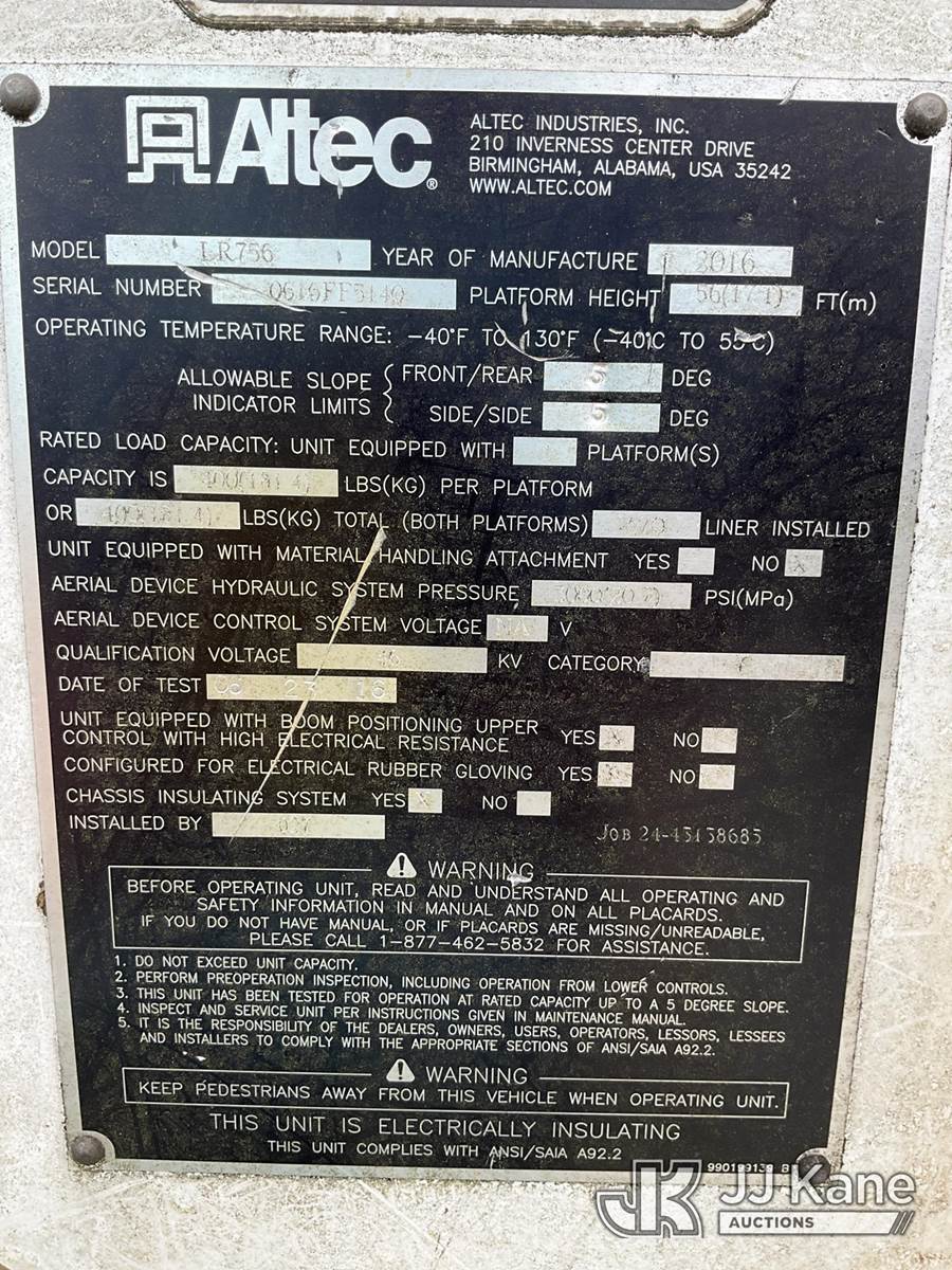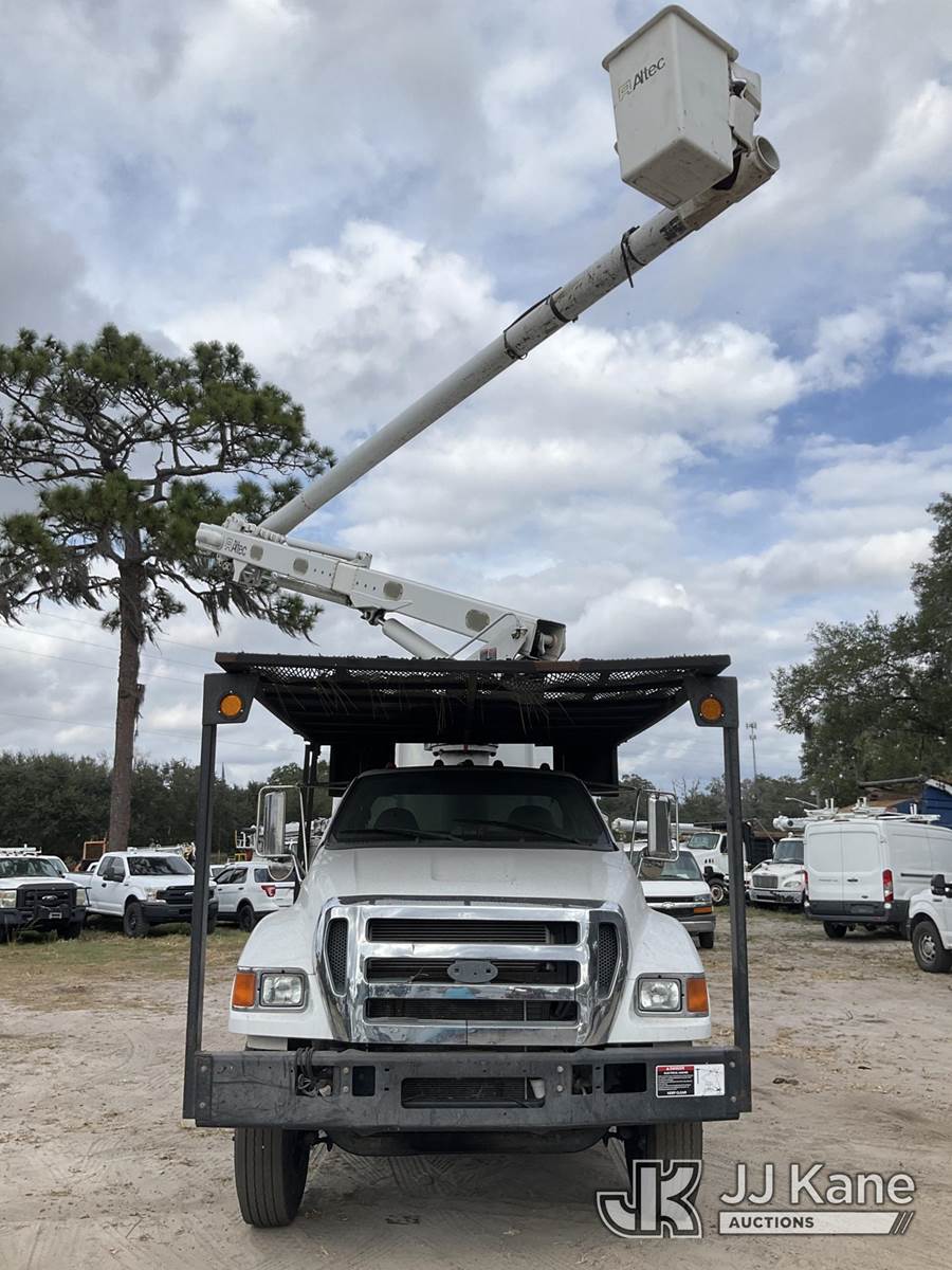 Altec LR756, 61 ft, Over-Center Bucket Truck s/n 0616FF5140, with single-man bucket & 2 hyd outriggers, mounted behind cab on 2015 Ford F-750 Chipper Dump Truck, 6.7L L6 diesel, 4X2, 6-spd, (121,140 miles) (Runs, Moves, No Brakes) (Check Engine Light Is On, Has Body And Paint Issues, Missing Door Panel, Upper Unit Operates) (Seller States: Missing Multiple Parts, Bad Brakes) This is a Titled Item NOTE: This unit is being sold AS IS/WHERE IS via Timed Auction and is located in Ocala, FL. Inspection & preview days for this unit are by appointment only; please contact us at contact@jjkane.com or 84-Go-JJKane for more details. For more information & removal arrangements please contact Mike Lessard @ (352) 629-6677. (Manuals provided in cab) (Buyer is responsible for removal. Assistance by consignor or JJ Kane Auctions is not assured.)