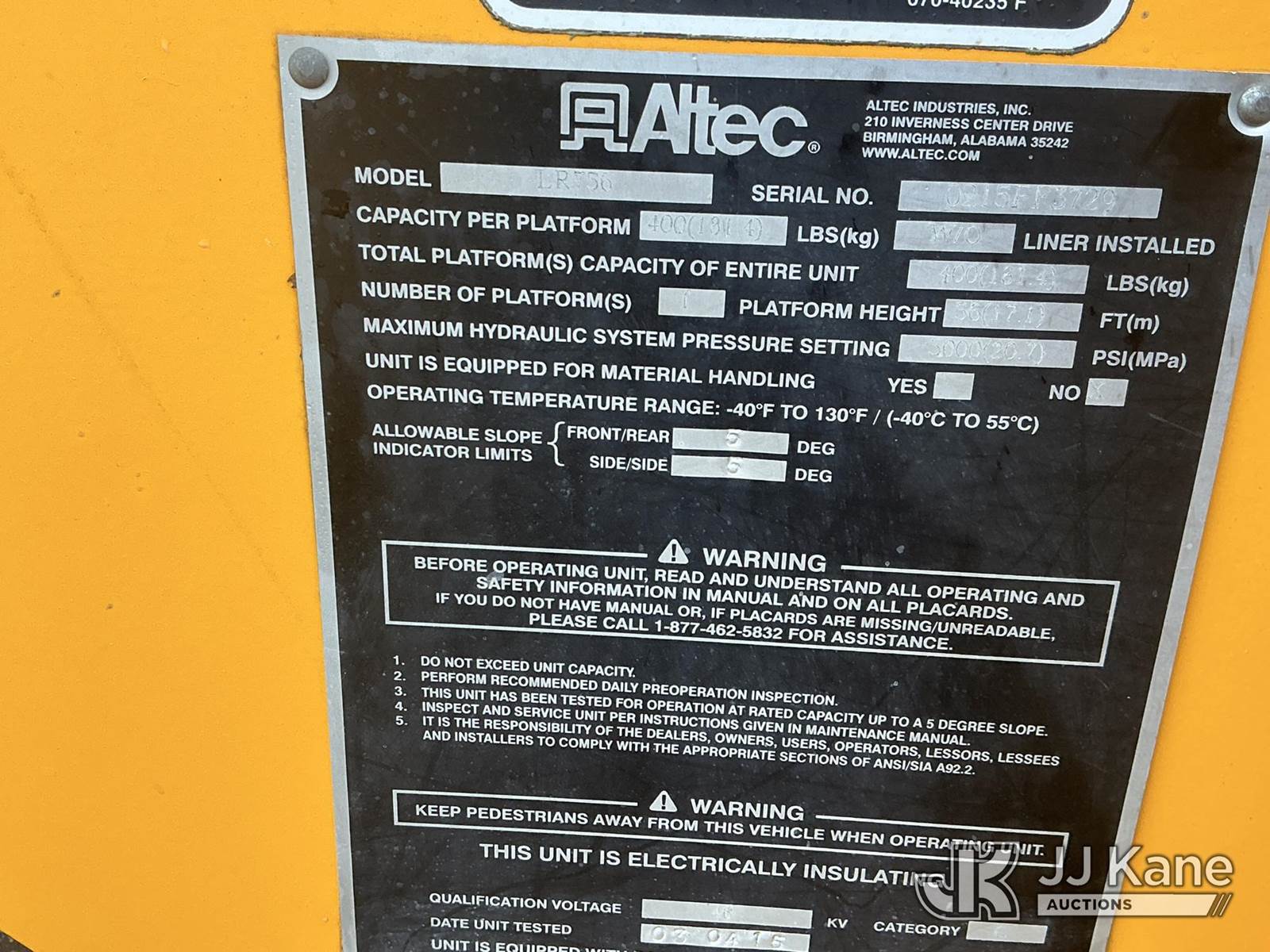 Altec LR756, 61 ft, Over-Center Bucket Truck s/n 0215FF3729, with single-man bucket & 2 hyd outriggers, mounted behind cab on 2015 Ford F-750 Chipper Dump Truck, s/n 3FRNF7FB2FV723521, 6.7L L6 Diesel, Auto, with 11 ft. body, (86,693 miles) (Runs, Moves & Upper Operates) (Check Engine & ABS Lights On, Body/Paint Damage) This is a Titled Item NOTE: This unit is being sold AS IS/WHERE IS via Timed Auction and is located in Fort Wayne, IN. Inspection & preview days for this unit are the 2 business days prior to the first day of items closing for this auction, item is located at 3020 Commercial Rd Fort Wayne, IN 46809 and hours of operations are 8a-4p. For pre-sale questions, please contact Eric Mcintosh @ (260) 205-2483 (Manuals provided in cab) (Buyer is responsible for removal. Assistance by consignor or JJ Kane Auctions is not assured.)