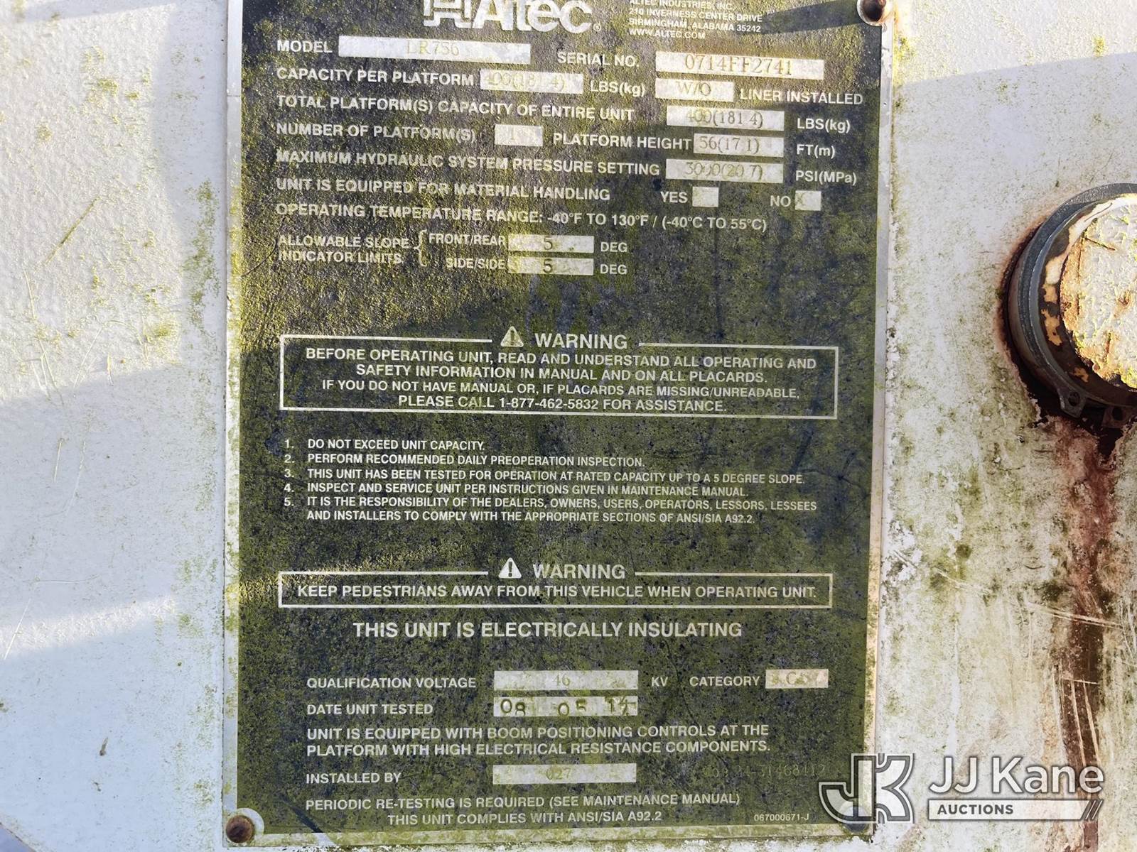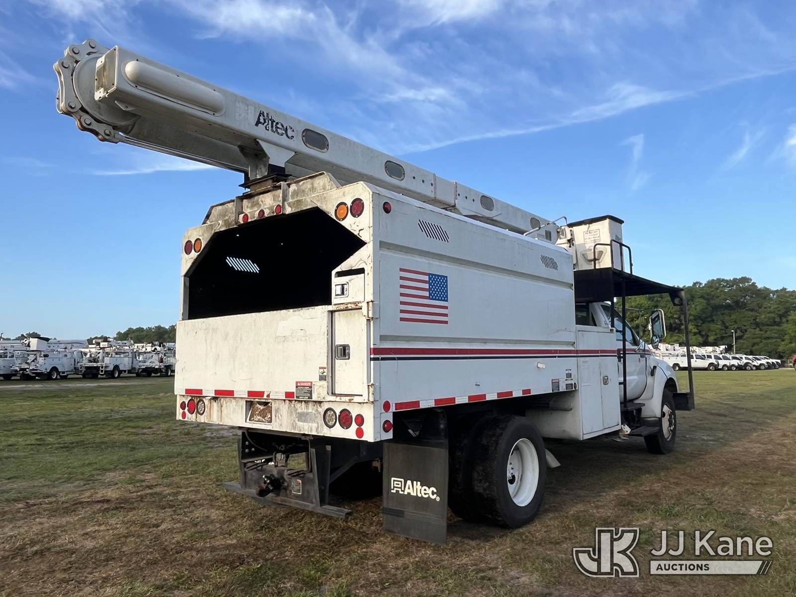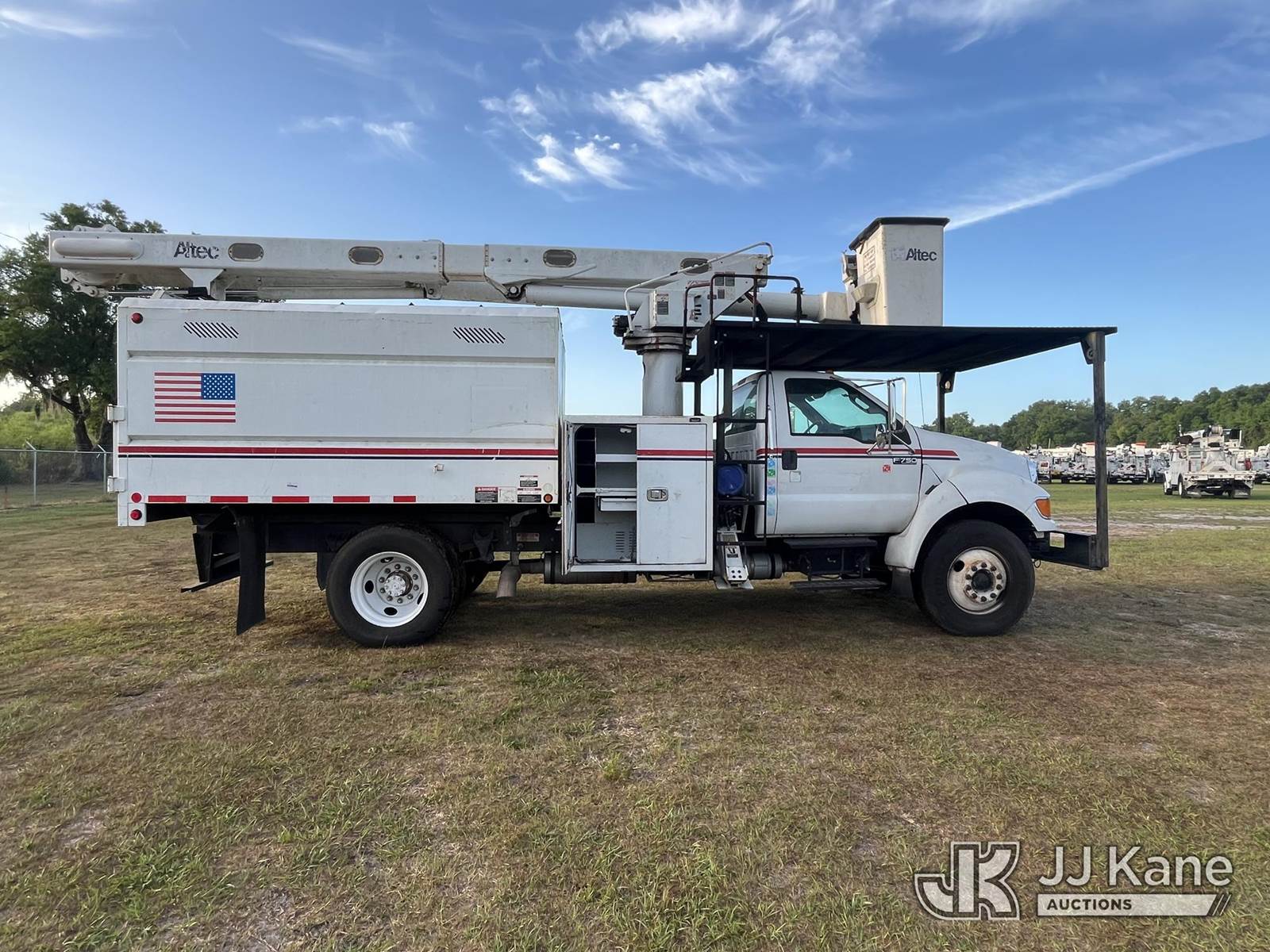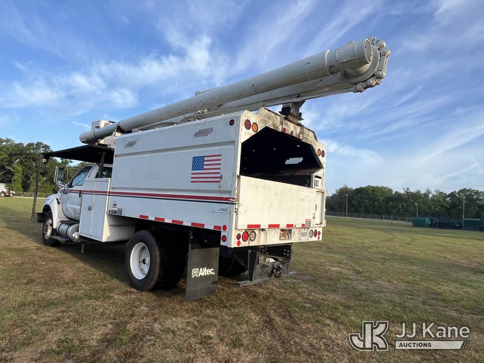 Altec LR756, 61 ft, Over-Center Bucket Truck s/n 0714FF2741, with single man bucket & 2 hyd outriggers, mounted behind cab on 2015 Ford F-750 Chipper Dump Truck, 6.7L L6 Diesel, 4X2, Auto, A/C, with 11 ft. body, (59,183 miles) 25,999 lb. GVWR (Runs, Moves, Operating Condition Unknown) (PTO Won’t Engage) (Seller States: Red Brake Warning & ABS Warning Indicator Light On, Emergency Stop Lever Broken) (Reads 10,835 hours) This is a Titled Item NOTE: This unit is being sold AS IS/WHERE IS via Timed Auction and is located in Thonotosassa, FL. Inspection & preview days for this unit are the 2 business days prior to the first day of items closing for this auction, item is located at 11720 N US 301 Thonotosassa, Fl 33592 and hours of operations are 8a-4p. For pre-sale questions, please contact Office Staff @ (813) 986-2485. (Manuals provided in cab) (Buyer is responsible for removal. Assistance by consignor or JJ Kane Auctions is not assured.)