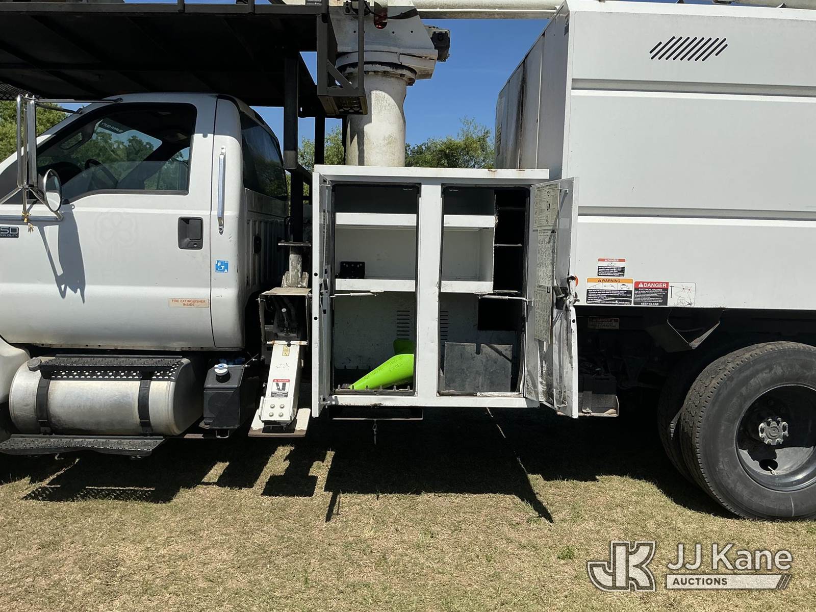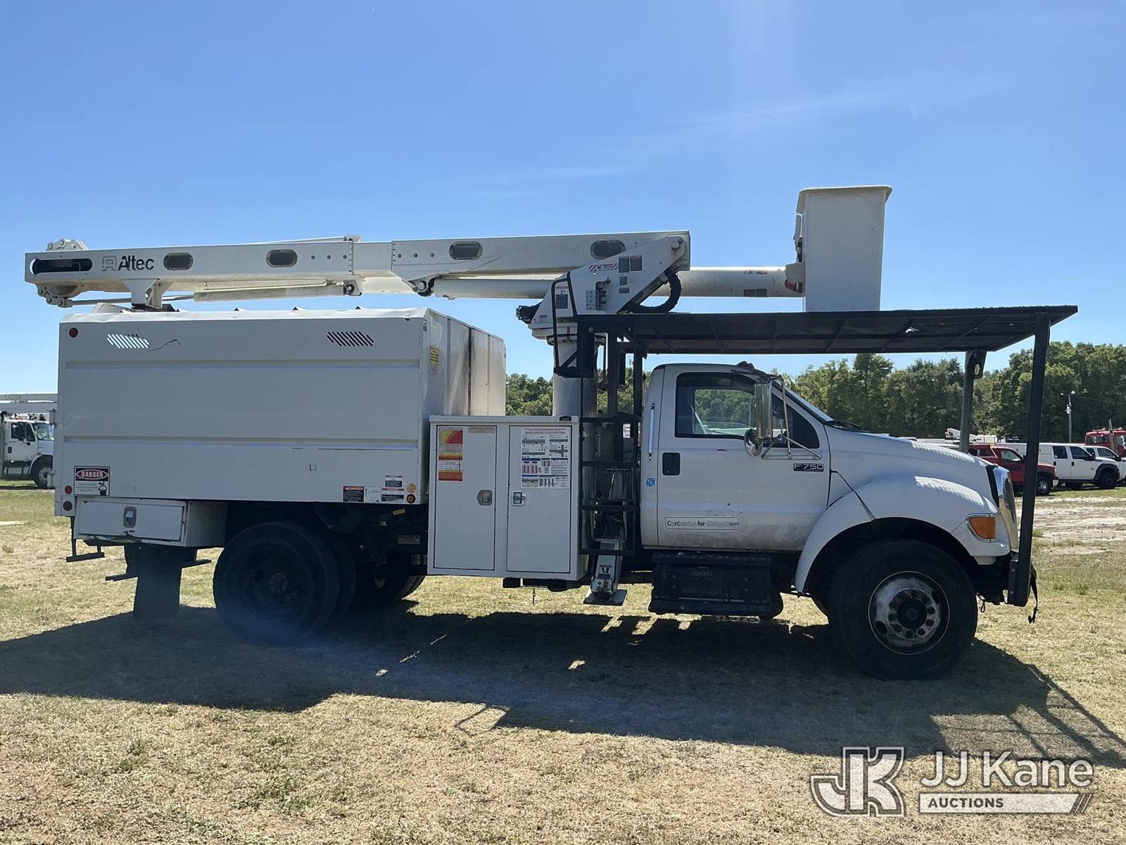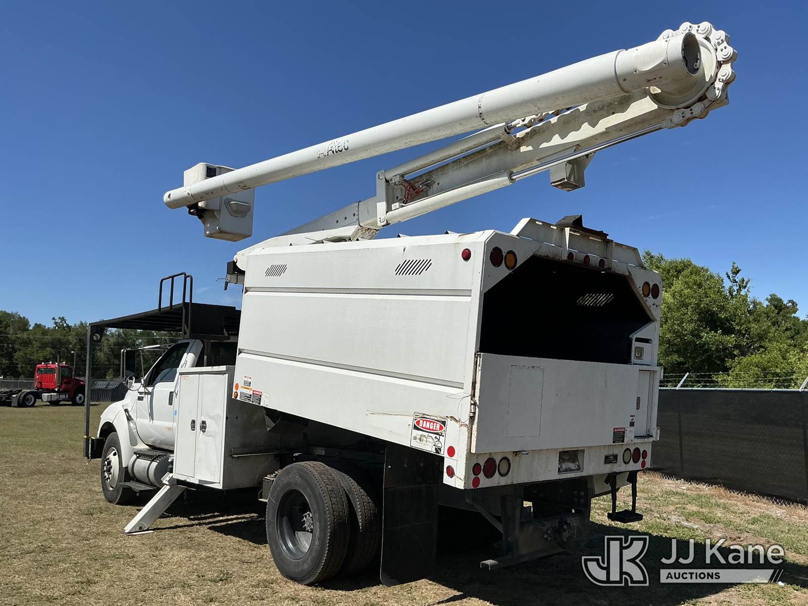 Altec LR756, 61 ft, Over-Center Bucket Truck s/n 0416FF4960, with single-man bucket & 2 hydraulic outriggers, mounted behind cab on 2015 Ford F-750 Chipper Dump Truck, 6.7L Diesel, 4X2, 6-spd, A/C, (78,200 miles) (Runs, Moves, Upper Operates) (Jump To Start, Engine Lights On) (FL Residents Purchasing Titled Items – tax, title & registration fees will be collected at the maximum rate of $400.00 under 25,999 and $800.00 for Over 26,000 and $250.00 trailers – Proof of insurance is mandatory; Out of State Residents Purchasing Title Items – tax will be collected based upon your state rate.) This is a Titled Item NOTE: This unit is being sold AS IS/WHERE IS via Timed Auction and is located in Thonotosassa, FL. Inspection & preview days for this unit are the 2 business days prior to the first day of items closing for this auction, item is located at 11720 N US 301 Thonotosassa, Fl 33592 and hours of operations are 8a-4p. For pre-sale questions, please contact Office Staff @ (813) 986-2485. (Missing manuals, See Auction Company for Manufacturers Information to obtain manuals) (Buyer is responsible for removal. Assistance by consignor or JJ Kane Auctions is not assured.)