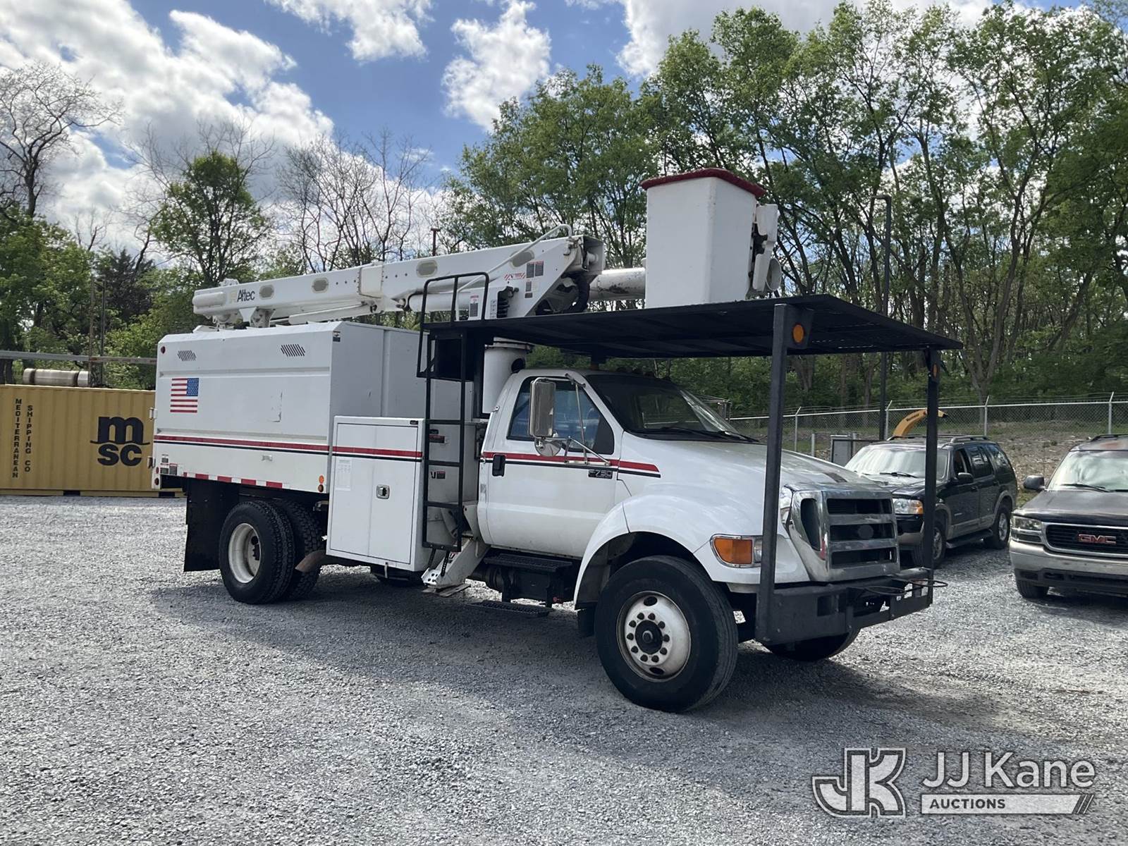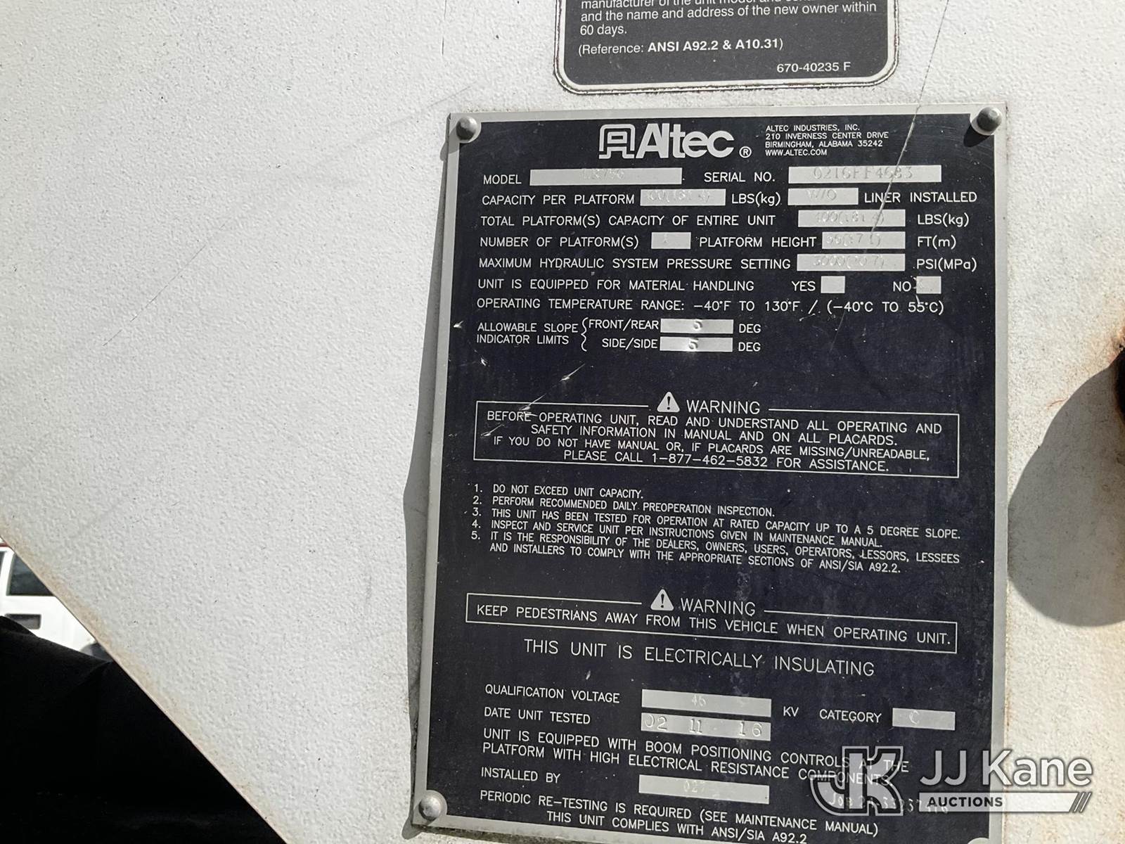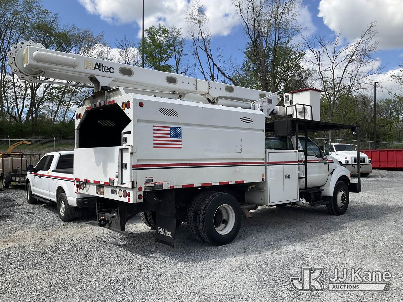 Altec LR756, 61 ft, Over-Center Bucket Truck s/n 0216FF4683, with single-man bucket & 2 hyd outriggers, mounted behind cab on 2015 Ford F750 Chipper Dump Truck, Cummins 6.7L Diesel 4X2, 6-spd, A/C, (88,367 miles) (Runs, Moves & Operates) (Removal is by Appointment Only, Buyer MUST make a appointment prior to picking up, Buyer/Transporter Must have PAID IN FULL RELEASE. No onsite assistance available, Please Come prepared.) This is a Titled Item NOTE: This unit is being sold AS IS/WHERE IS via Timed Auction and is located in Hagerstown, MD. Inspection & preview days for this unit are by appointment only; please contact us at contact@jjkane.com or 84-Go-JJKane for more details. For pre-sale questions, please contact the on-site office @ (301) 895-7777 or Kevin.Waggoner@JJKane.com. (Missing manuals, See Auction Company for Manufacturers Information to obtain manuals) (Buyer is responsible for removal. Assistance by consignor or JJ Kane Auctions is not assured.)