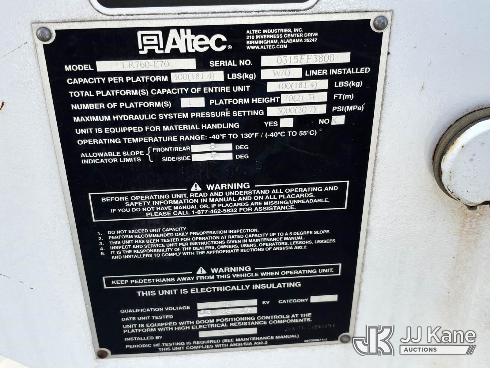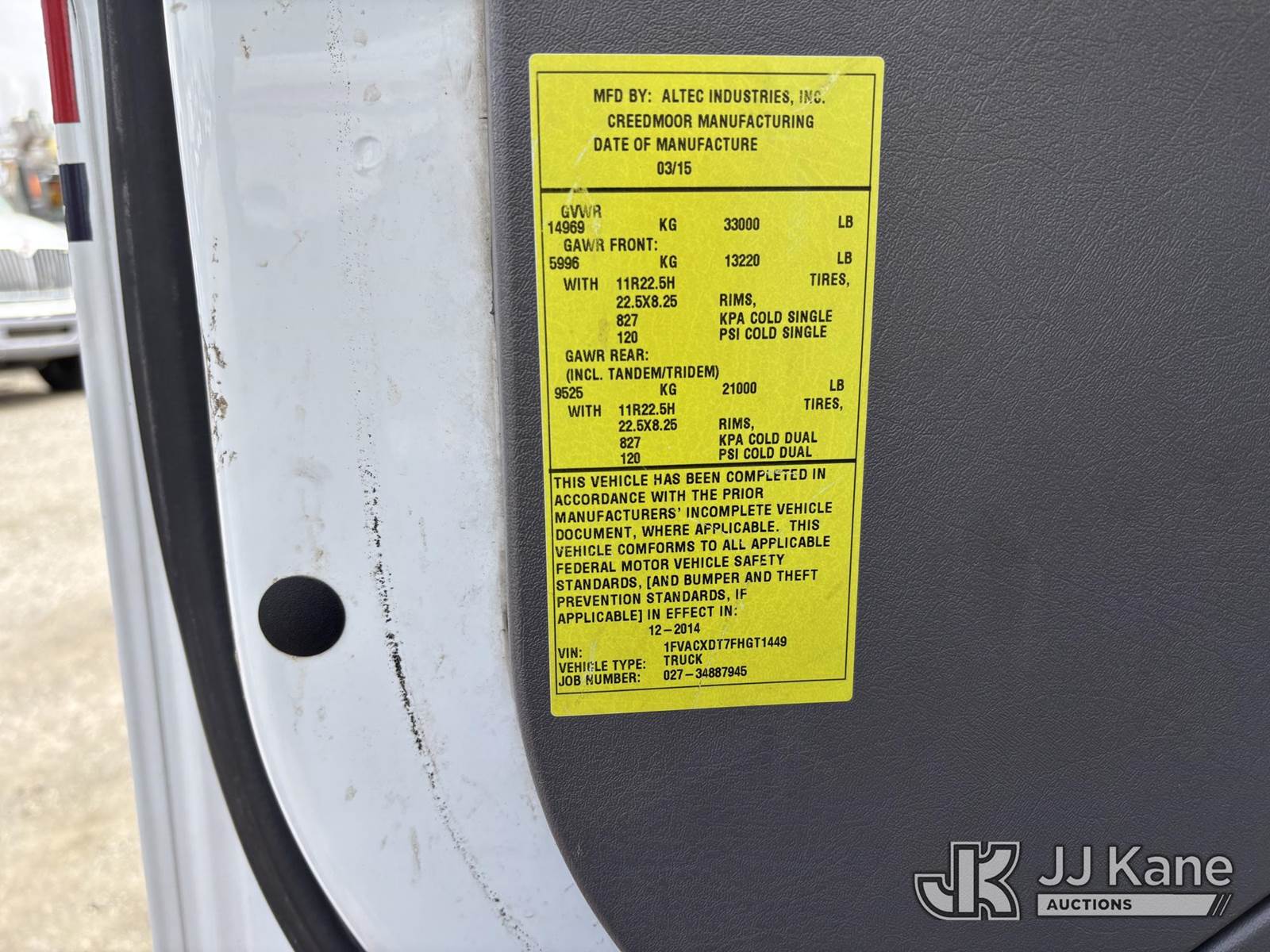 Altec LR760-E70, 75 ft, Over-Center Elevator Bucket Truck s/n 0315FF3808, with Single-Man Bucket & 2 Outriggers, mounted behind cab on 2015 Freightliner M2 106 Chipper Dump Truck, Cummins 6.7L Diesel, Auto, A/C, (59,379 miles) (Runs, Moves & Upper Operates) This is a Titled Item NOTE: This unit is being sold AS IS/WHERE IS via Timed Auction and is located in Plymouth Meeting, PA. Inspection & preview days for this unit are the 2 business days prior to the first day of items closing for this auction, item is located at 1402 Conshohocken Rd Plymouth Meeting, PA 19462 and hours of operations are 8a-4p. For pre-sale questions, please contact Bruce Thomas @ (267) 887-0392 or bruce.thomas.jr@jjkane.com. (Manuals provided in cab) (Buyer is responsible for removal. Assistance by consignor or JJ Kane Auctions is not assured.)